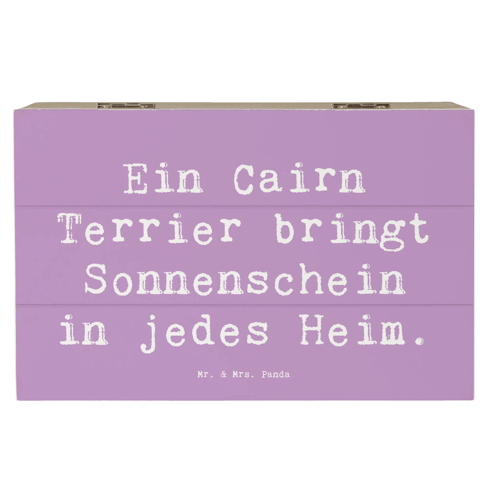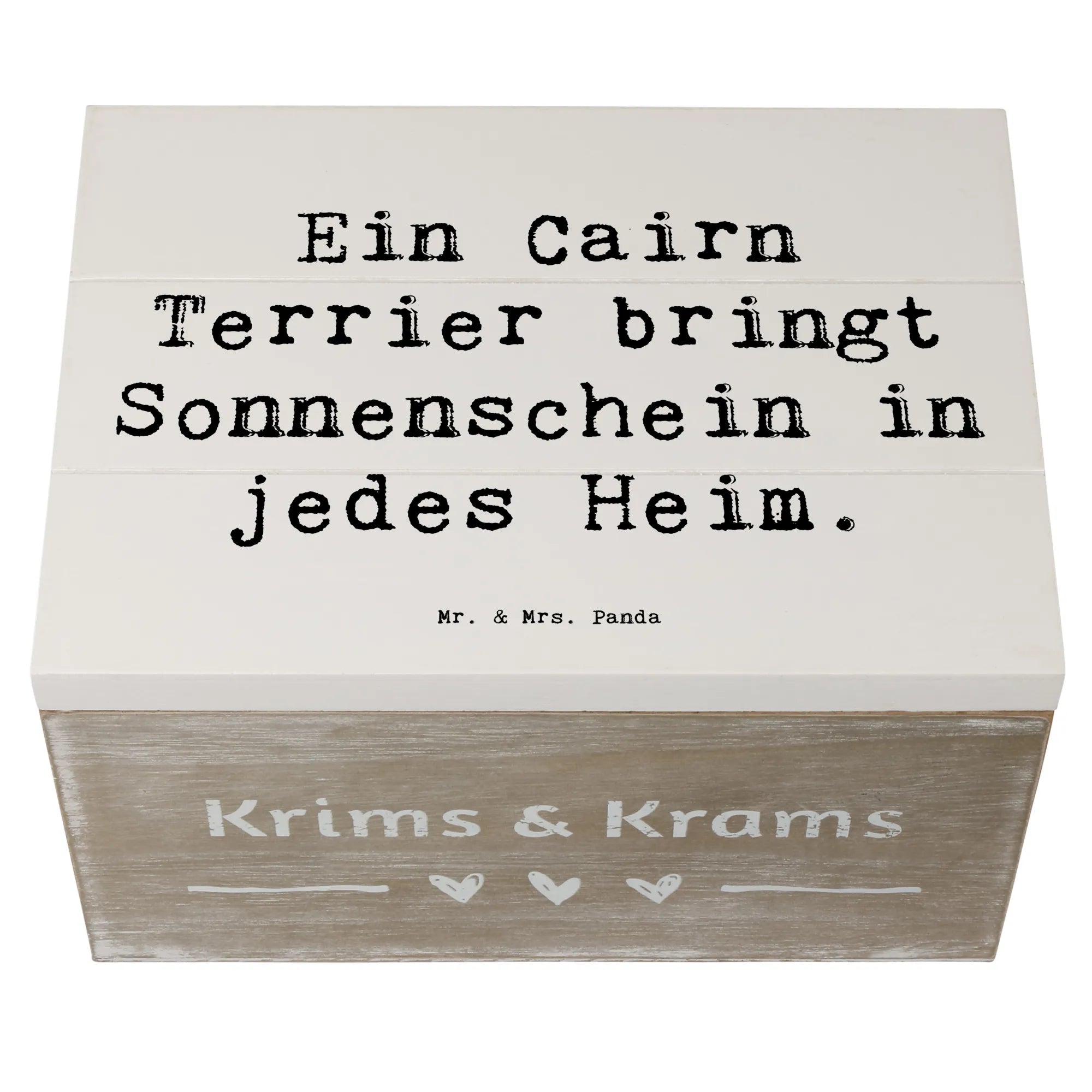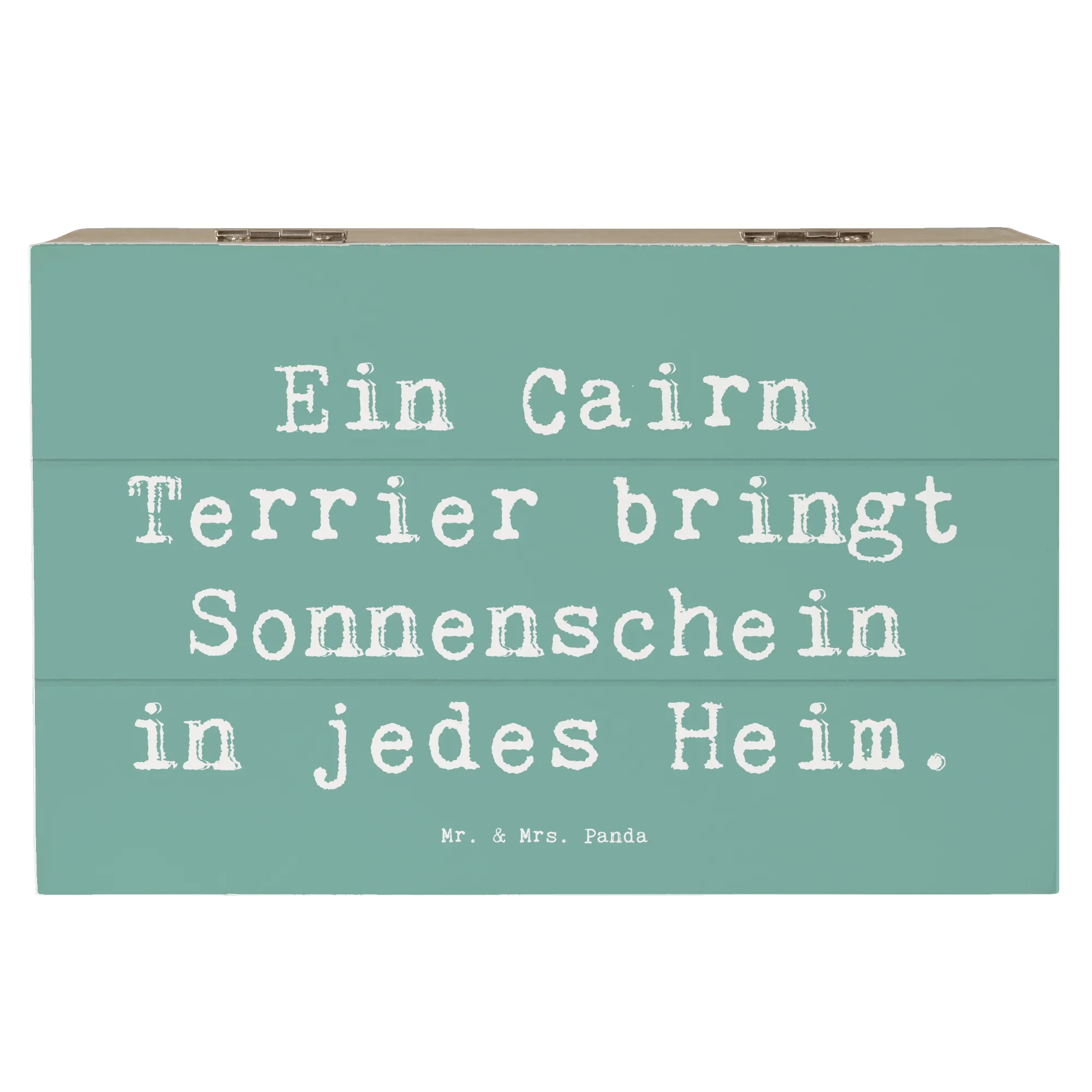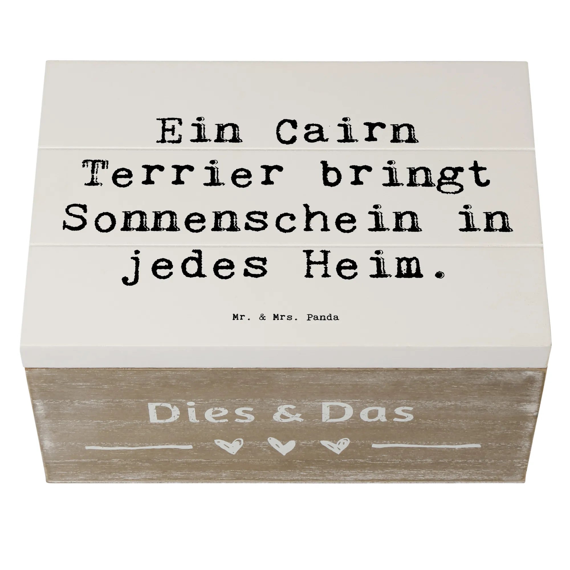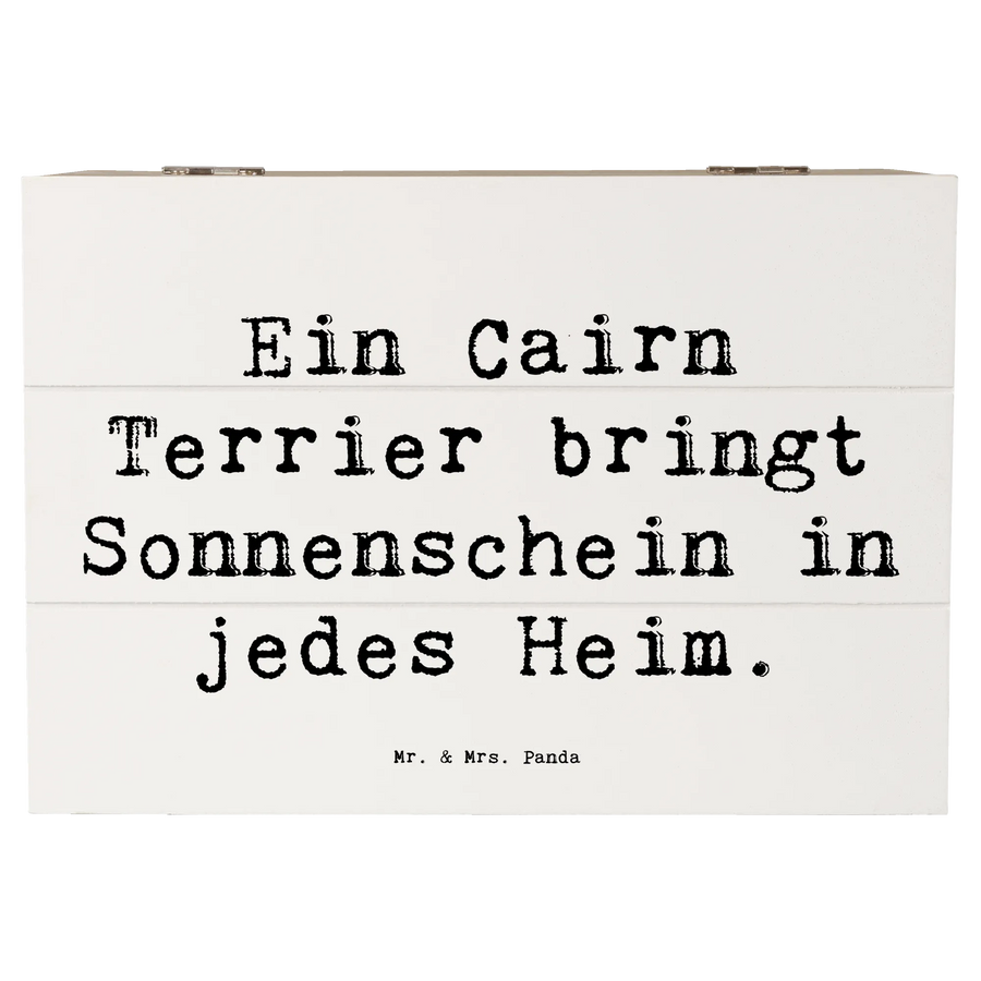 Die wunderschöne Holzkiste von Mr. & Mrs. Panda ist nicht nur ein praktischer Aufbewahrungsort, sondern auch ein stylisches Dekorationsstück für dein Heim. Mit ihrem niedlichen Motiv des Cairn Terriers und dem liebevollen Spruch "Ein Cairn Terrier bringt Sonnenschein in jedes Heim." ist sie das perfekte Geschenk für jeden Hundefan.