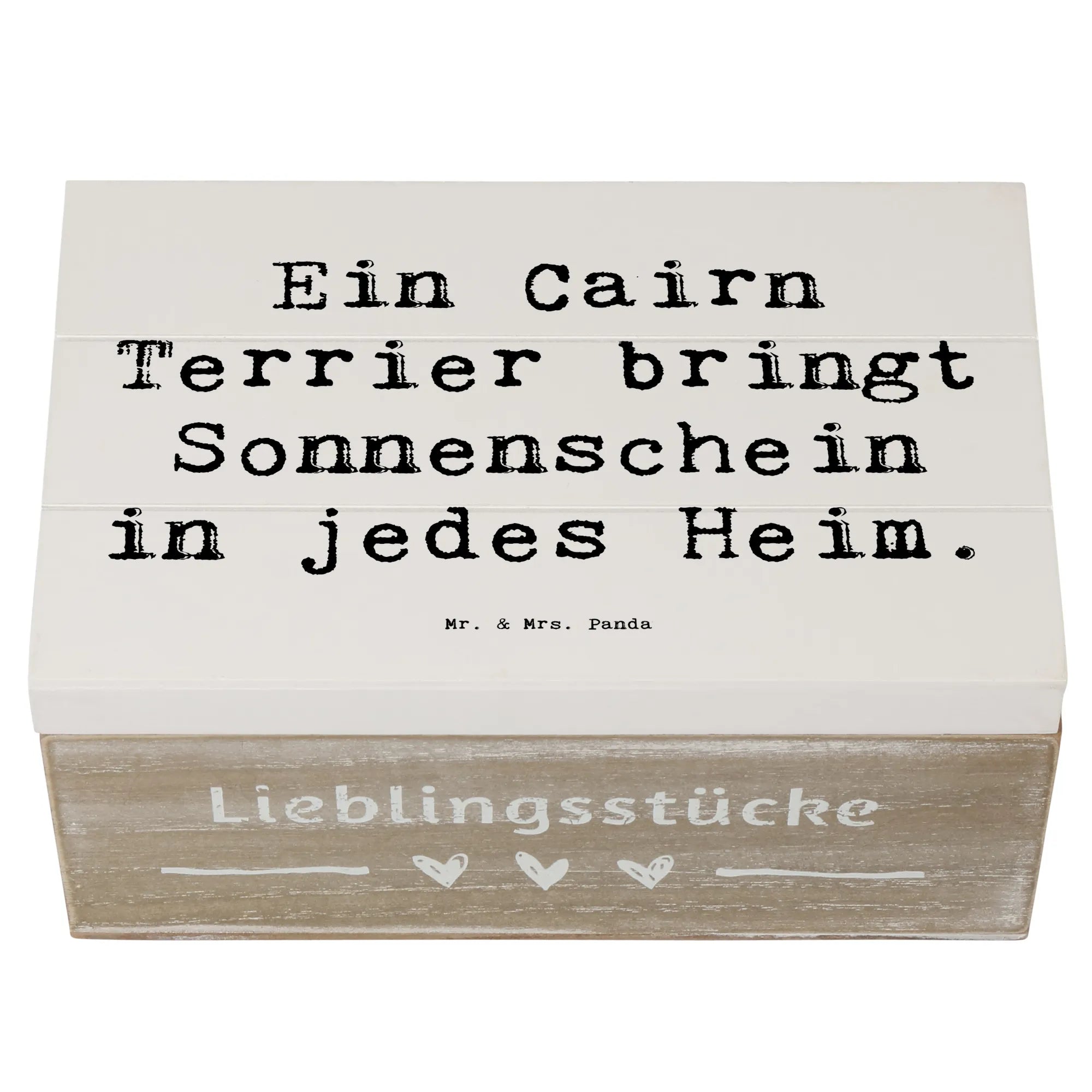 Du liebst deinen Cairn Terrier und möchtest ihm ein ganz besonderes Zuhause bieten? Dann ist diese wunderschöne Holzkiste von Mr. & Mrs. Panda genau das Richtige für dich! Mit dem liebevollen Spruch "Ein Cairn Terrier bringt Sonnenschein in jedes Heim" verleiht sie deinem Raum eine fröhliche Note.