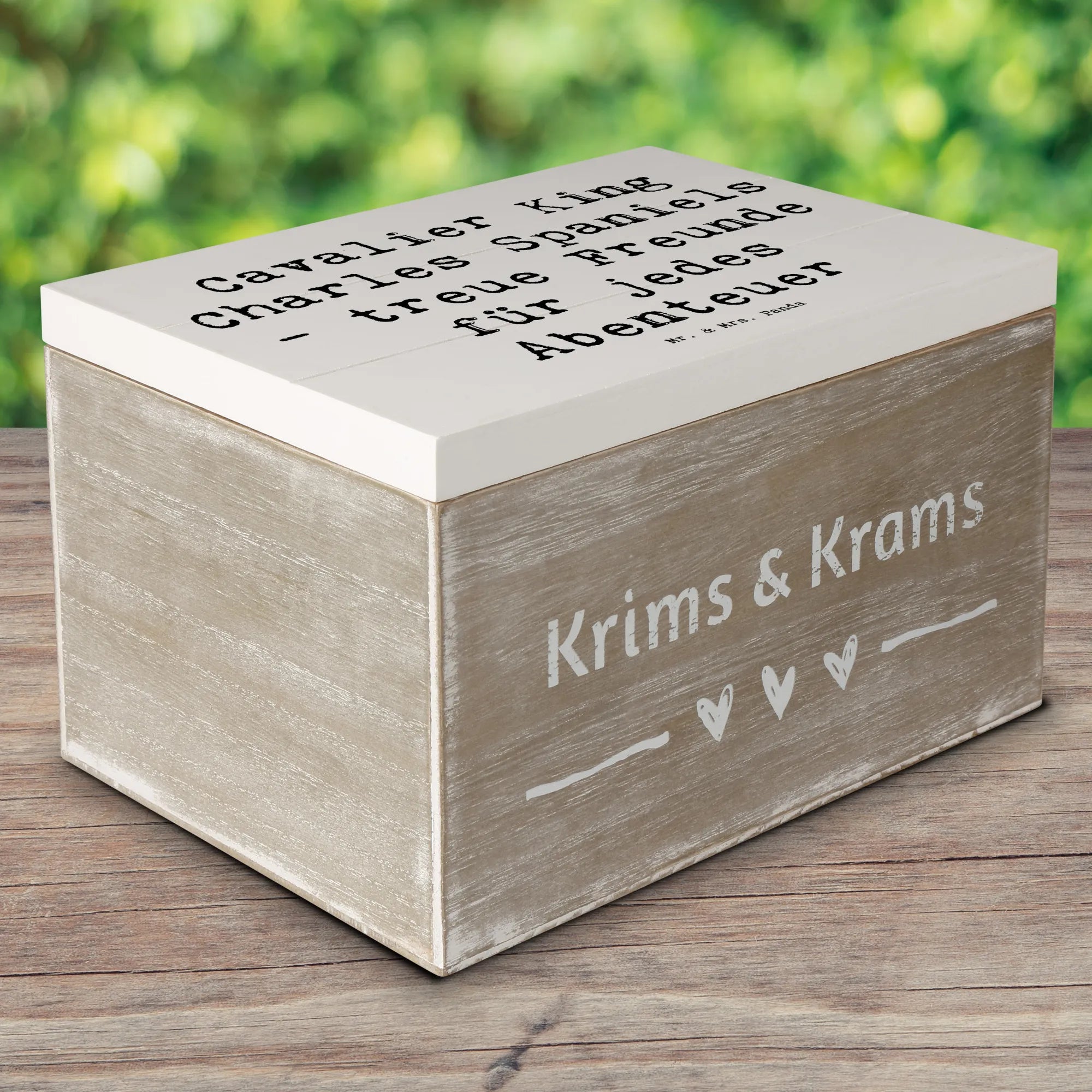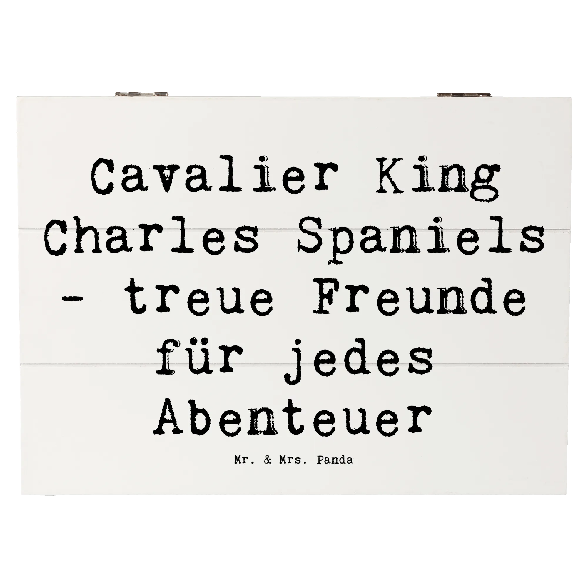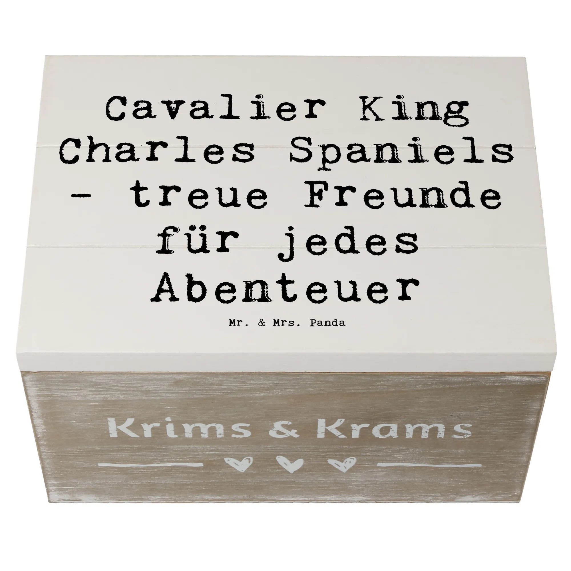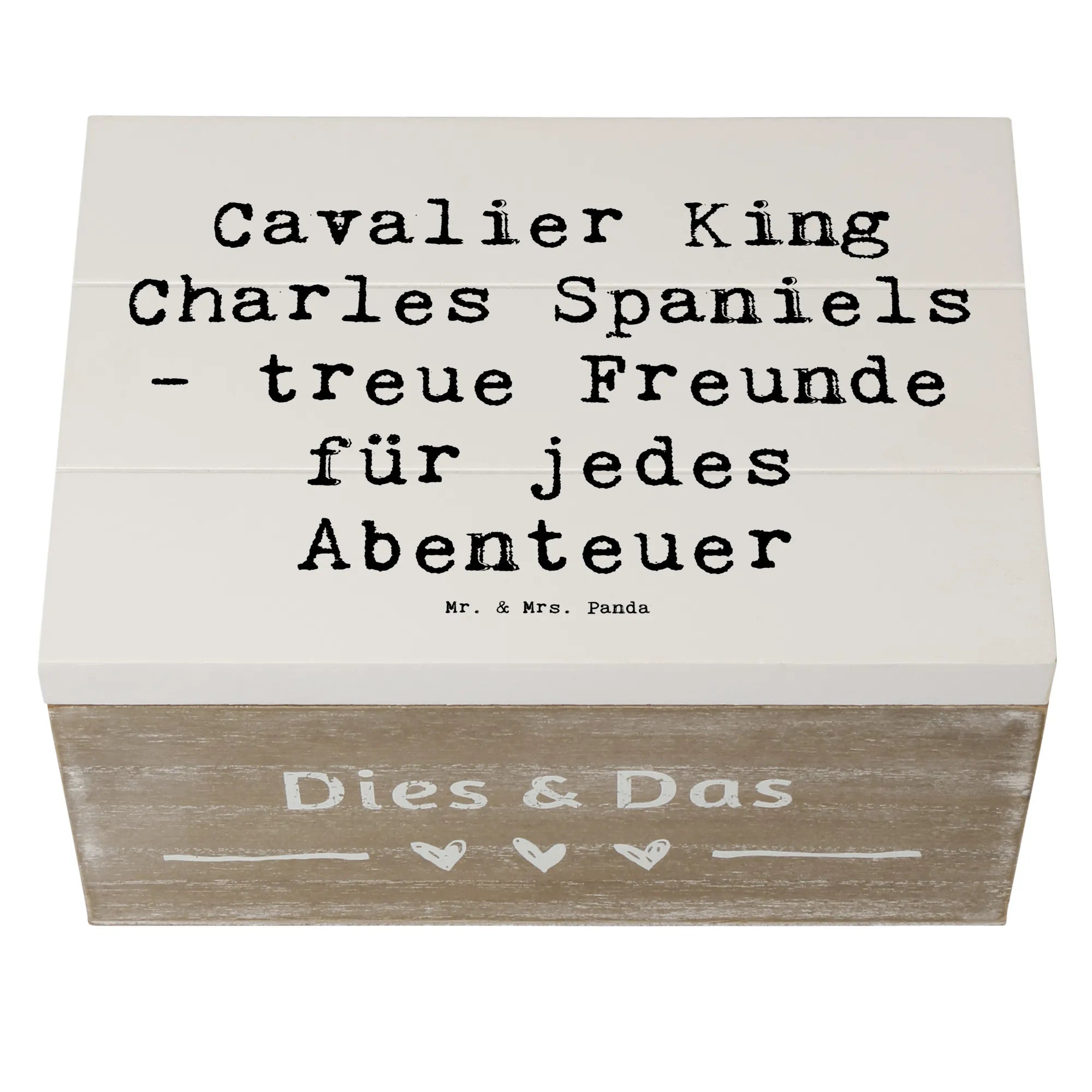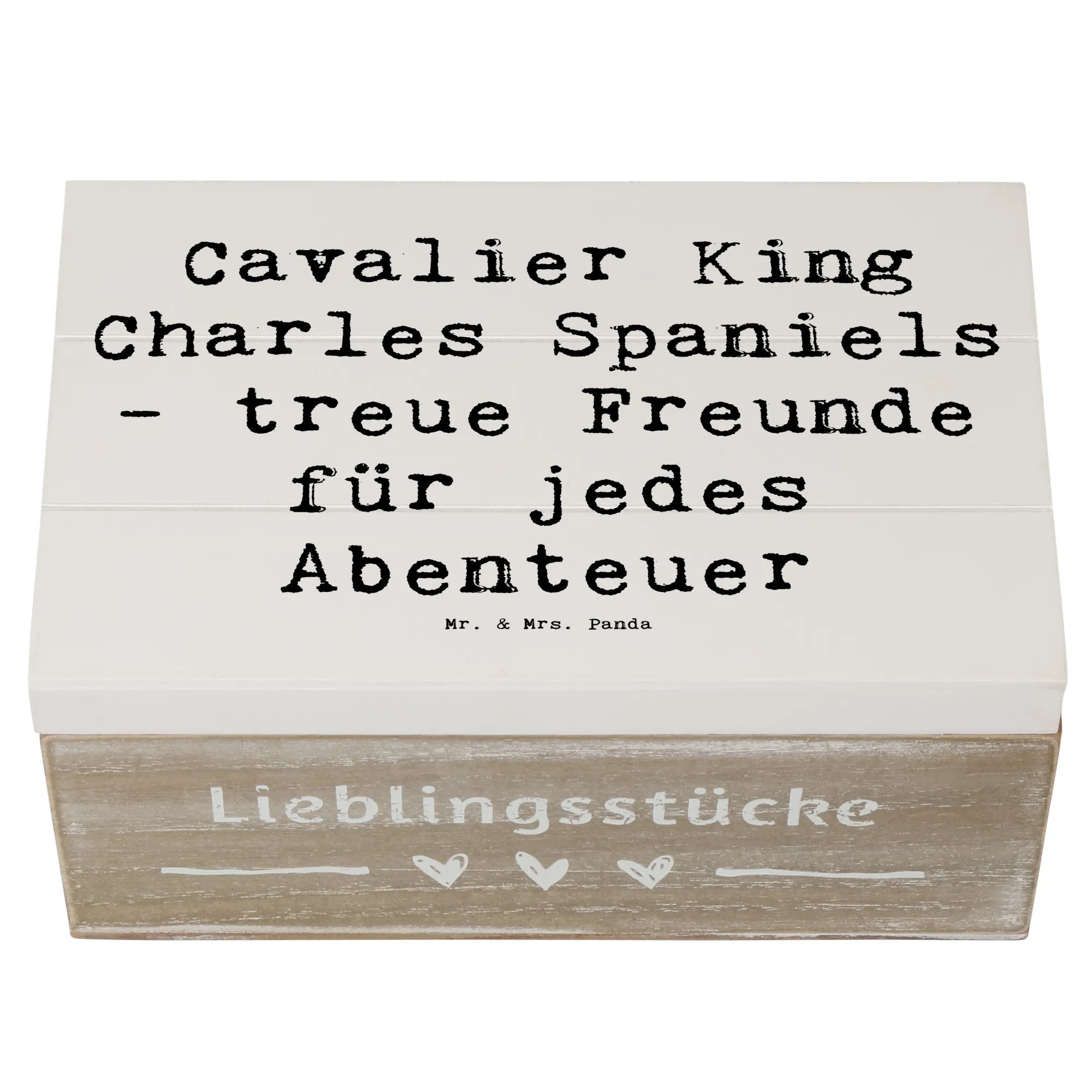 Die wunderschöne Holzkiste von Mr. & Mrs. Panda ist mehr als nur ein Aufbewahrungsort – sie ist ein wahres Schmuckstück für jeden Hundeliebhaber! Mit dem zauberhaften Motiv des Cavalier King Charles Spaniels und dem liebevollen Spruch "Cavalier King Charles Spaniels - treue Freunde für jedes Abenteuer" wird sie zum perfekten Geschenk für alle, die diese Hunderasse im Herzen tragen.