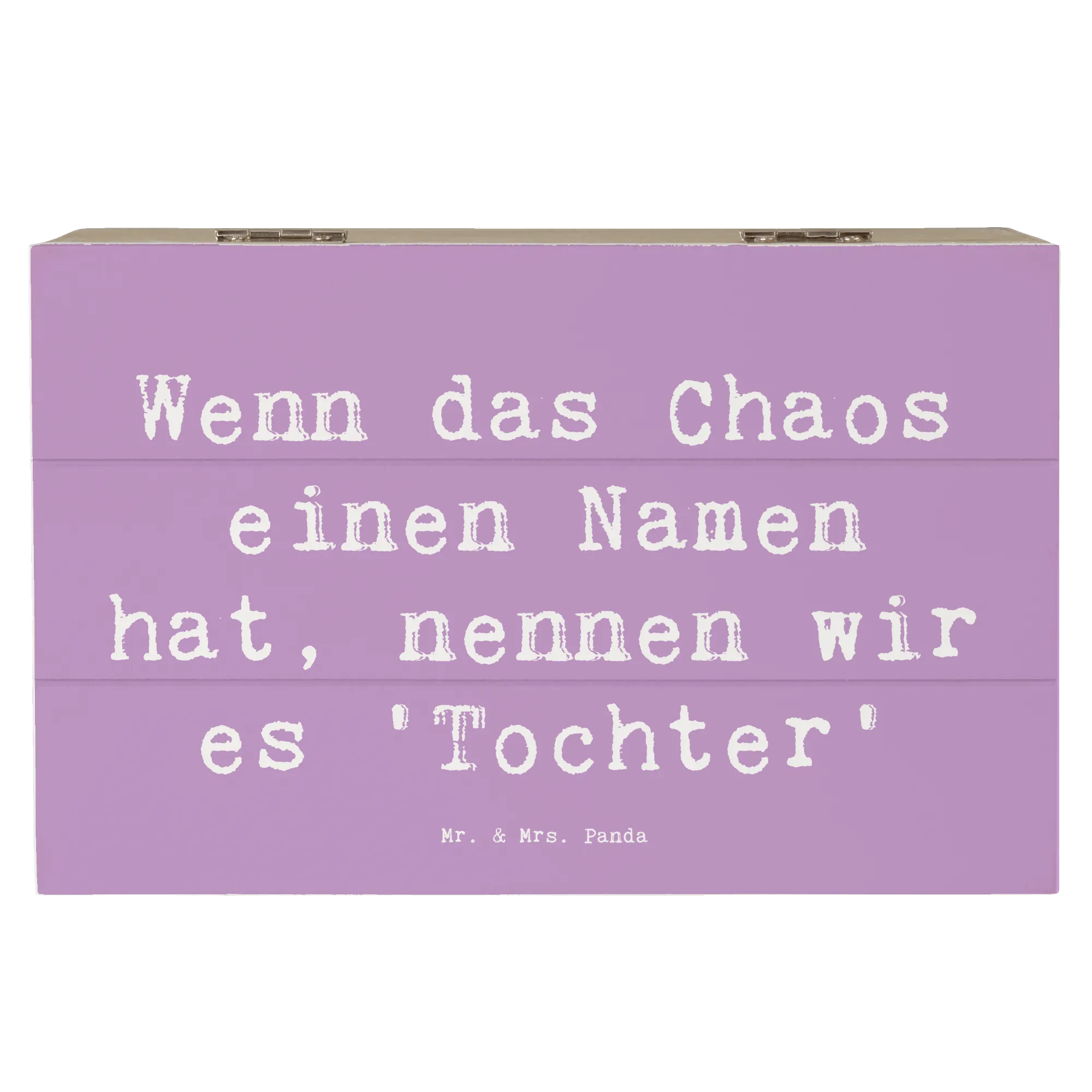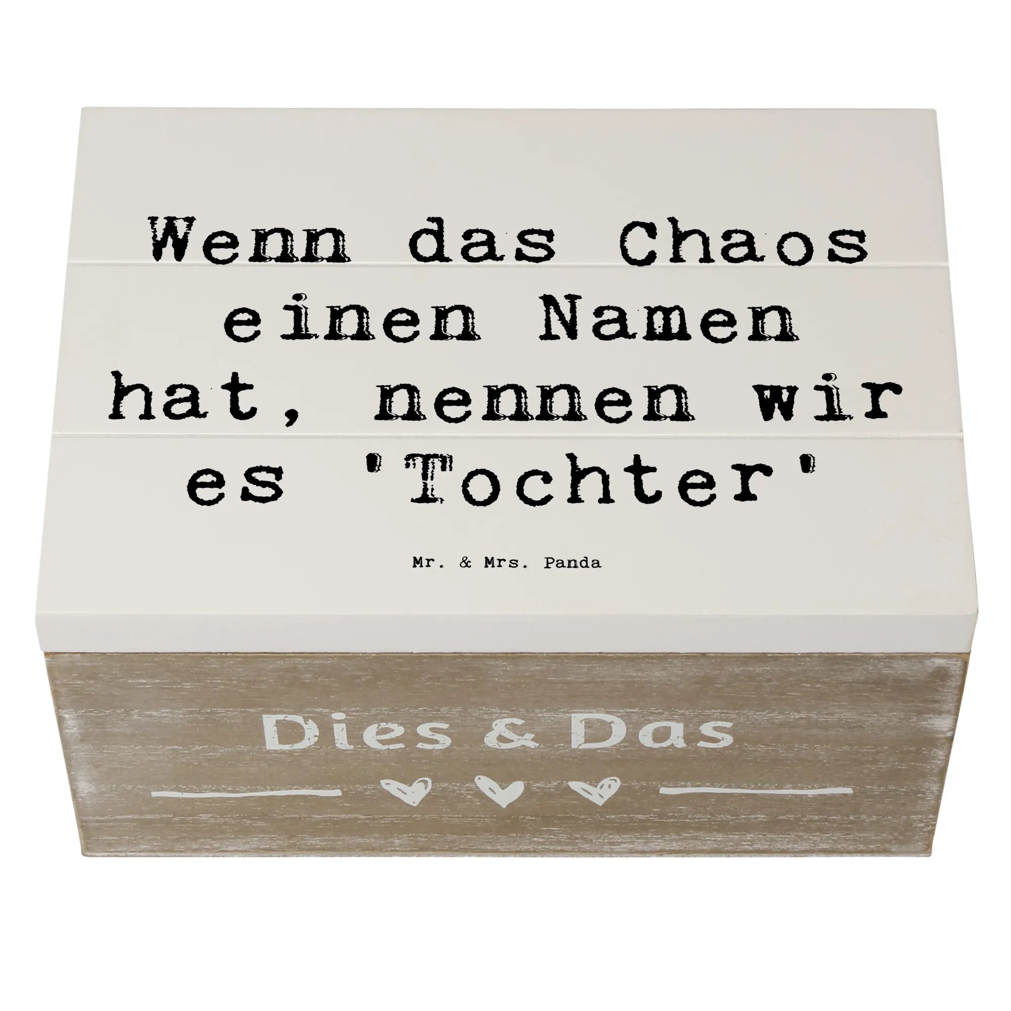 Entdecke die wundervolle Holzkiste von Mr. & Mrs. Panda, die perfekt für Deine bezaubernde Tochter ist! Diese liebevoll gestaltete Kiste ist nicht nur ein Aufbewahrungsort für all ihre Schätze, sondern auch ein wunderschönes Geschenk, das von Herzen kommt. Mit einem einzigartigen Motiv, das die besondere Beziehung zwischen Eltern und Töchtern zelebriert, trägt diese Kiste den Spruch: 'Wenn das Chaos einen Namen hat, nennen wir es 'Tochter'.' Diese Aussage spiegelt die Freude und das kleine Tohuwabohu wider, das Töchter in unser Leben bringen.