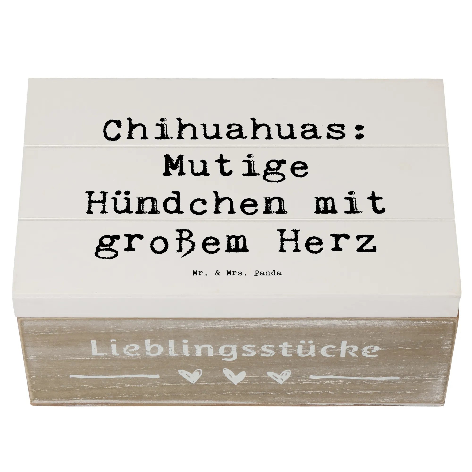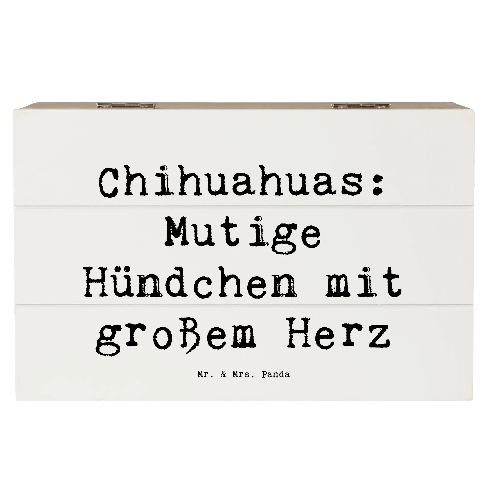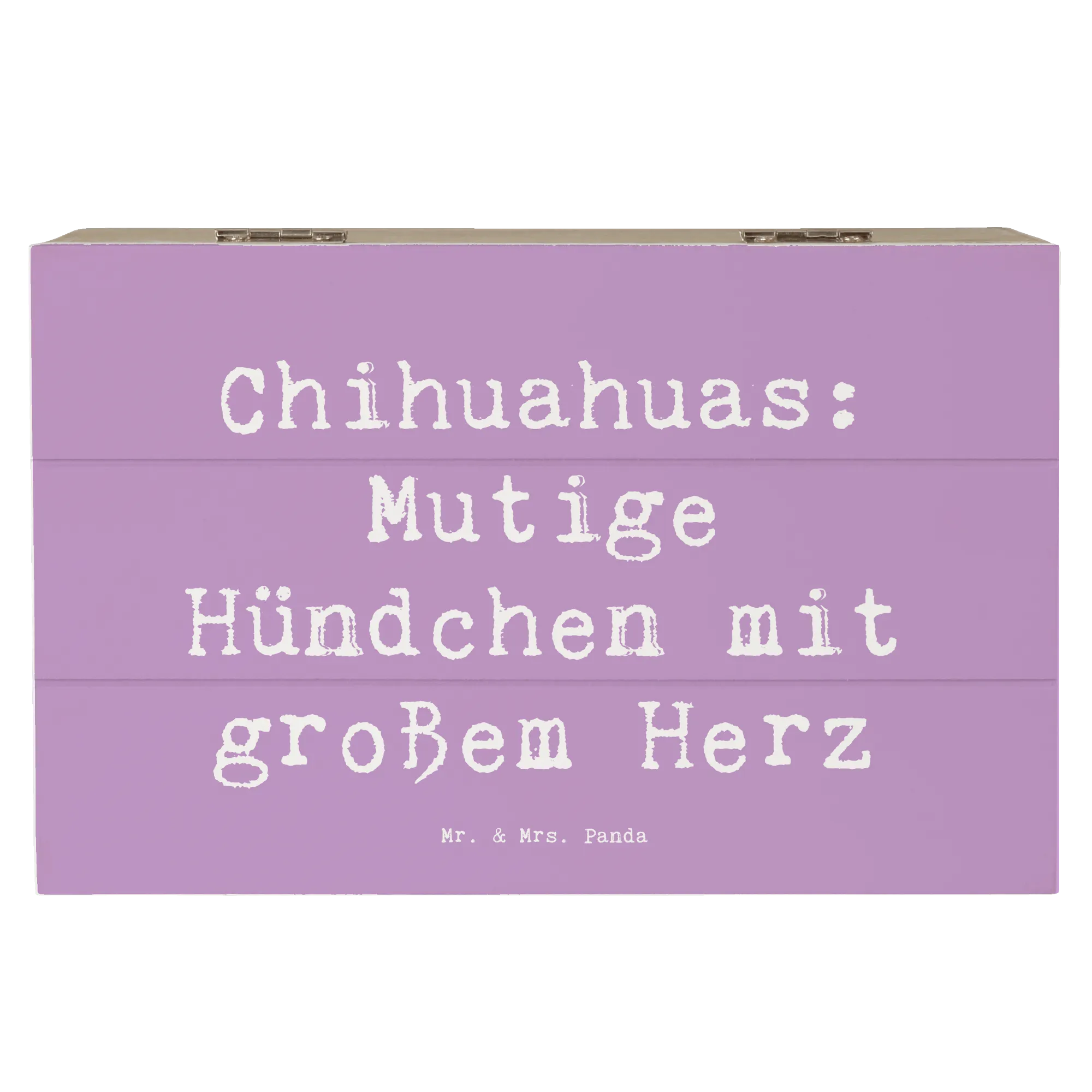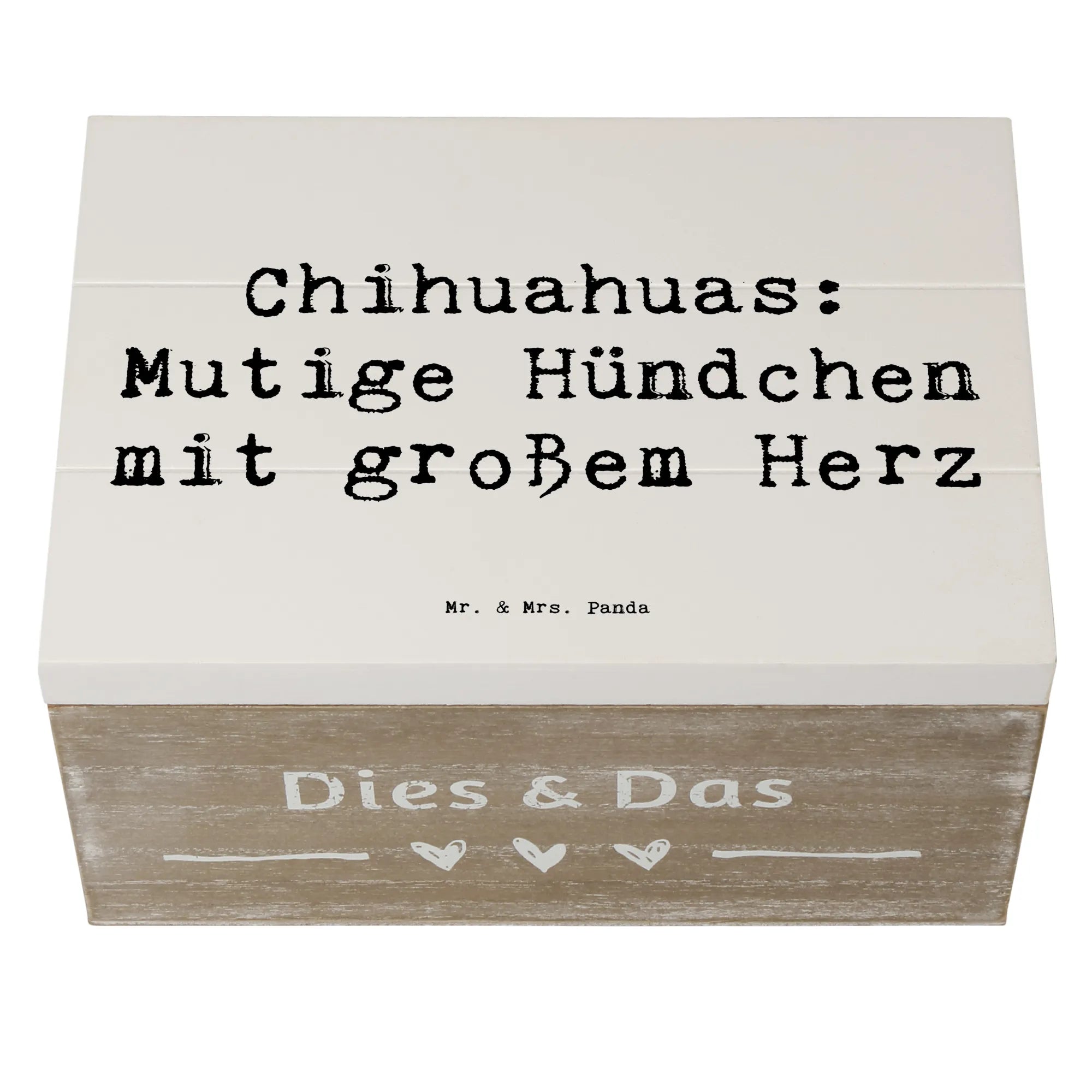 Diese wunderschöne Holzkiste von Mr. & Mrs. Panda ist das perfekte Geschenk für alle Chihuahua-Liebhaber! Mit dem liebevoll gestalteten Motiv "Chihuahuas: Mutige Hündchen mit großem Herz" bringt sie Freude in jedes Zuhause.