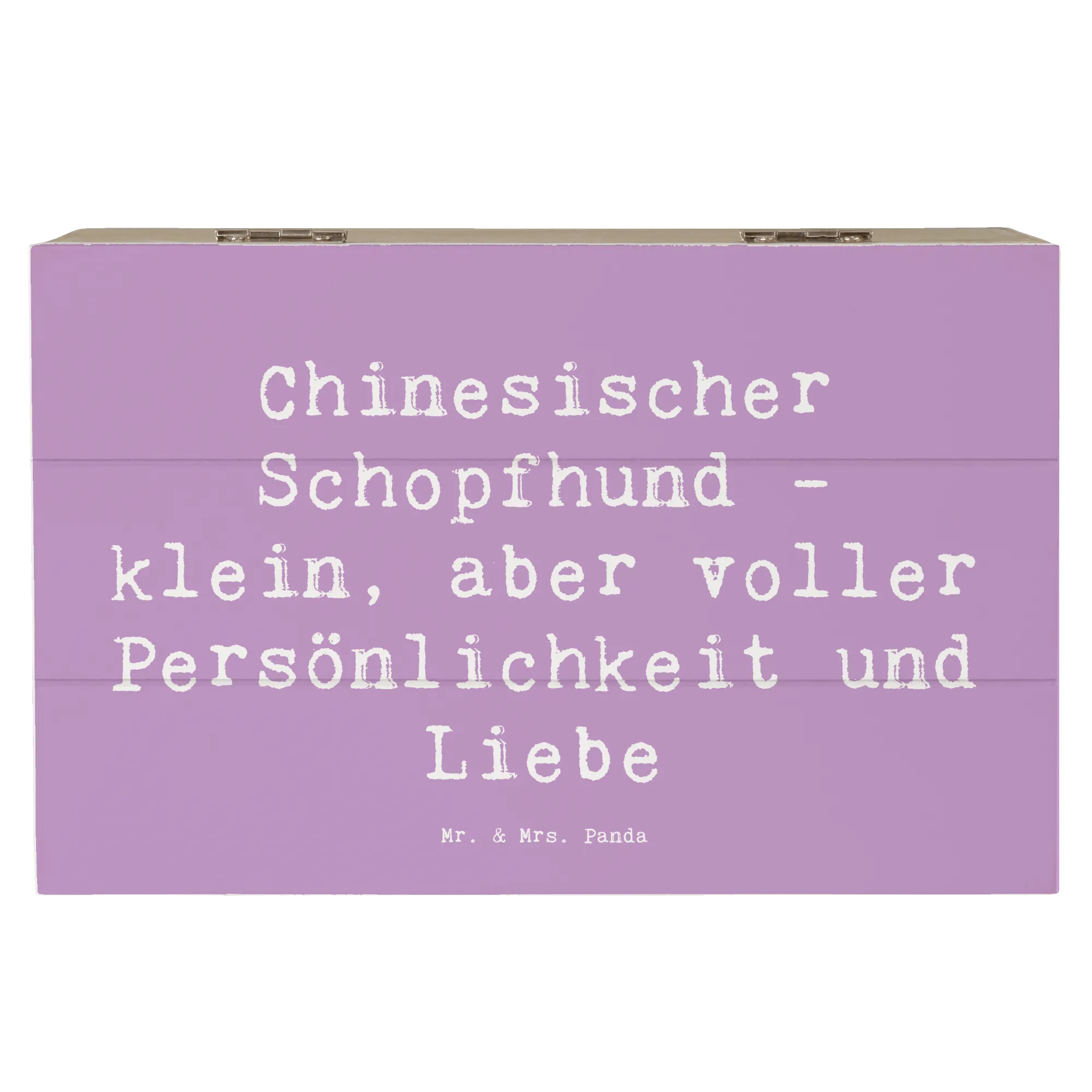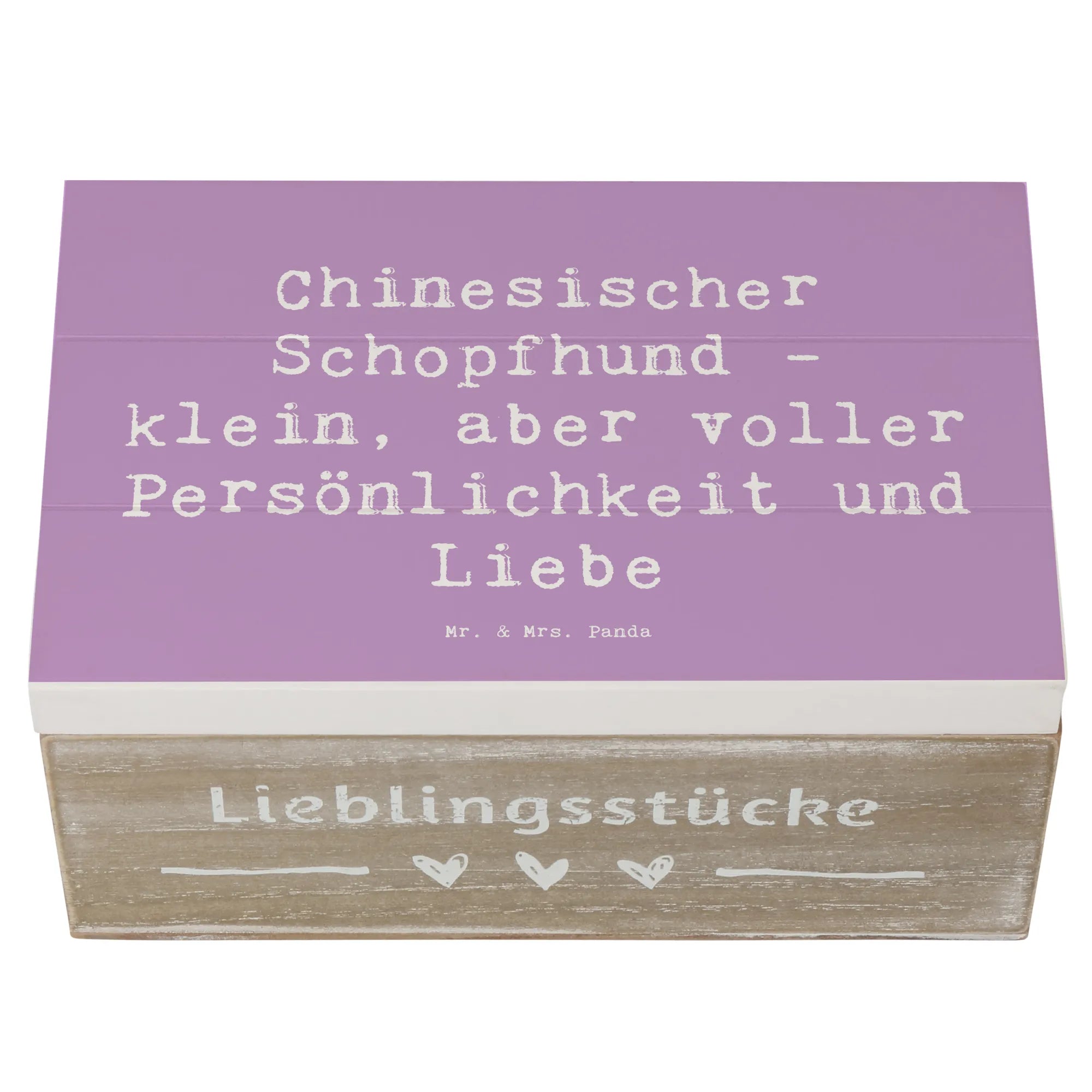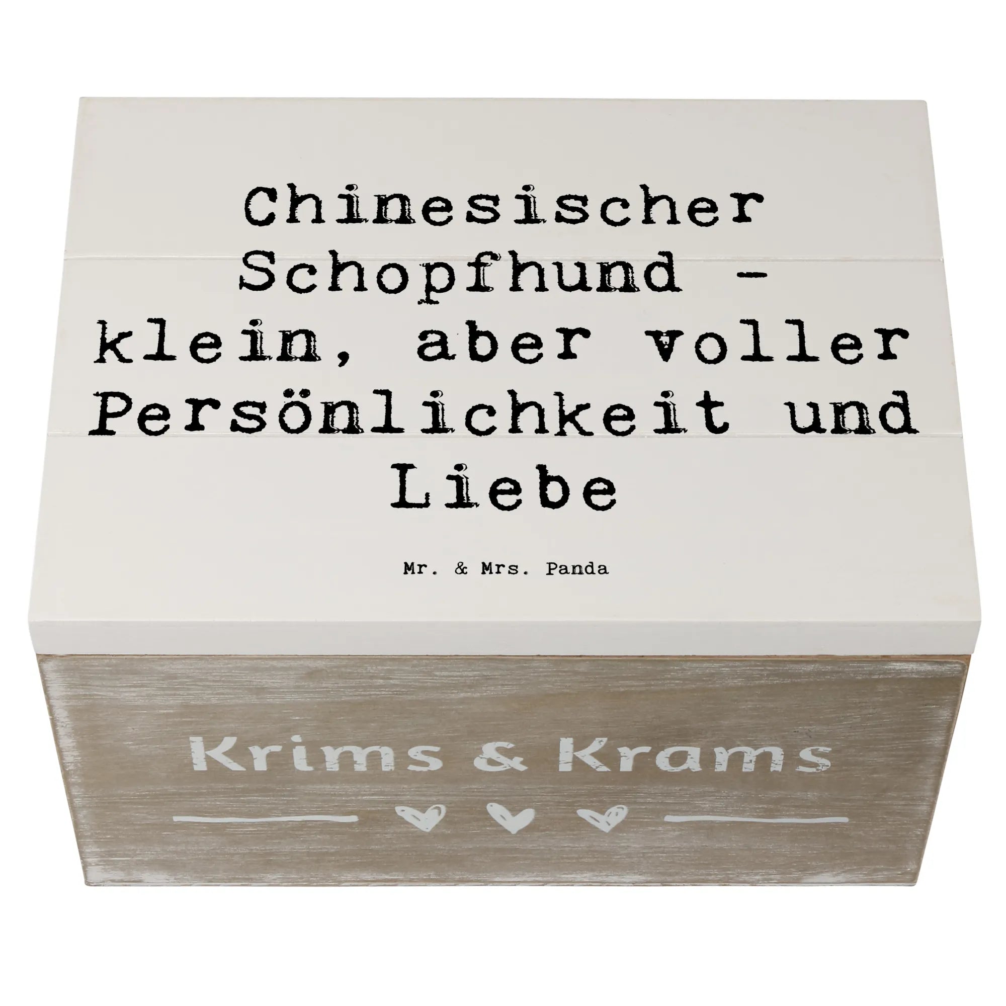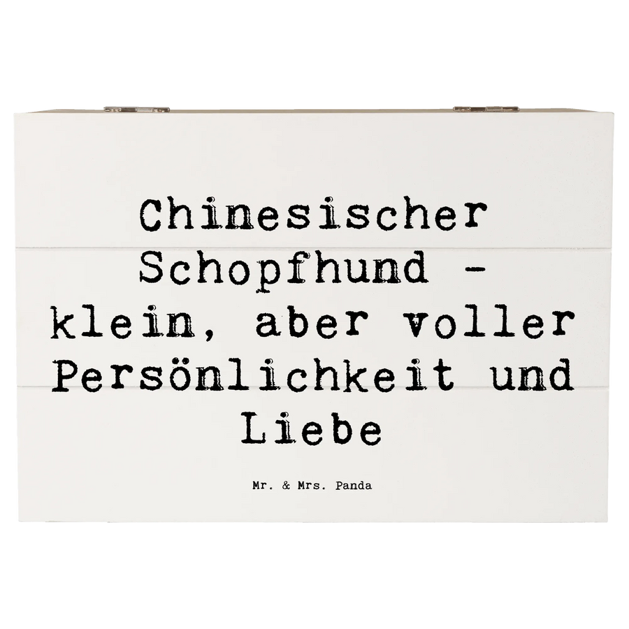 Die wunderschöne Holzkiste mit dem Motiv Chinesischer Schopfhund von Mr. & Mrs. Panda ist das perfekte Geschenk für jeden Hundefan! Ob als kleine Schatzkiste für deine kostbaren Erinnerungen oder als stilvolle Dekokiste für dein Zuhause, dieses wunderbare Produkt vereint Funktionalität mit einem liebevollen Design.