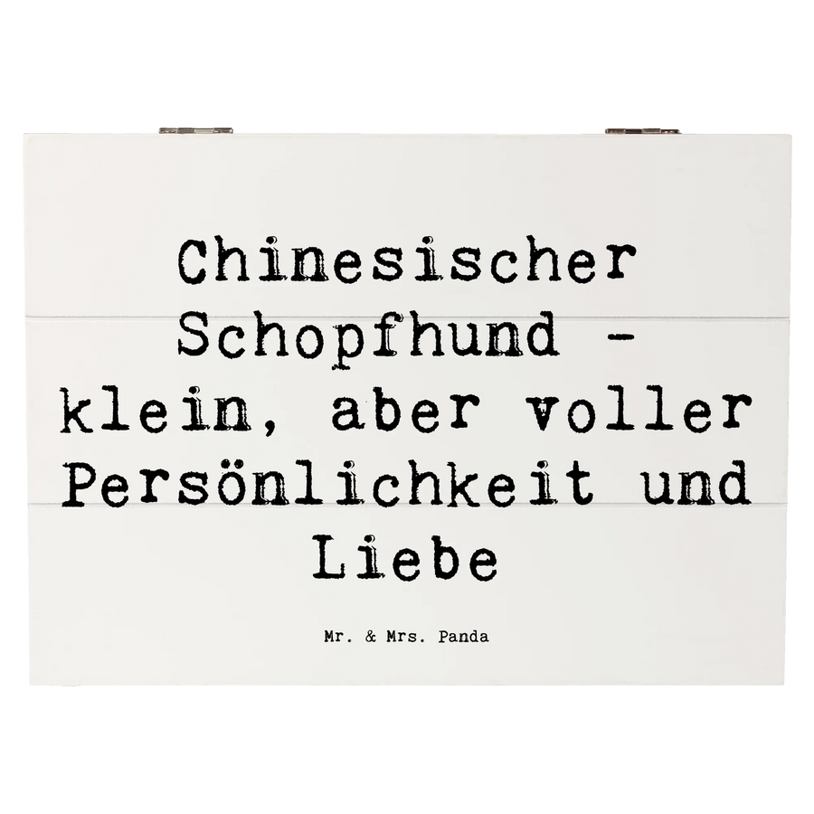 Die wunderschöne Holzkiste mit dem Motiv Chinesischer Schopfhund von Mr. & Mrs. Panda ist das perfekte Geschenk für jeden Hundefan! Ob als kleine Schatzkiste für deine kostbaren Erinnerungen oder als stilvolle Dekokiste für dein Zuhause, dieses wunderbare Produkt vereint Funktionalität mit einem liebevollen Design.