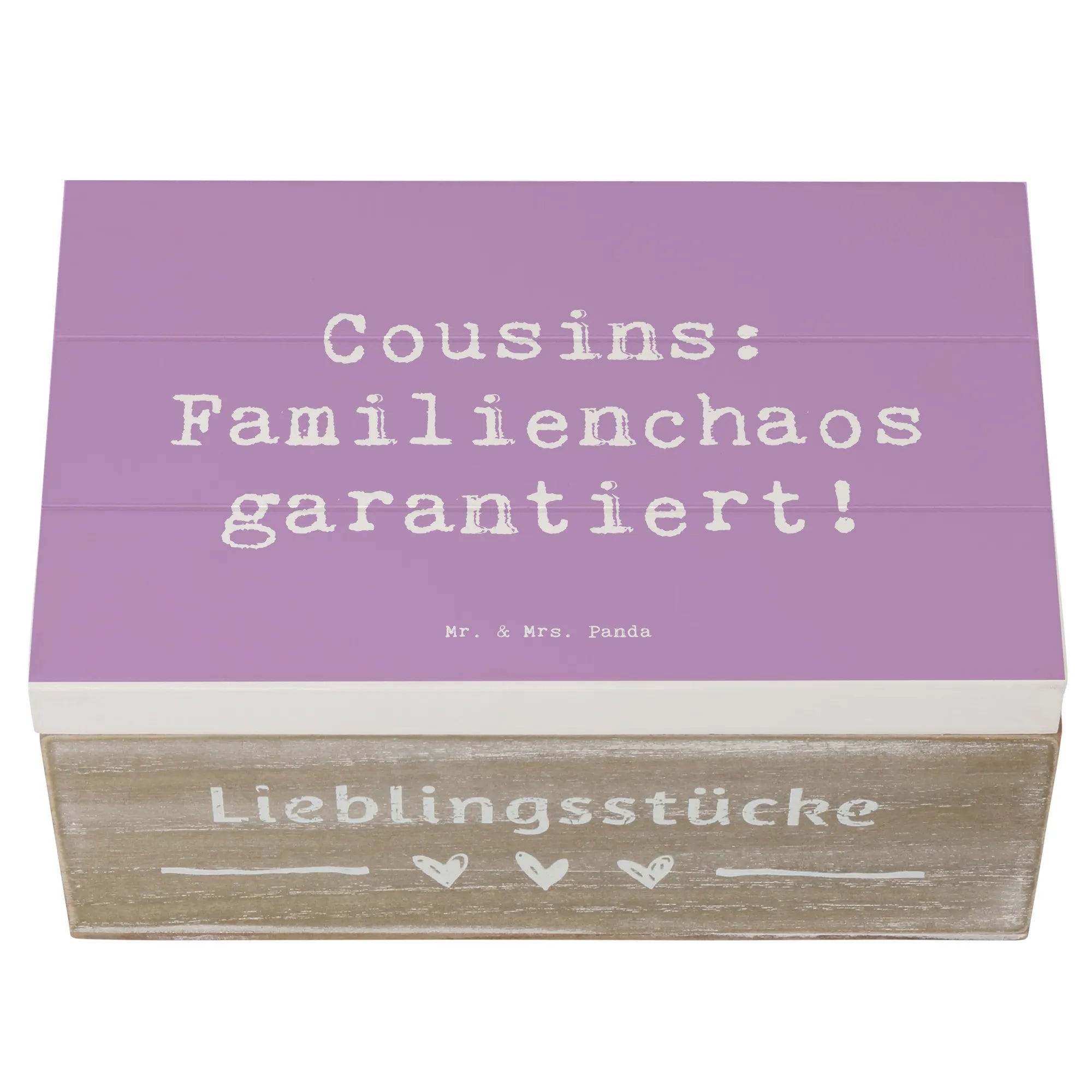 Die wunderschöne Holzkiste von Mr. & Mrs. Panda ist ein wahrhaft magisches Geschenk für alle Verwandten, besonders für deine tollen Cousins und Cousinen! Mit dem charmanten Spruch "Cousins: Familienchaos garantiert!" ist diese Kiste nicht nur ein praktischer Aufbewahrungsort, sondern auch ein liebevolles Zeichen der Verbundenheit.
