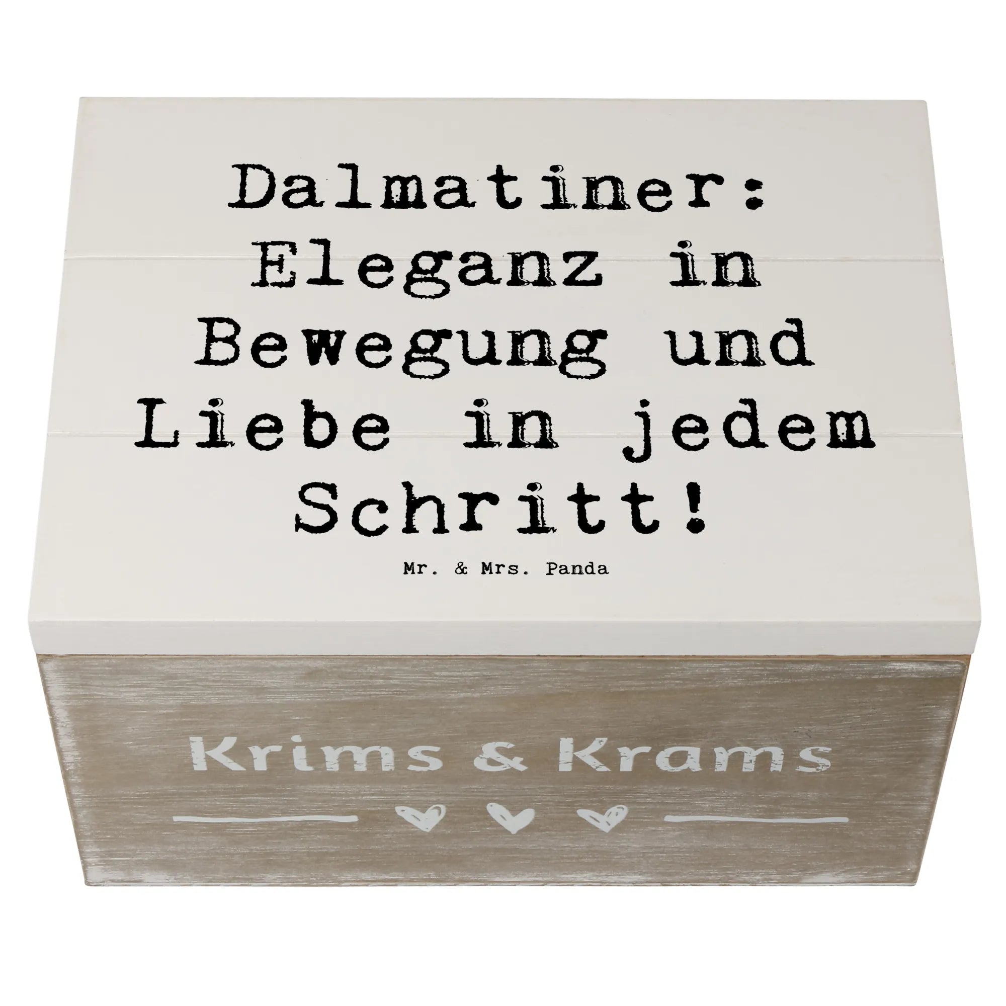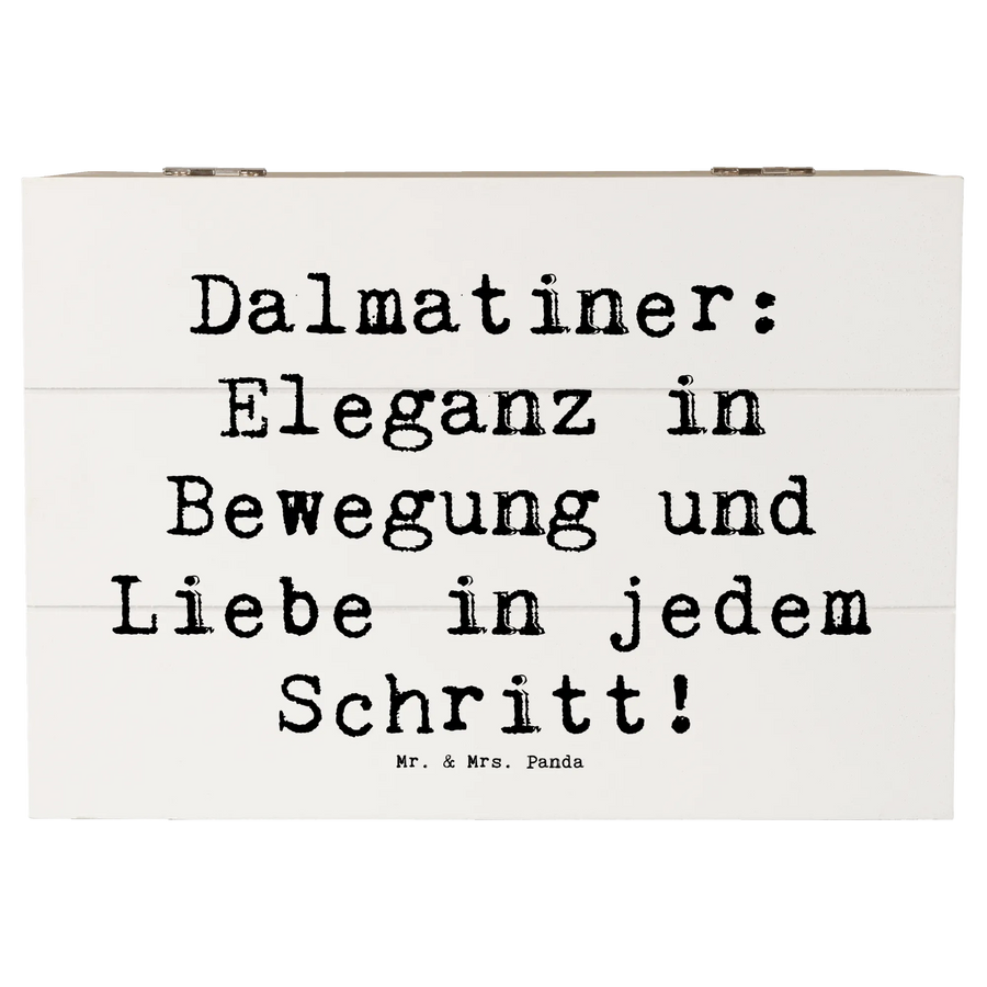 Die wunderschöne Holzkiste von Mr. & Mrs. Panda mit dem Motivausschnitt "Dalmatiner: Eleganz in Bewegung und Liebe in jedem Schritt!" ist das perfekte Geschenk für jeden Hundefan. Diese einzigartige Erinnerungskiste ist nicht nur ein Aufbewahrungsort für kostbare Schätze, sondern auch ein echter Blickfang in jedem Zuhause.