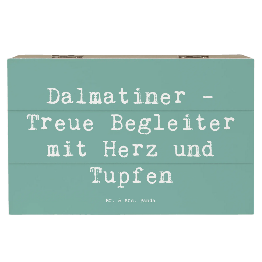 Die wunderschöne Holzkiste von Mr. & Mrs. Panda begeistert nicht nur durch ihr verspieltes Design, sondern auch durch ihre Funktionalität! Bedruckt mit dem süßen Motiv des Dalmatiners und dem Spruch "Dalmatiner - Treue Begleiter mit Herz und Tupfen", ist diese Erinnerungskiste ein ideales Geschenk für alle Hundefans und stolzen Dalmatiner-Besitzer.