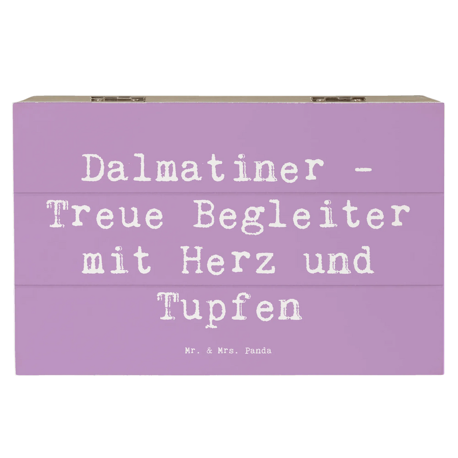 Die wunderschöne Holzkiste von Mr. & Mrs. Panda begeistert nicht nur durch ihr verspieltes Design, sondern auch durch ihre Funktionalität! Bedruckt mit dem süßen Motiv des Dalmatiners und dem Spruch "Dalmatiner - Treue Begleiter mit Herz und Tupfen", ist diese Erinnerungskiste ein ideales Geschenk für alle Hundefans und stolzen Dalmatiner-Besitzer.