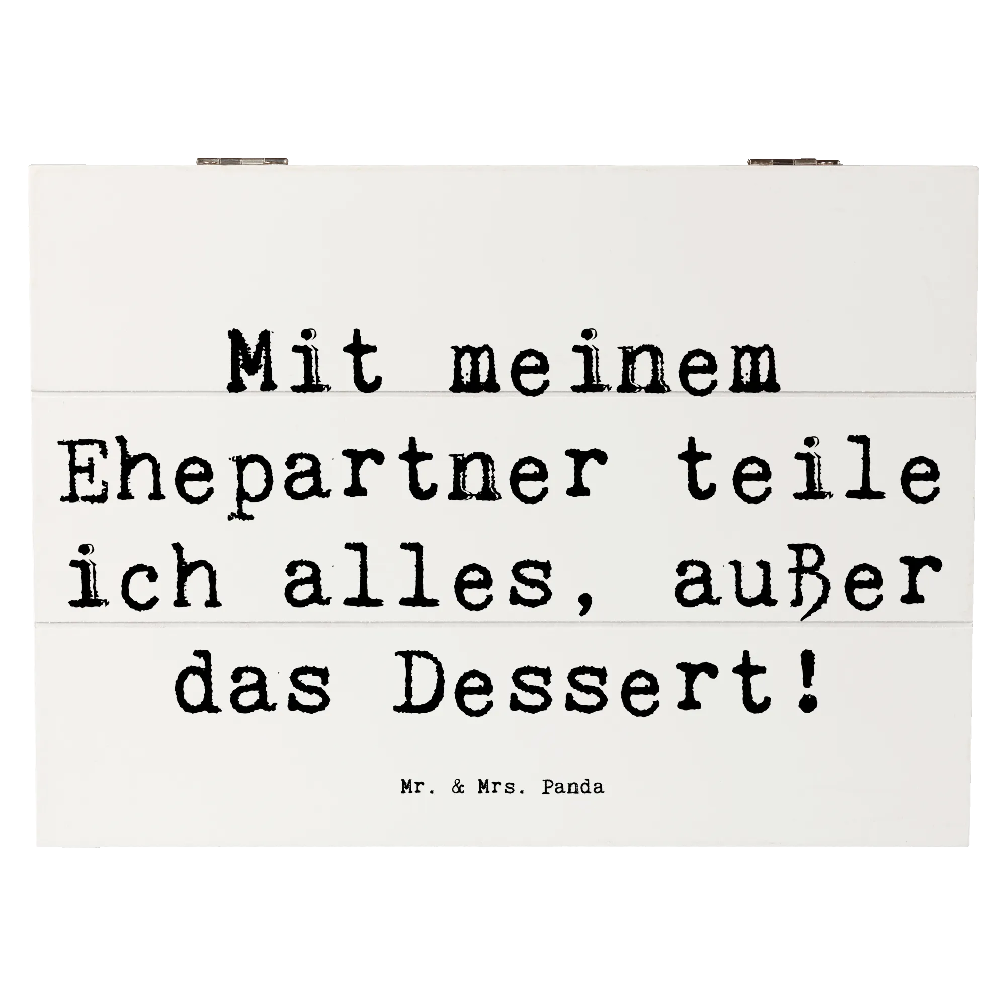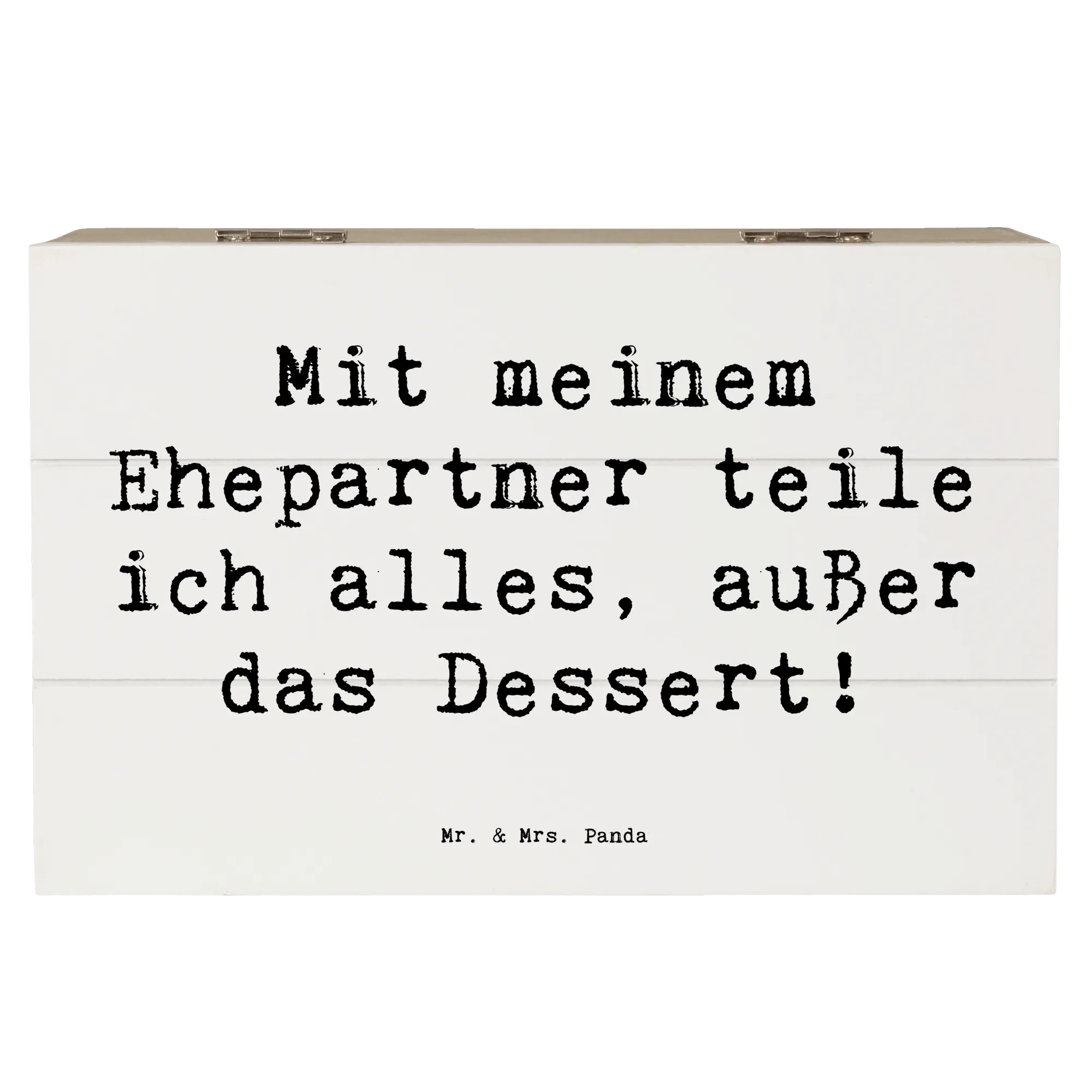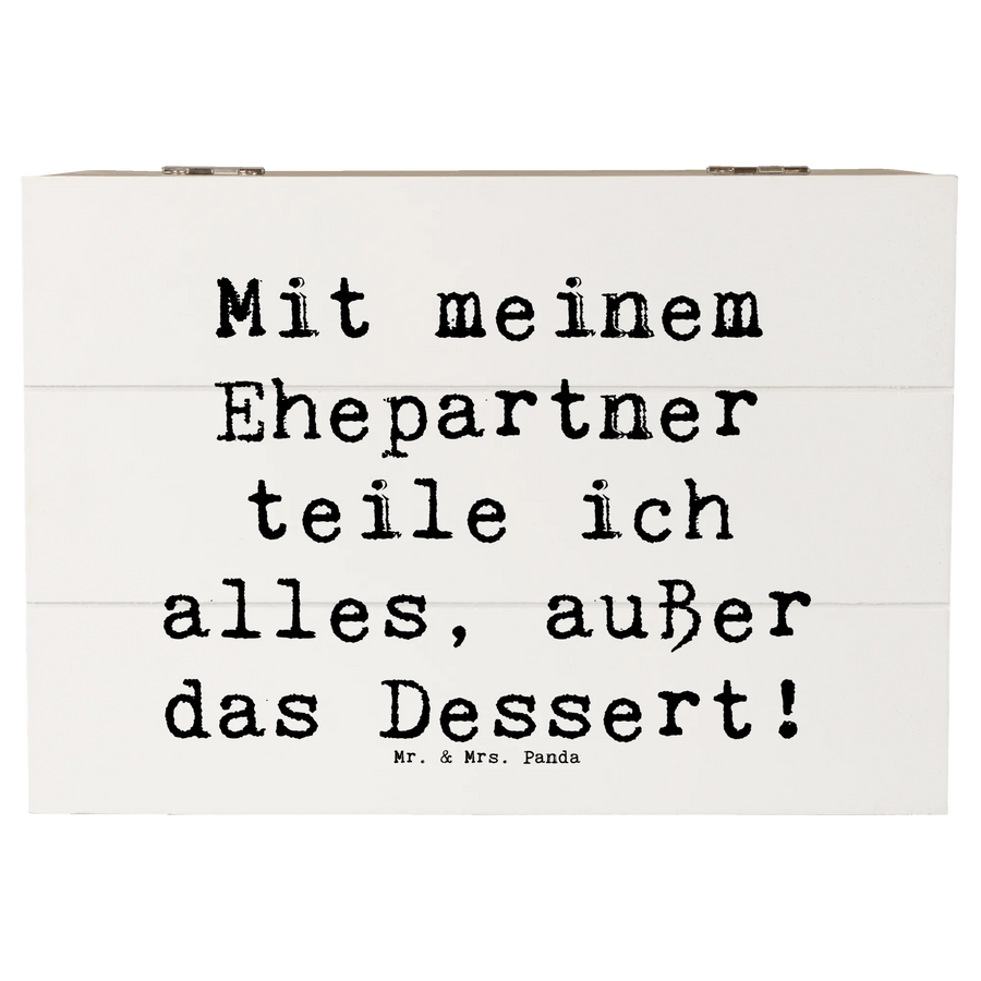 Mit dem liebevollen Spruch "Mit meinem Ehepartner teile ich alles, außer das Dessert!" zielt diese Schatzkiste auf genau die Momente ab, die eine Ehe so besonders machen.