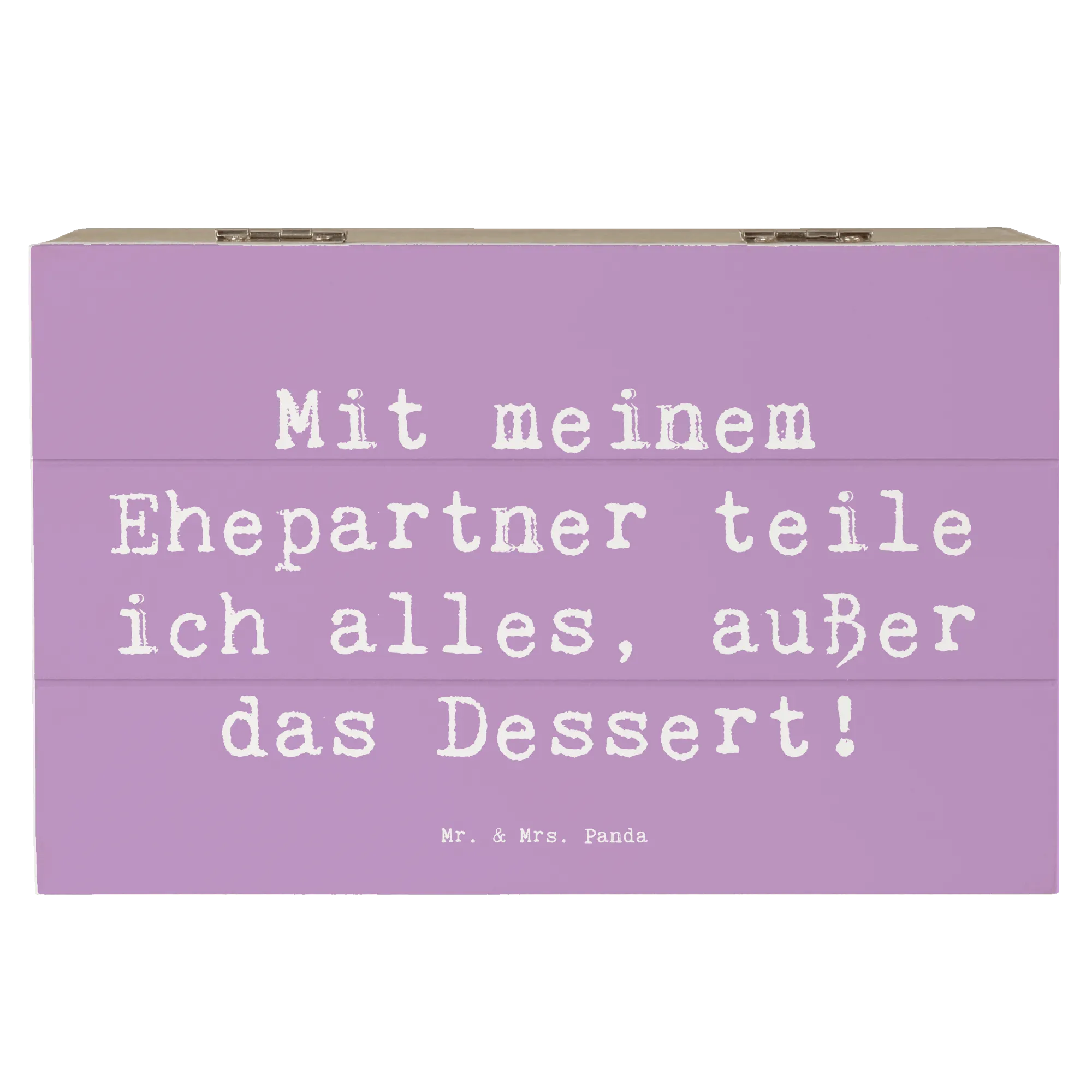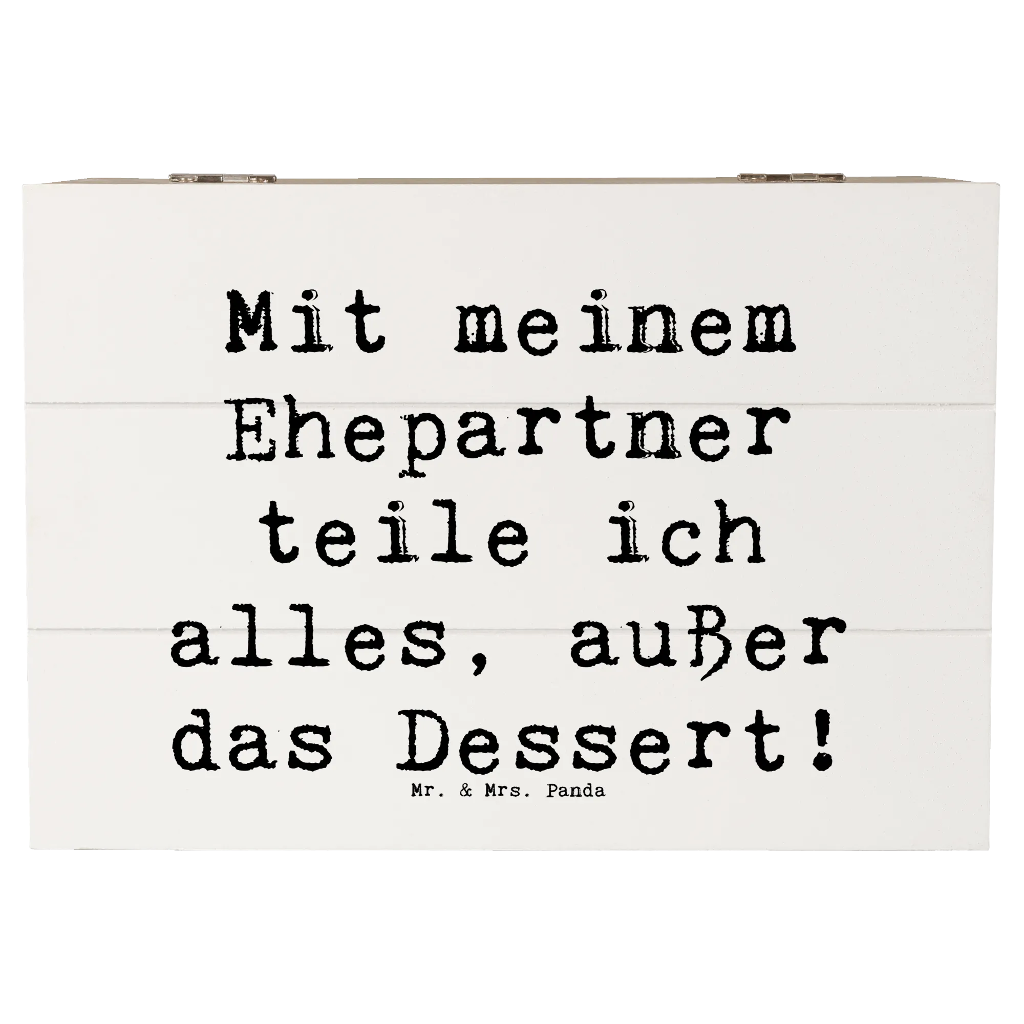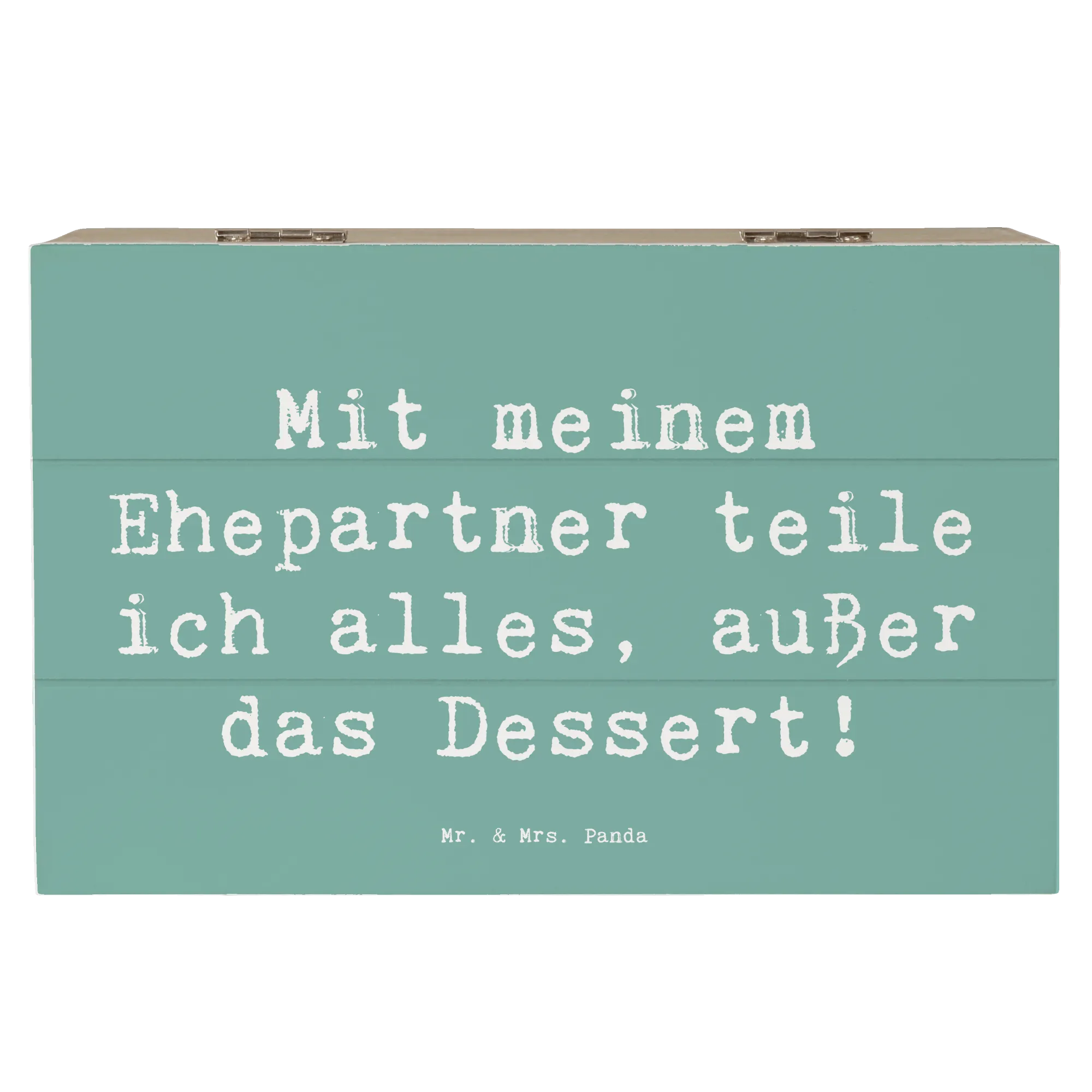 Mit dem liebevollen Spruch "Mit meinem Ehepartner teile ich alles, außer das Dessert!" zielt diese Schatzkiste auf genau die Momente ab, die eine Ehe so besonders machen.