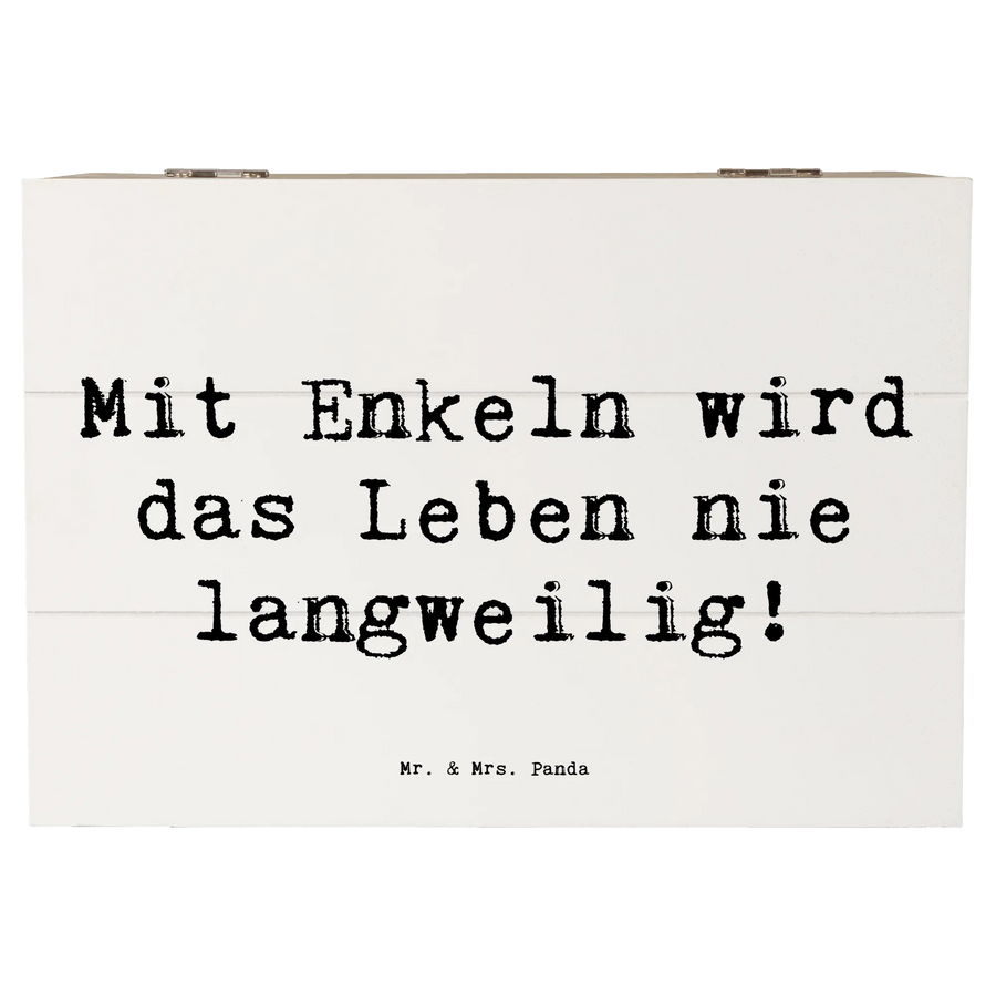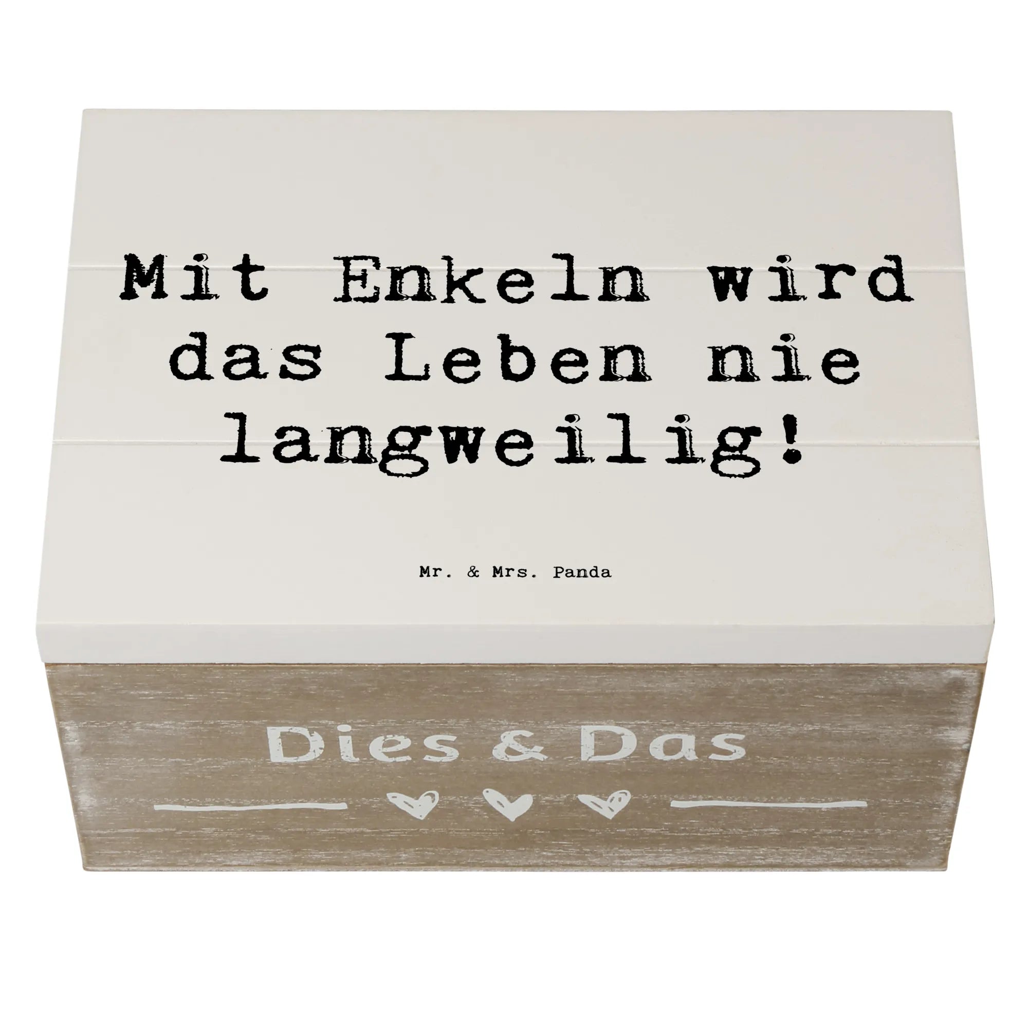 Die wunderschöne Holzkiste von Mr. & Mrs. Panda ist das perfekte Geschenk für alle Großeltern, die die besonderen Momente mit ihren Enkelkindern festhalten möchten. Sie ist nicht nur eine praktische Aufbewahrungsbox, sondern auch eine Erinnerungskiste, die mit Liebe gestaltet wurde. Der coole Spruch "Mit Enkeln wird das Leben nie langweilig!" bringt festliche Freude und macht diese Kiste zum idealen Ort, um all die wertvollen Schätze und Erinnerungen zu sammeln, die das Familienleben so bereichern.