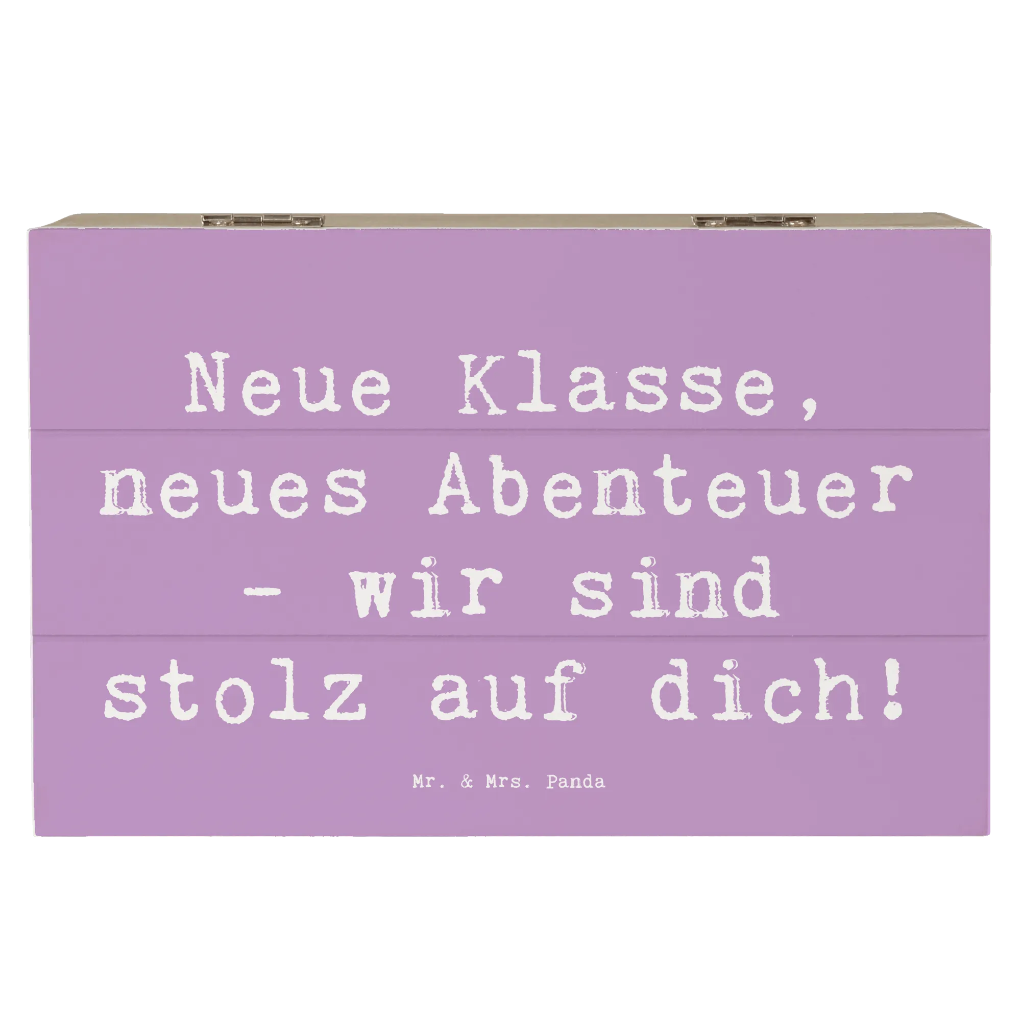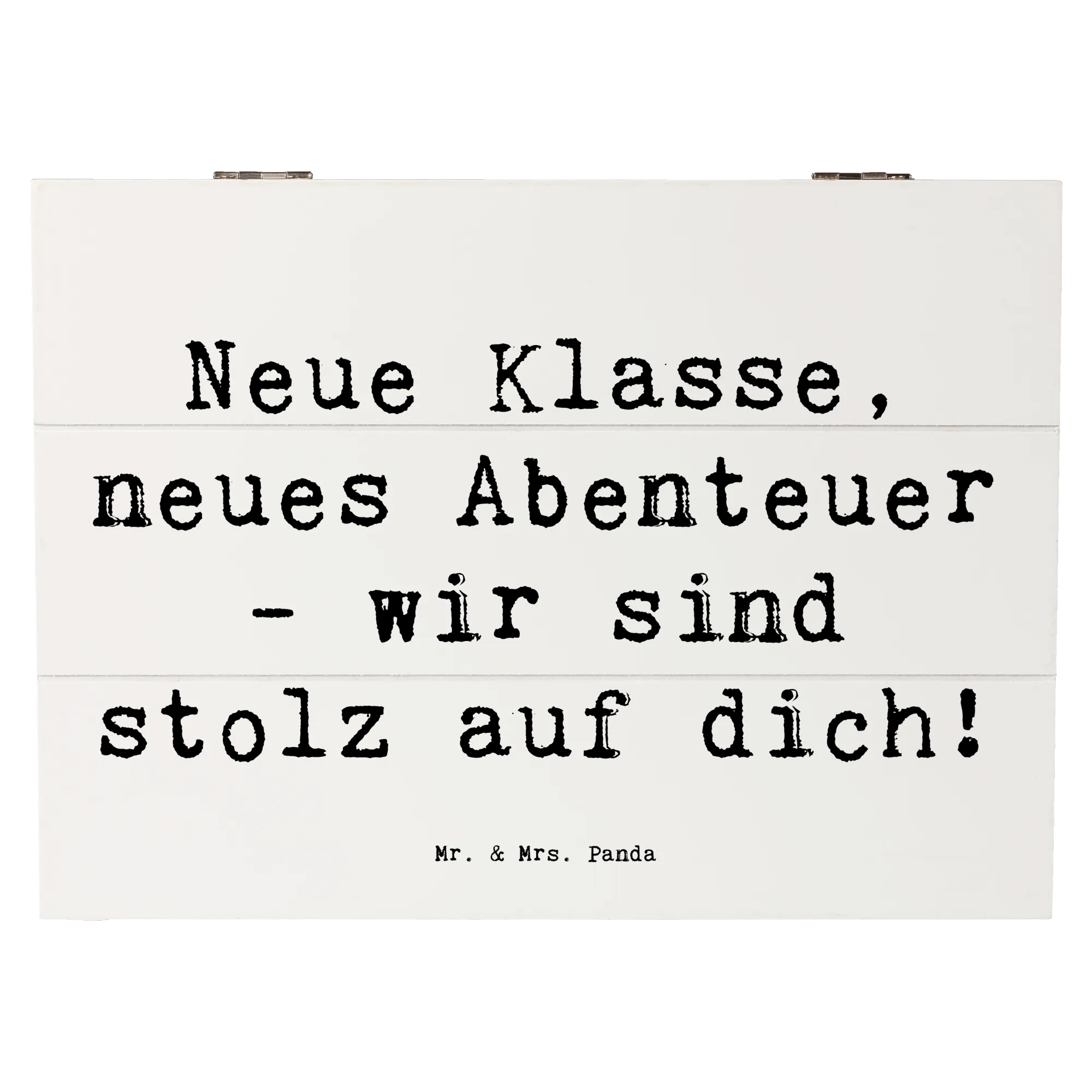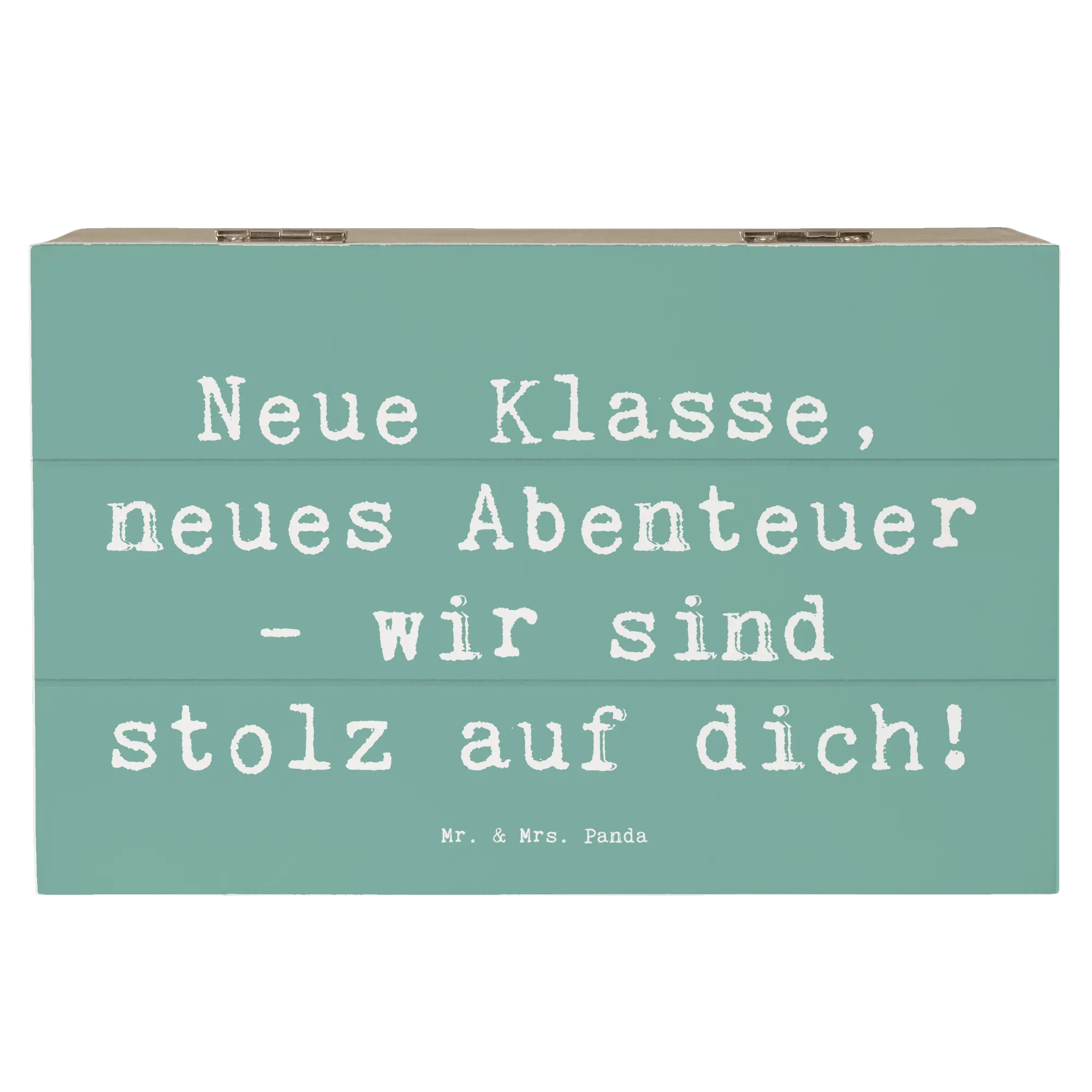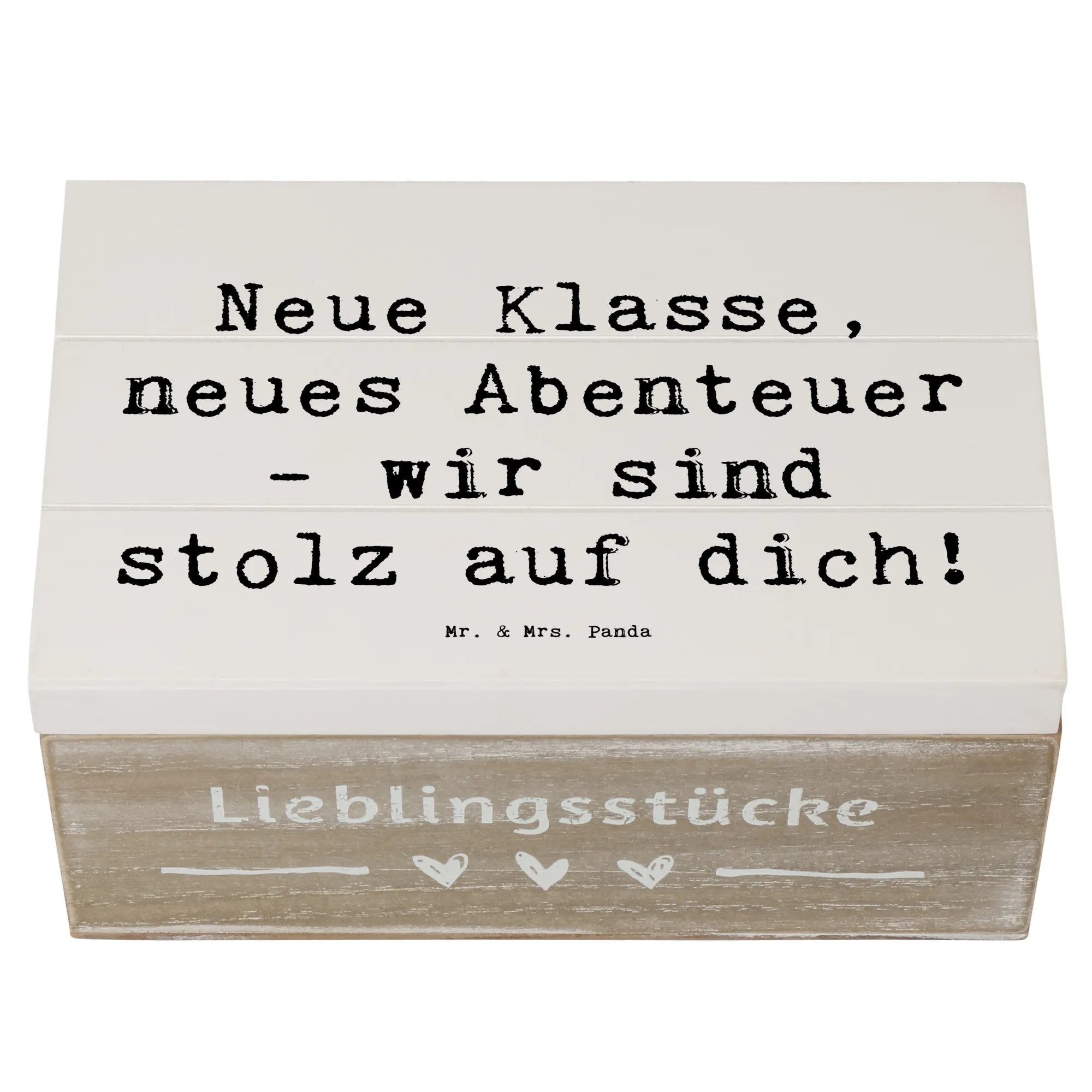 Die wunderschöne Holzkiste von Mr. & Mrs. Panda ist das perfekte Geschenk für den ersten Schultag in einer neuen Klasse! Mit dem liebevollen Motiv, das den Spruch 'Neue Klasse, neues Abenteuer - wir sind stolz auf dich!' trägt, wird diese Schatzkiste zu einem treuen Begleiter in der aufregenden Zeit des Schulbeginns.