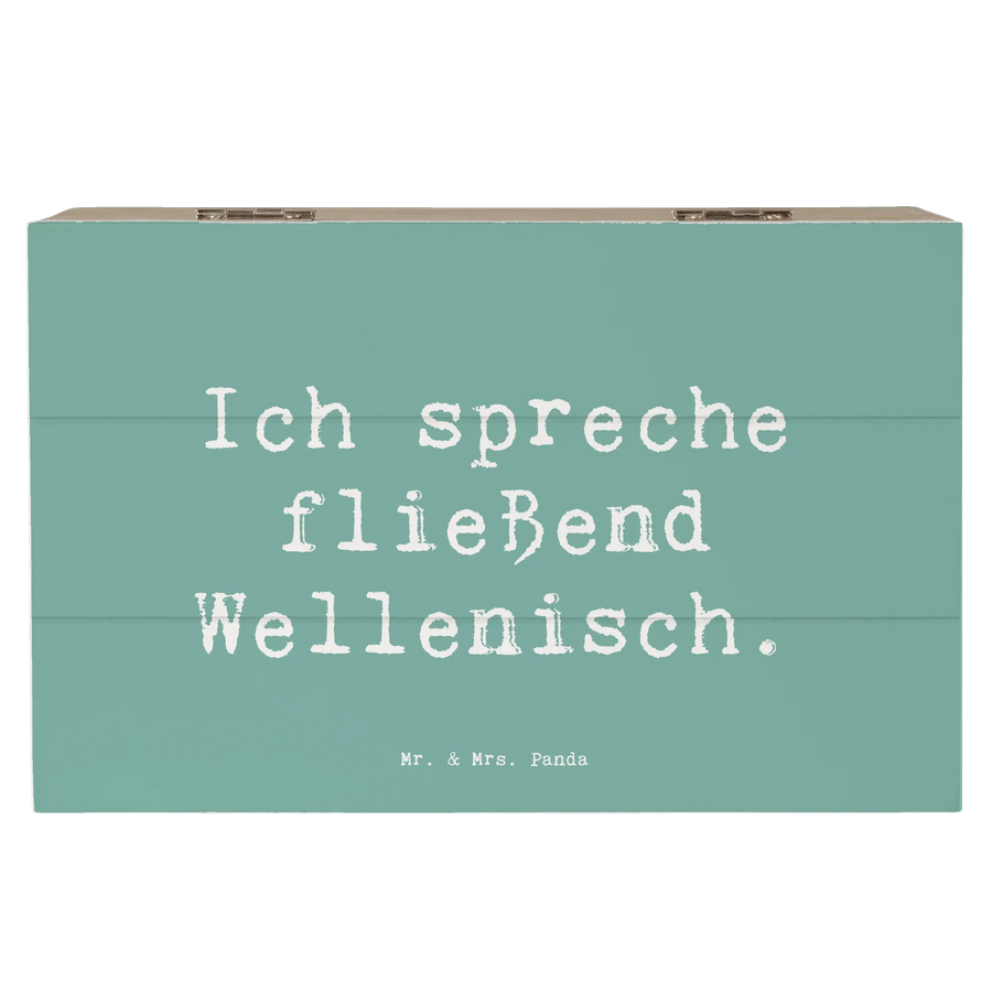 Die entzückenden Motive und Sprüche verleihen der Kiste einen einzigartigen Charme. Der Slogan "Ich spreche fließend Wellenisch." spricht vor allem Wassersport-Liebhaber an, die das Surfen tief im Herzen tragen.