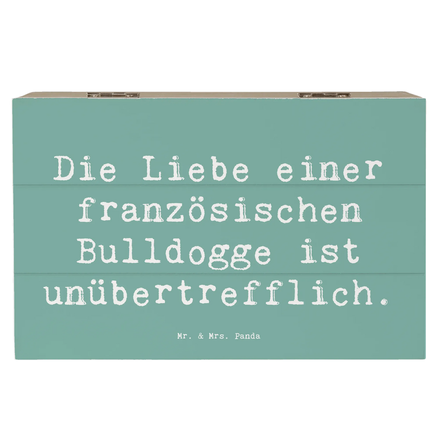 Entdecke die wunderschöne Holzkiste von Mr. & Mrs. Panda, die perfekt für alle Hundefans ist! Mit dem liebevollen Motiv einer Französischen Bulldogge und dem charmanten Slogan "Die Liebe einer französischen Bulldogge ist unübertrefflich" wird diese Kiste zum idealen Geschenk für jeden Hundeliebhaber.
