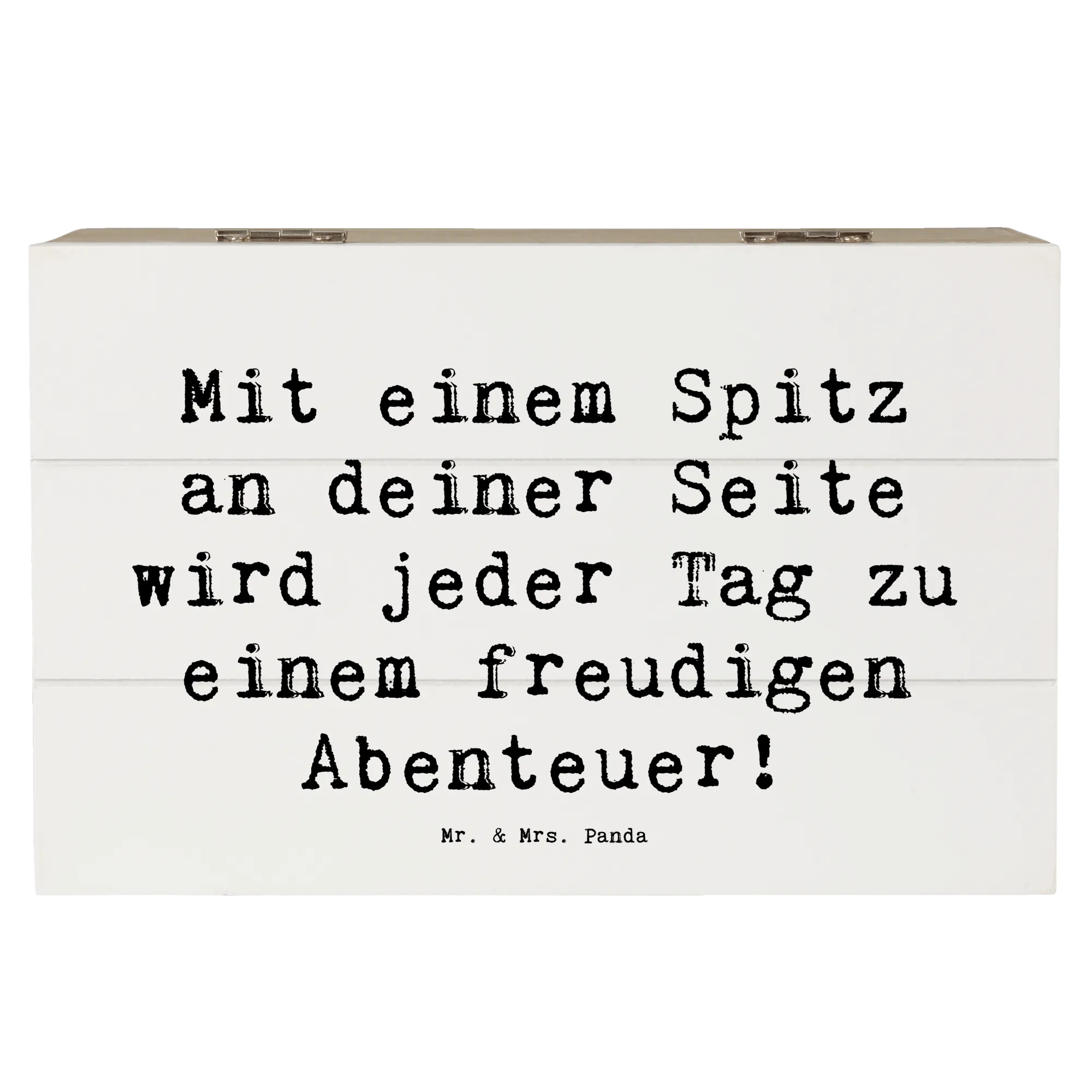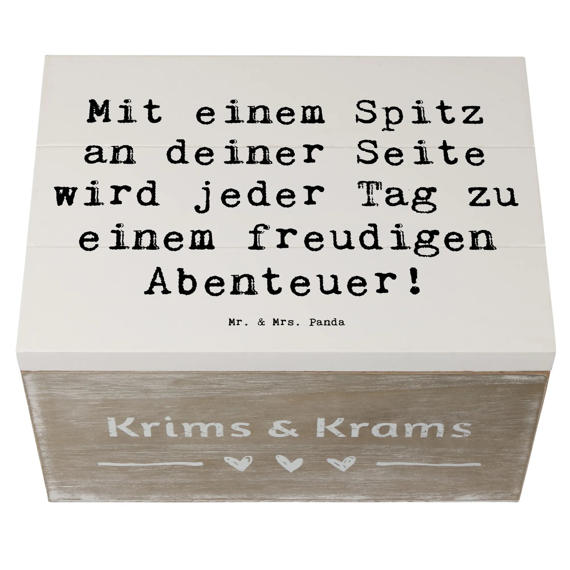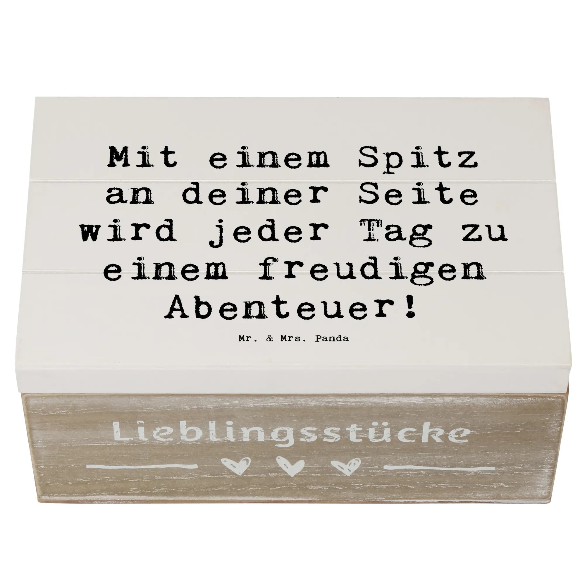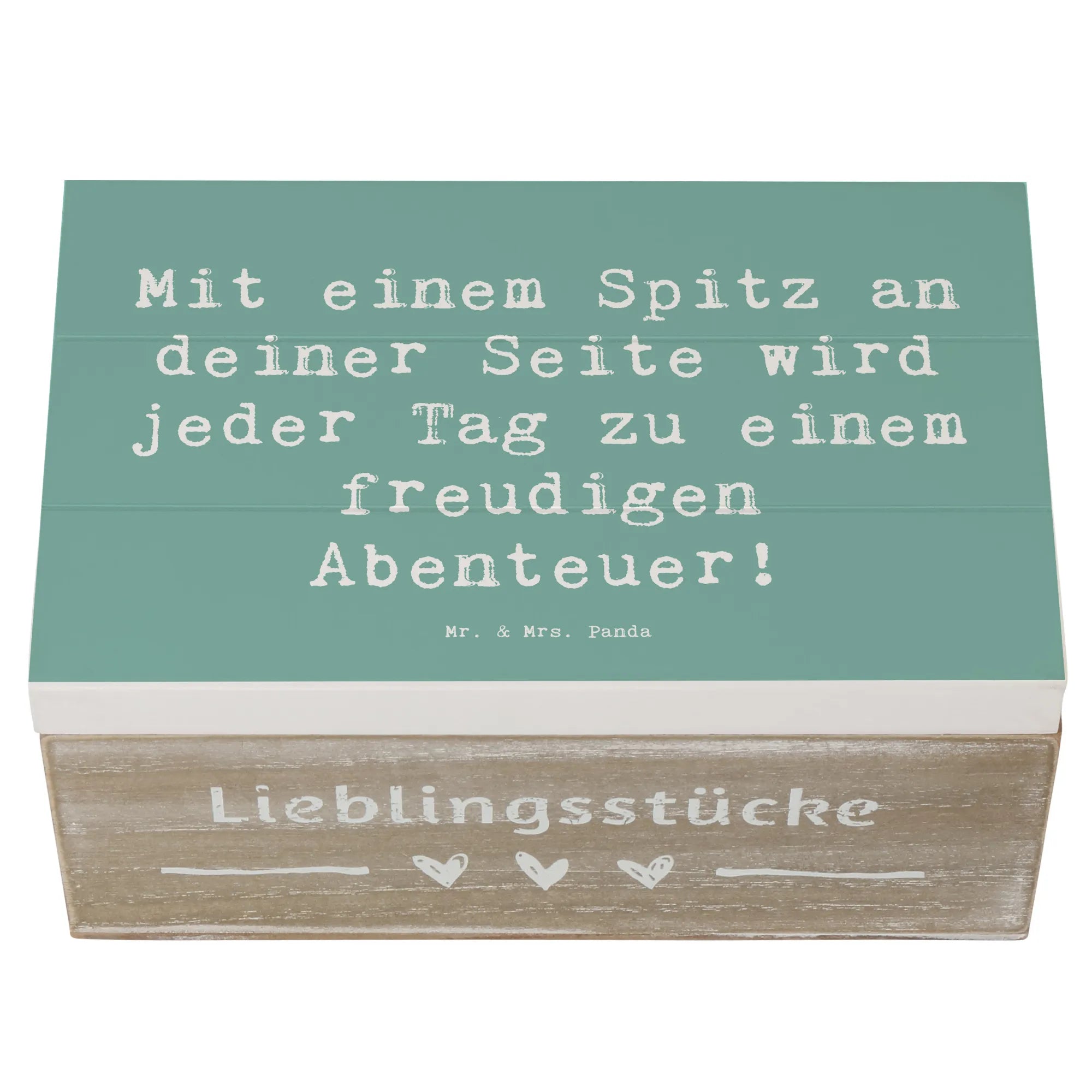 Die wunderschöne Holzkiste von Mr. & Mrs. Panda mit einem liebevollen Spitz-Motiv ist das perfekte Geschenk für alle Hundefans und hat noch dazu einen einzigartigen Spruch: "Mit einem Spitz an deiner Seite wird jeder Tag zu einem freudigen Abenteuer!" Diese Erinnerungskiste ist aus robuster Premium Hartfaser gefertigt und bietet ausreichend Platz für all deine wertvollen Schätze.
