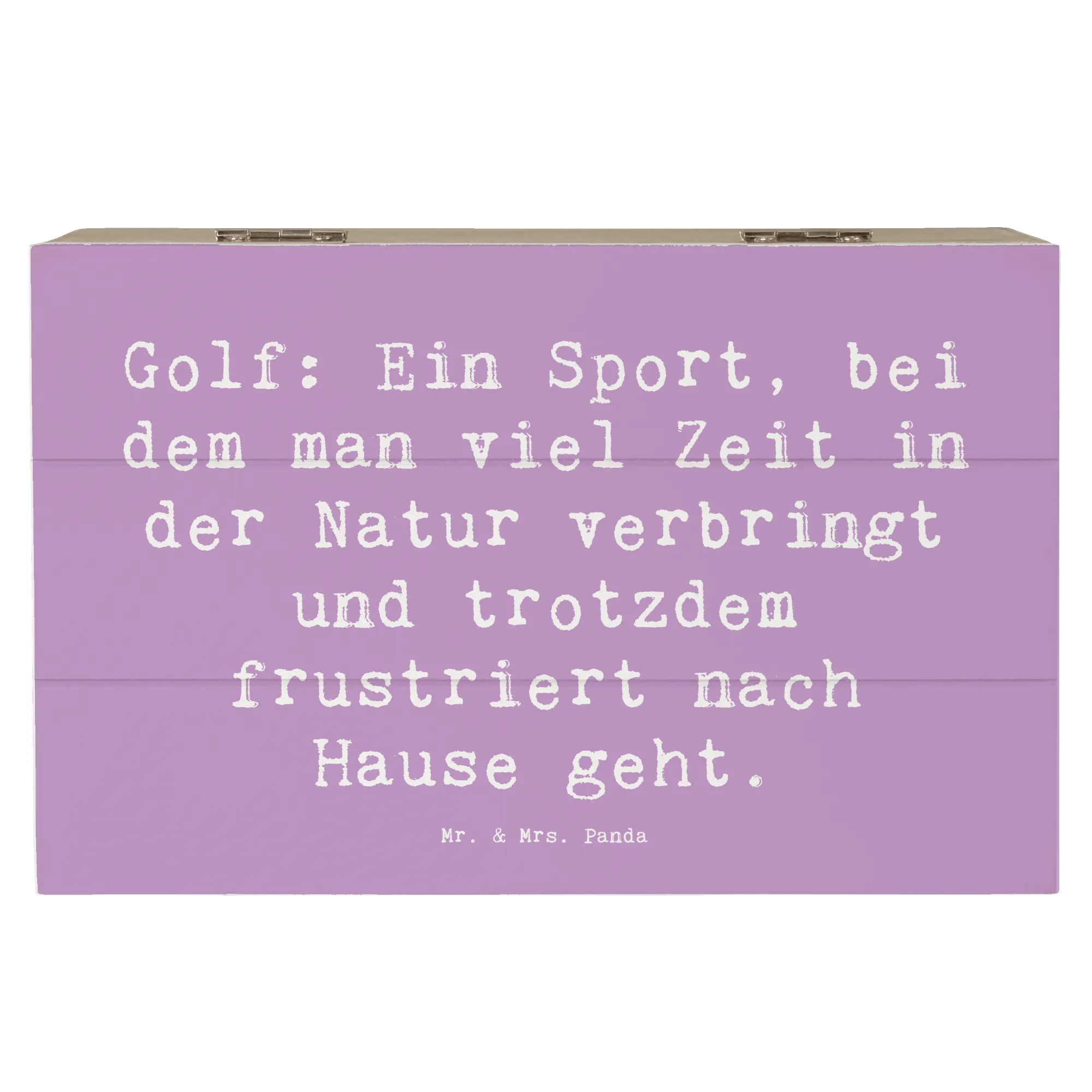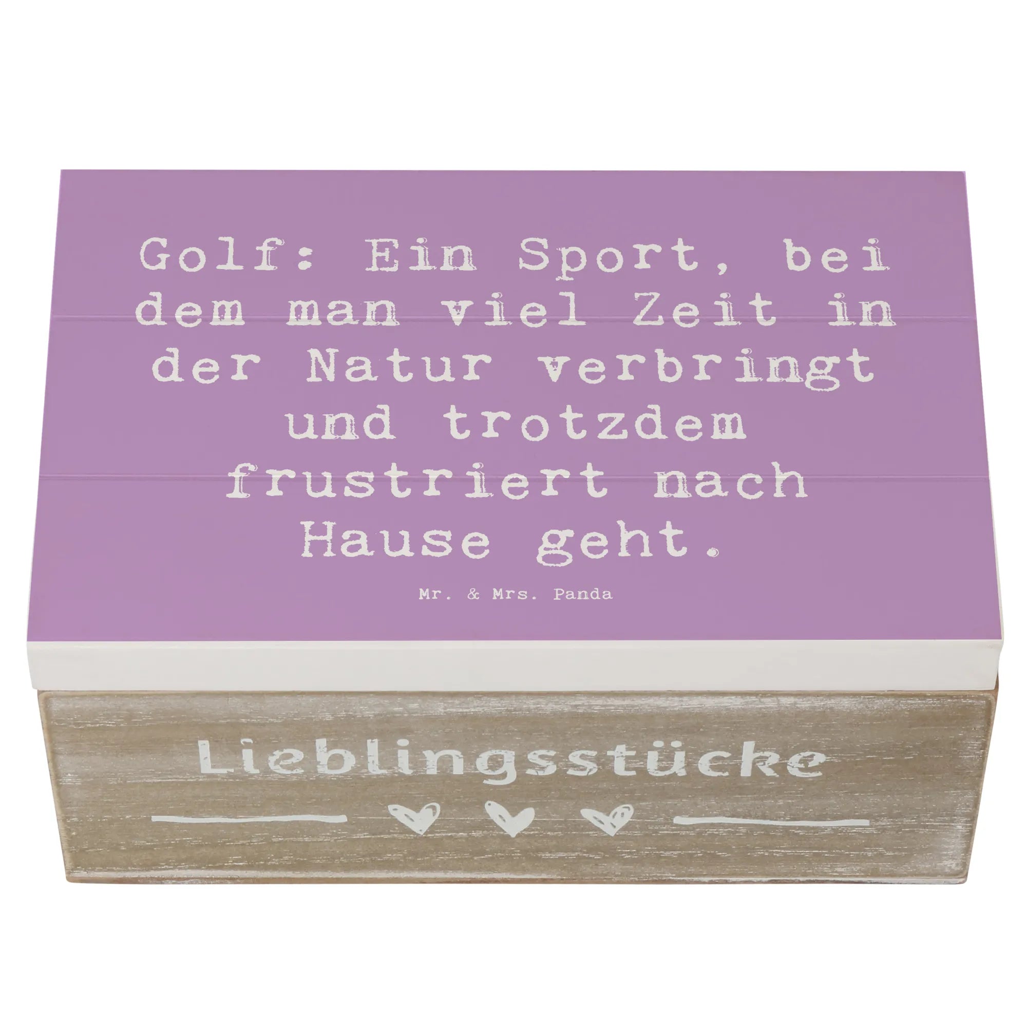Die wunderschöne Holzkiste von Mr. & Mrs. Panda ist das perfekte Geschenk für alle Golf-Fans und Sportliebhaber! Mit ihrem einzigartigen Design und dem herzlichen Spruch "Golf: Ein Sport, bei dem man viel Zeit in der Natur verbringt und trotzdem frustriert nach Hause geht." ist sie nicht nur eine dekorative Aufbewahrungslösung, sondern auch ein liebevolles Erinnerungsstück für besondere Momente.