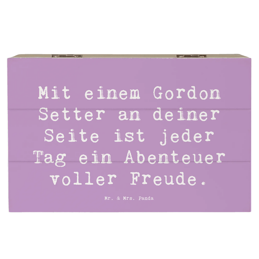 Entdecke die wunderbare Holzkiste mit dem Motiv des Gordon Setters von Mr. & Mrs. Panda! Diese bezaubernde Kiste ist mehr als nur ein Aufbewahrungsort; sie ist ein kleines Schmuckstück, das deine Erinnerungen in Form von Fotos, Briefen oder besonderen Schätzen bewahren kann. Gemacht aus robuster Premium Hartfaser und mit dem Spruch 'Mit einem Gordon Setter an deiner Seite ist jeder Tag ein Abenteuer voller Freude.' versehen, trägt sie eine liebevolle Botschaft in sich, die jeder Hundefreund schätzen wird.