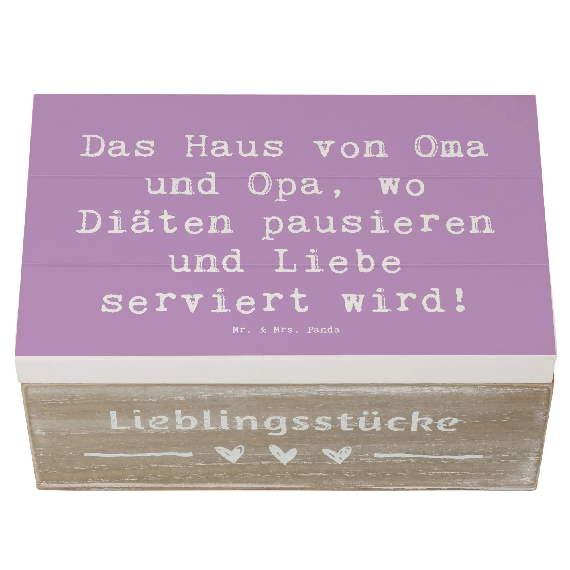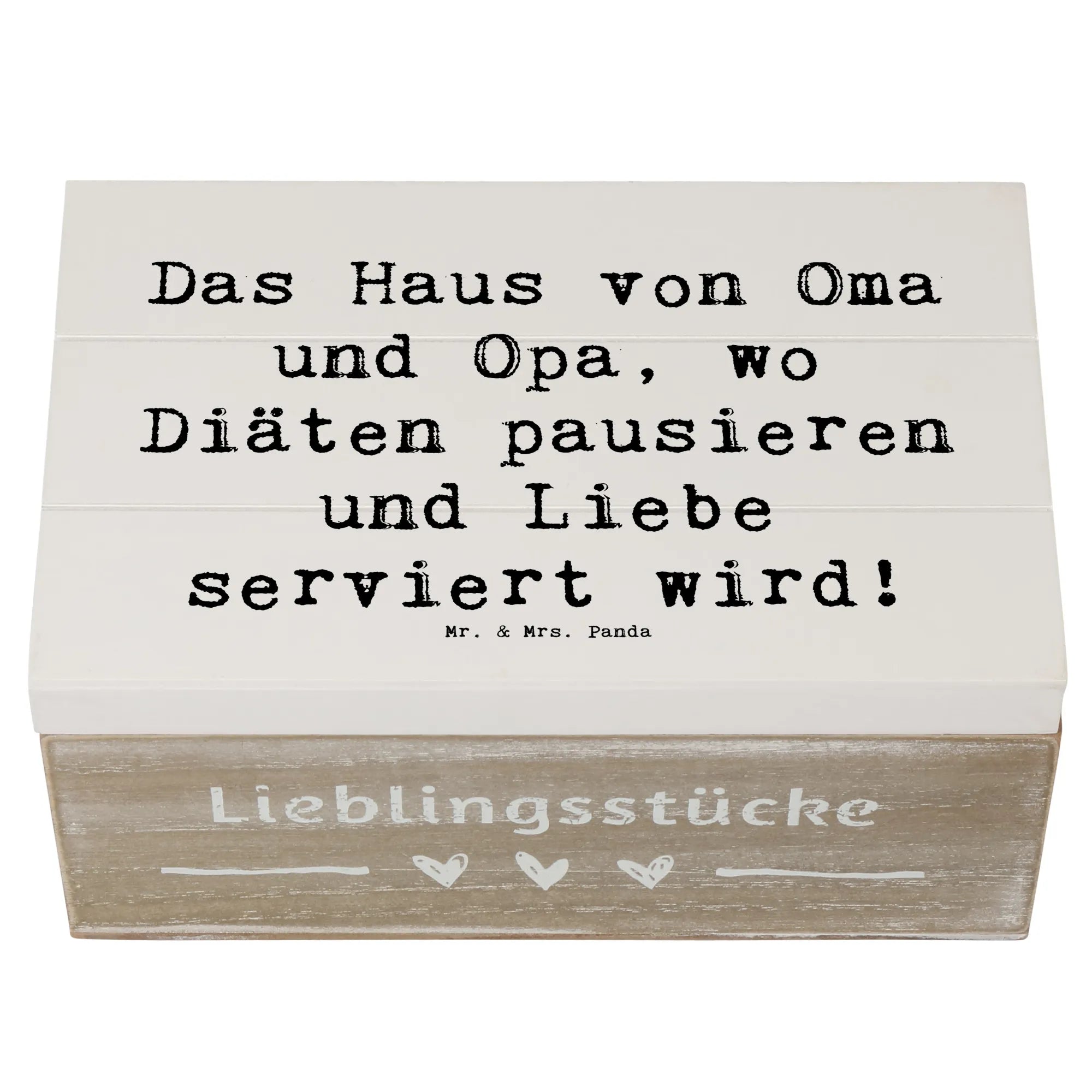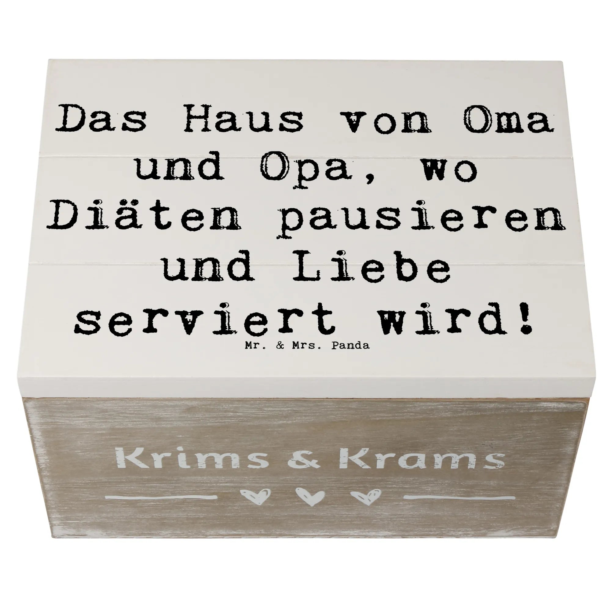 Diese wunderschöne Holzkiste von Mr. & Mrs. Panda ist das perfekte Geschenk für Großeltern und Familienmitglieder. Mit dem liebevollen Motiv, das den Spruch "Das Haus von Oma und Opa, wo Diäten pausieren und Liebe serviert wird!" trägt, wird jede Kiste zu einem besonderen Erinnerungsstück.