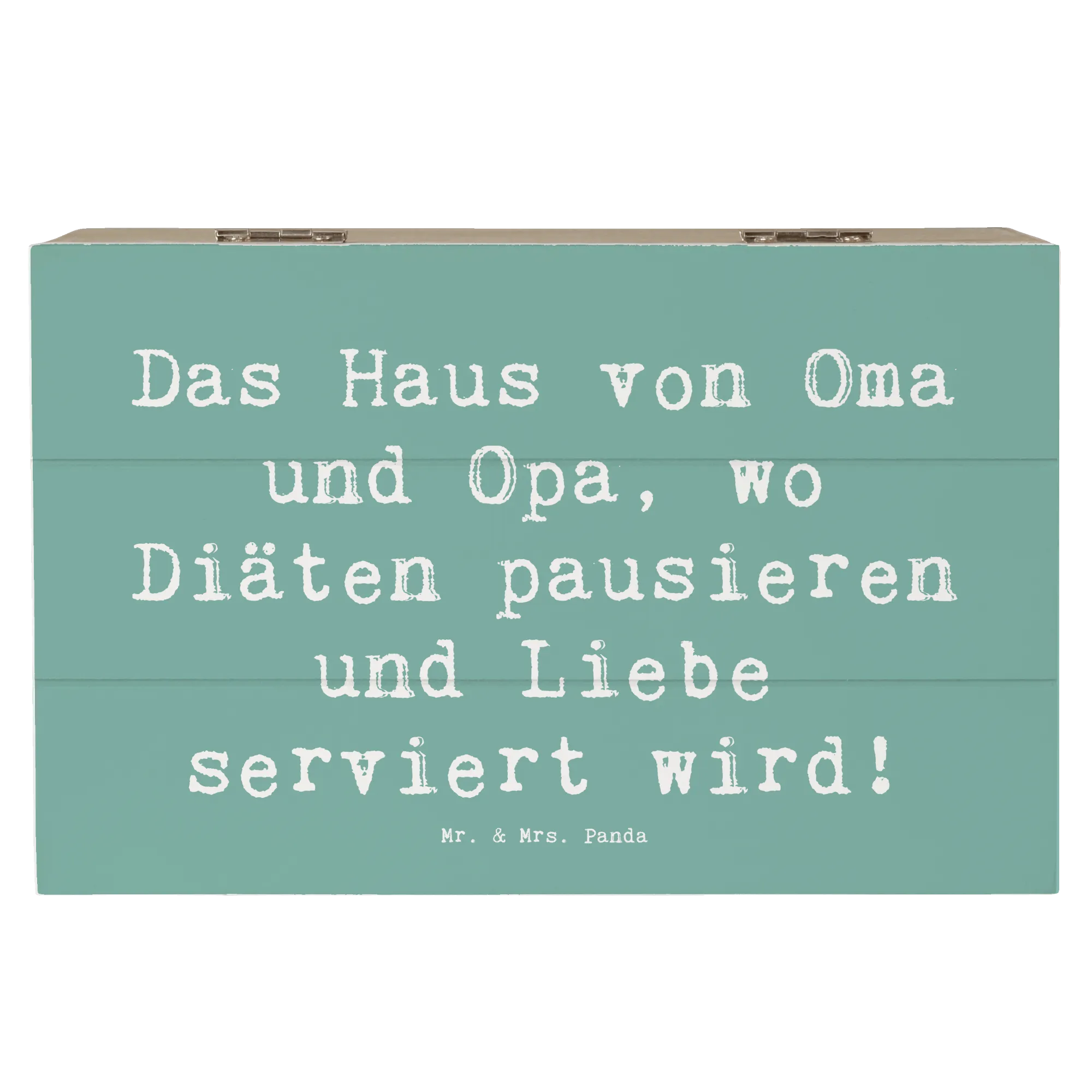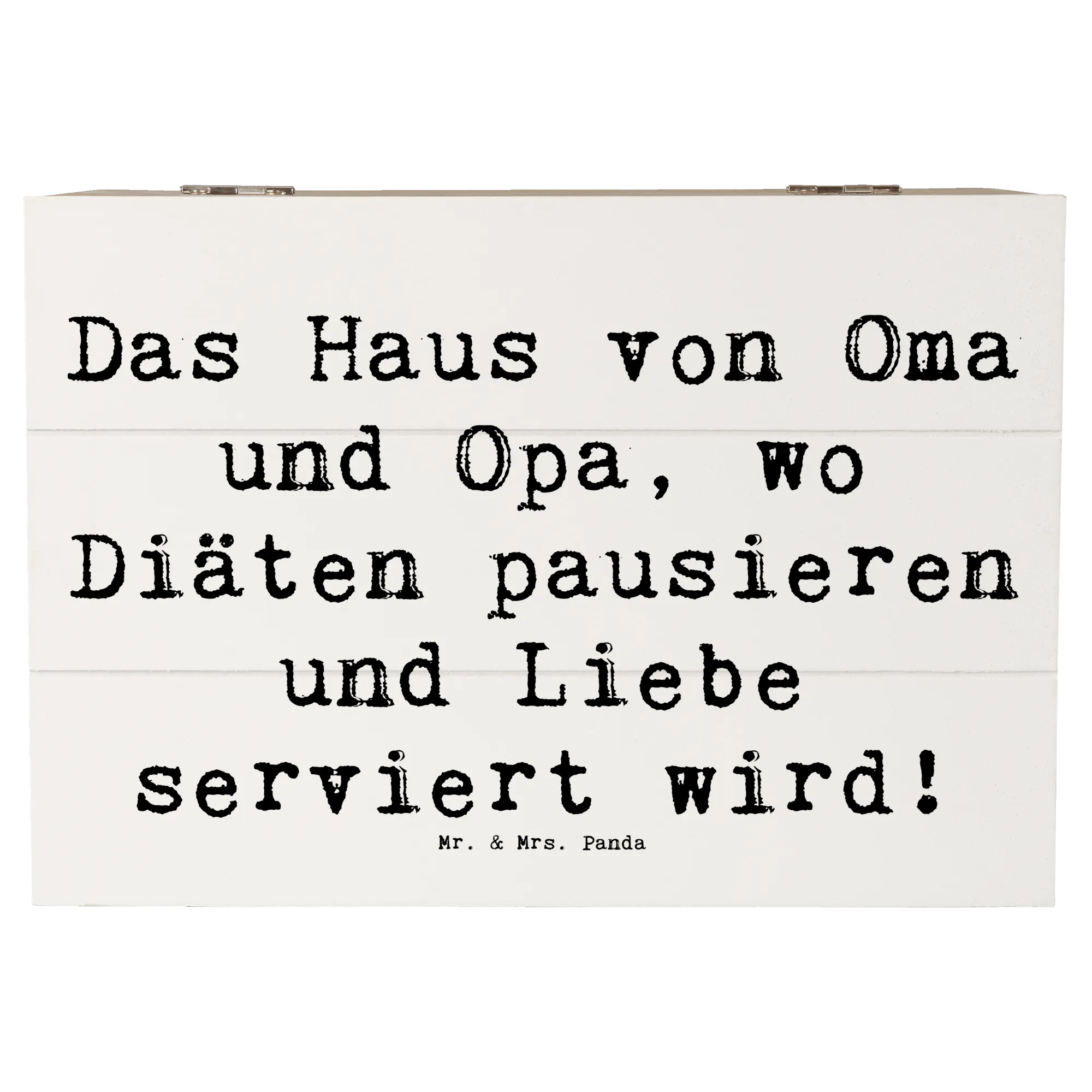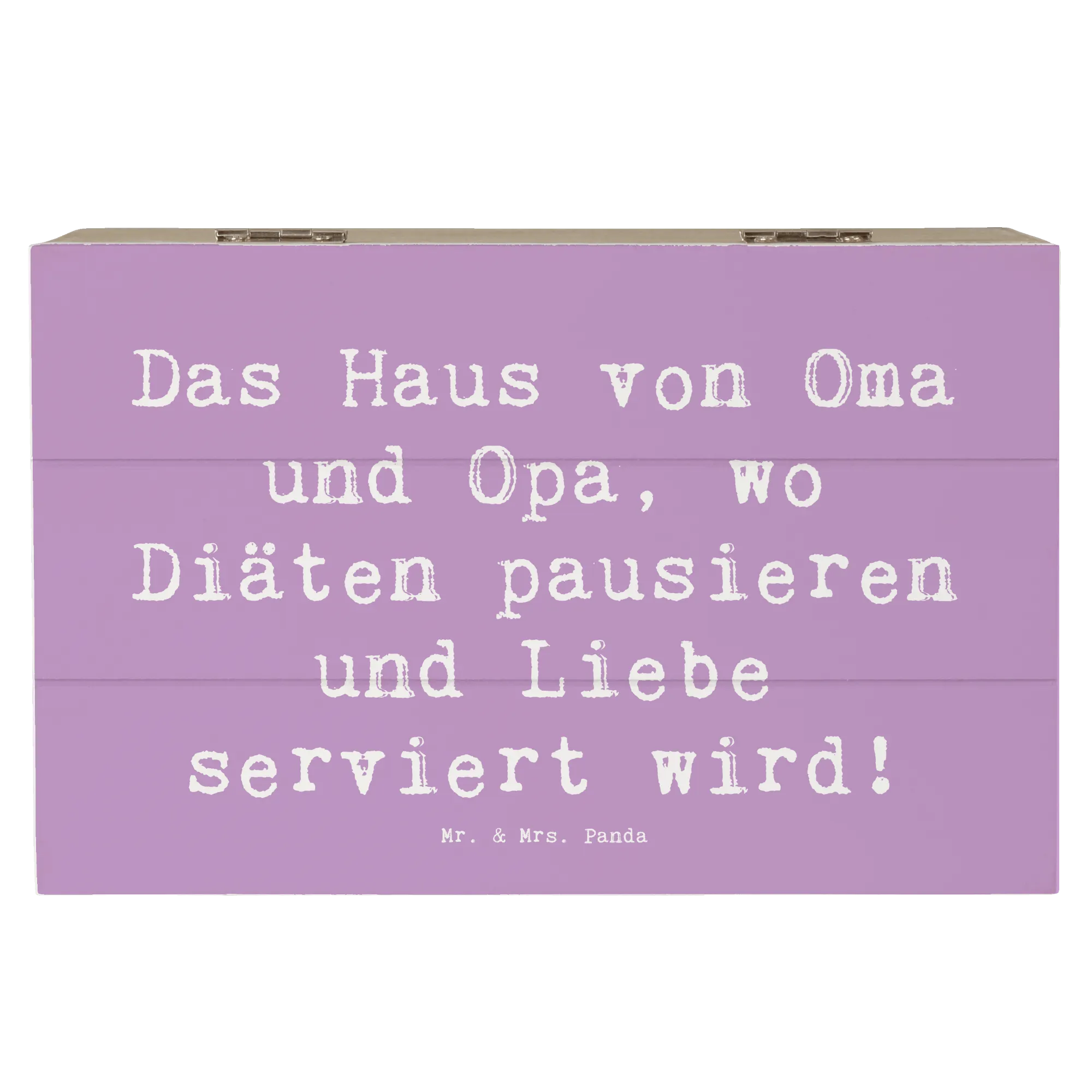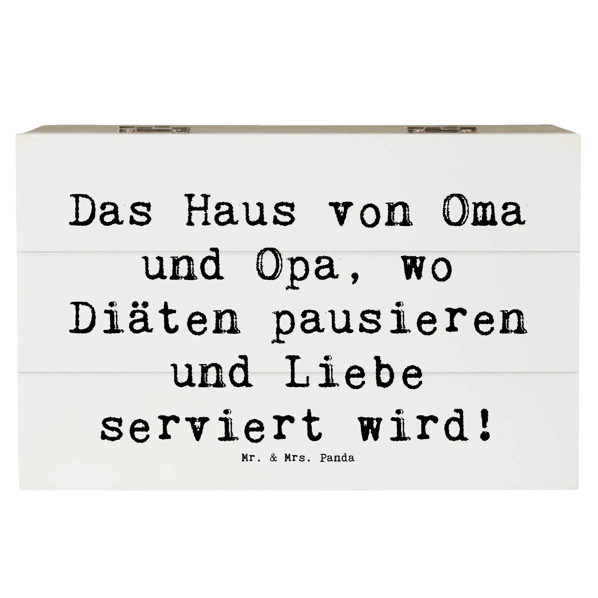Diese wunderschöne Holzkiste von Mr. & Mrs. Panda ist das perfekte Geschenk für Großeltern und Familienmitglieder. Mit dem liebevollen Motiv, das den Spruch "Das Haus von Oma und Opa, wo Diäten pausieren und Liebe serviert wird!" trägt, wird jede Kiste zu einem besonderen Erinnerungsstück.