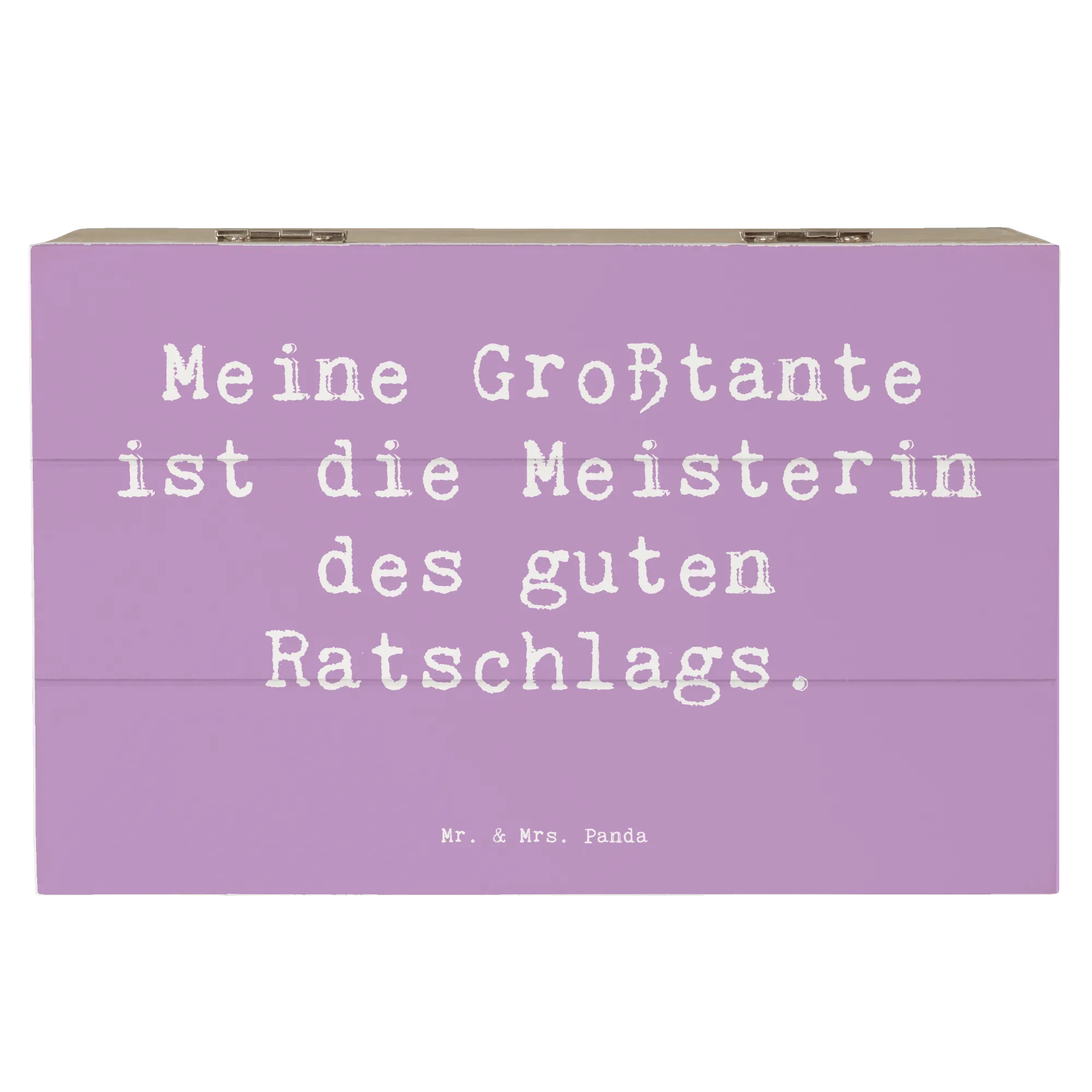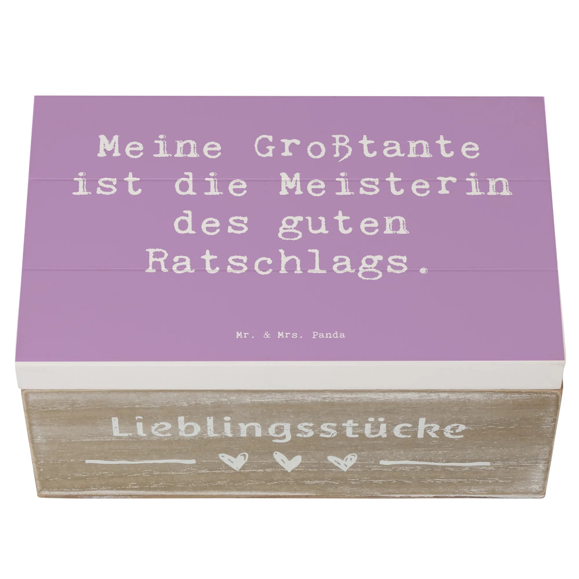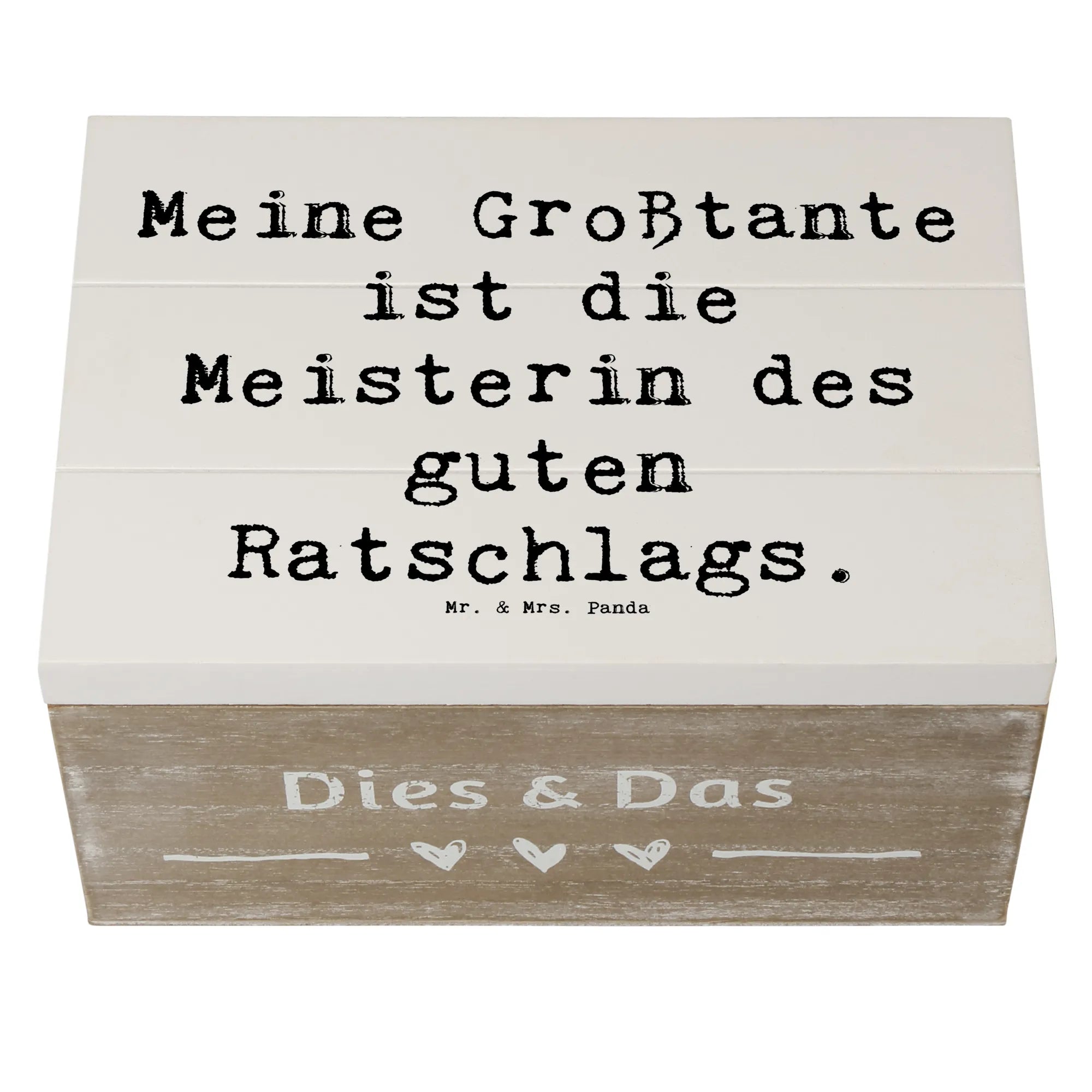 Die wunderschöne Holzkiste von Mr. & Mrs. Panda ist der perfekte Geschenkschatz für deine Großtante! Mit einem liebevollen Design und dem Spruch "Meine Großtante ist die Meisterin des guten Ratschlags" bietet diese Erinnerungskiste nicht nur Platz für all deine wertvollen Schätze, sondern auch für unvergessliche Momente, die du mit ihr teilst.