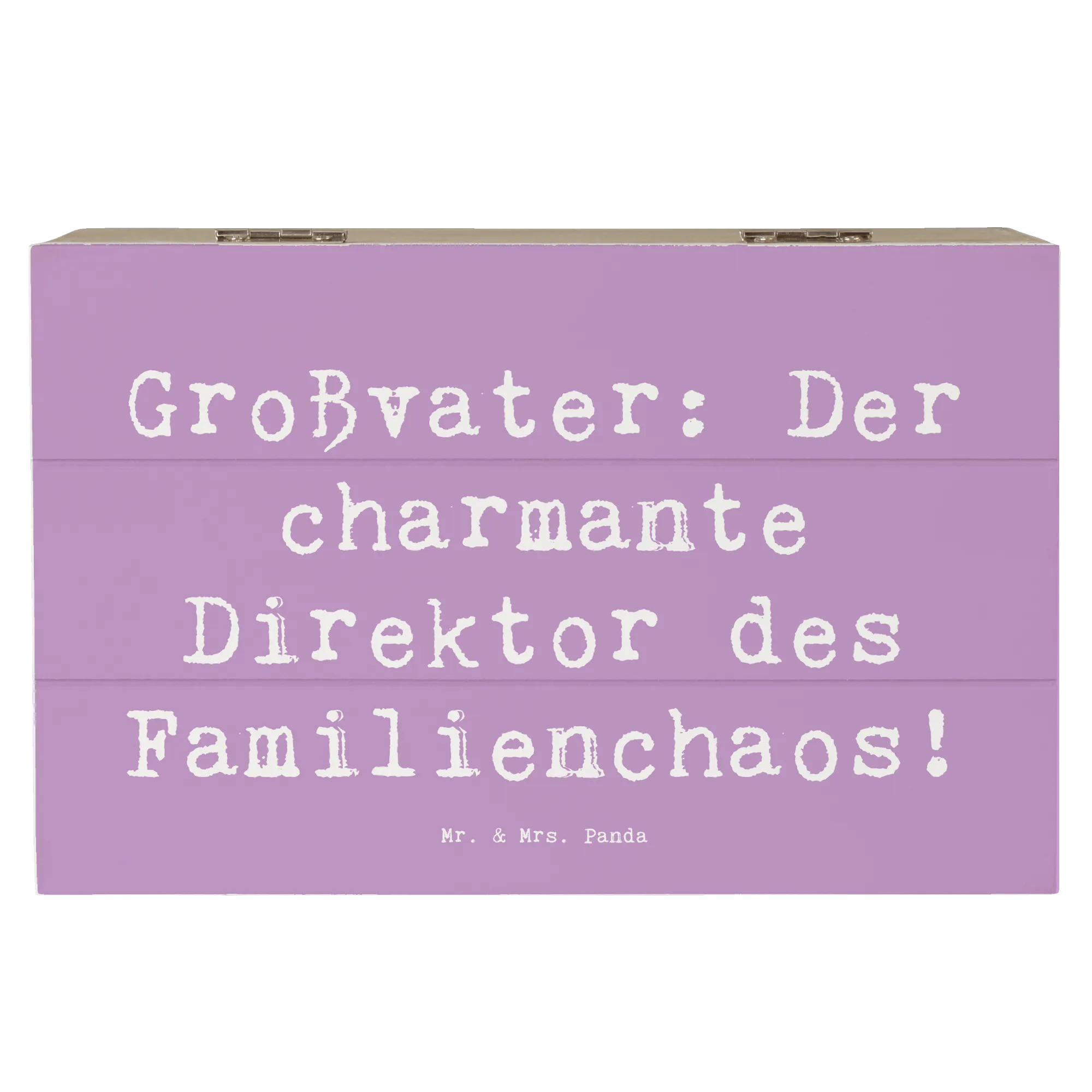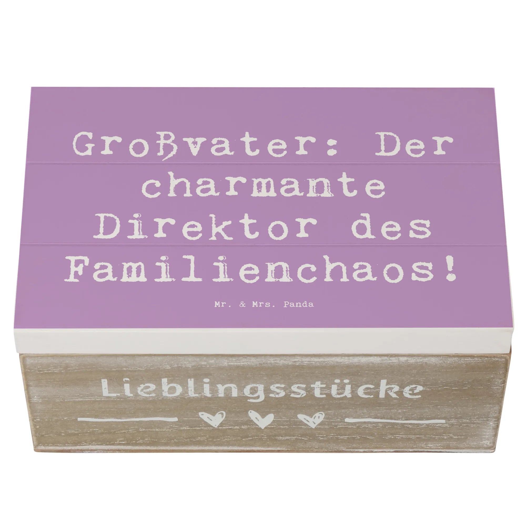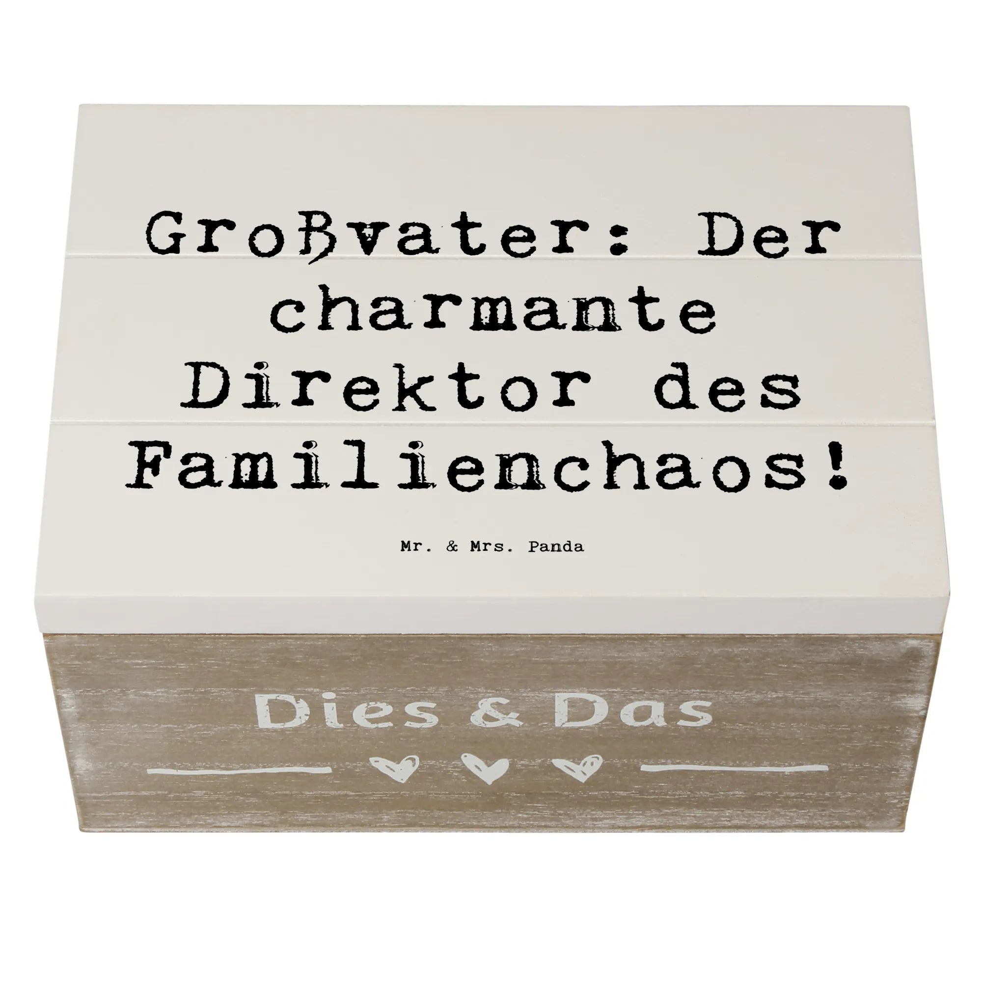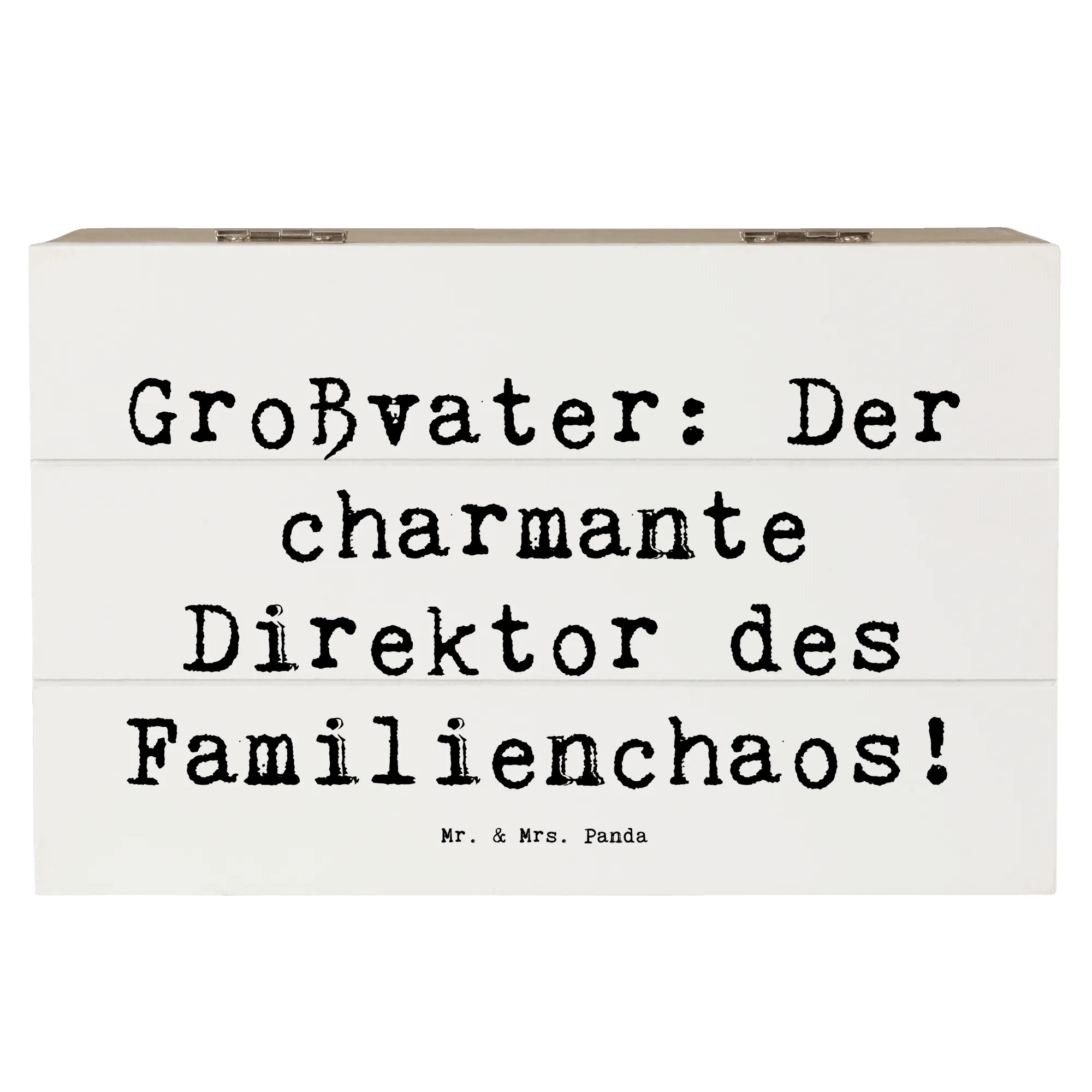 Entdecke die wunderschöne Holzkiste von Mr. & Mrs. Panda, die das perfekte Geschenk für Großväter ist! Diese Schatzkiste, ausgestattet mit dem charmanten Spruch 'Großvater: Der charmante Direktor des Familienchaos!', ist nicht nur ein aufmerksames Präsent, sondern auch ein liebevoller Aufbewahrungsort für all die wertvollen Erinnerungen, die Großeltern mit ihren Enkeln teilen.