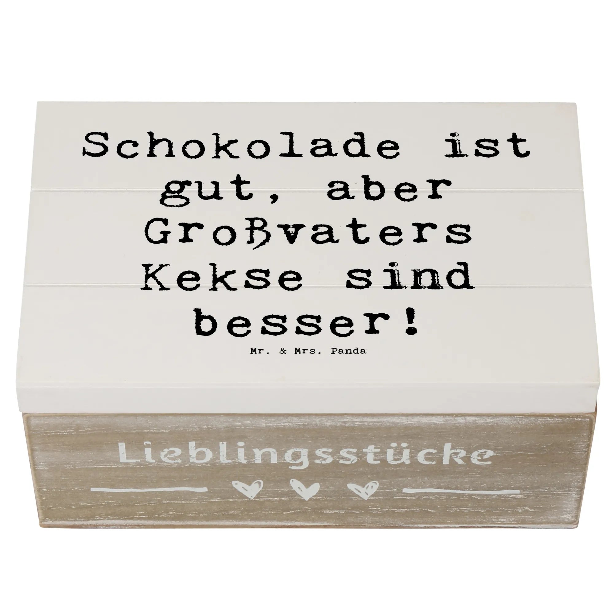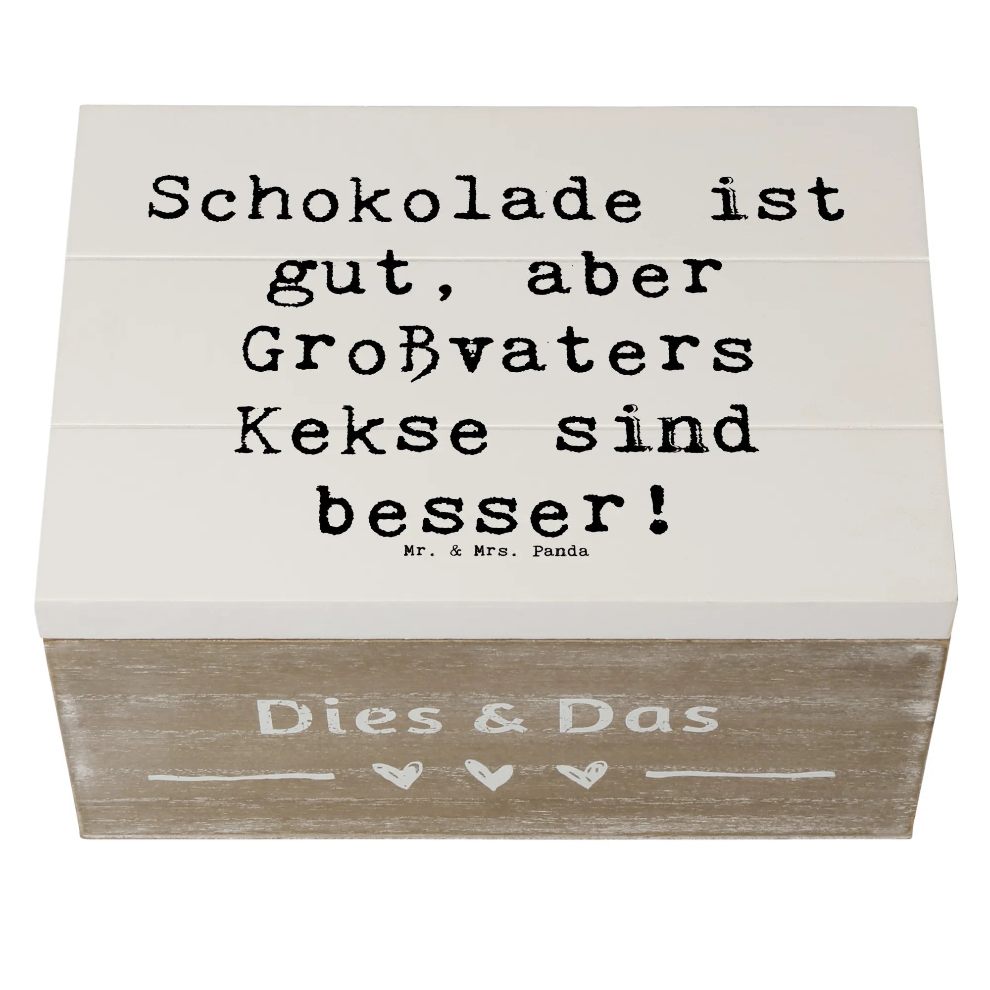 Die wunderschöne Holzkiste von Mr. & Mrs. Panda ist das perfekte Geschenk für deinen Großvater! Mit dem liebevollen Spruch "Schokolade ist gut, aber Großvaters Kekse sind besser!" bringt sie ein Lächeln auf sein Gesicht und erinnert ihn an die schönen Momente der gemeinsamen Zeit.