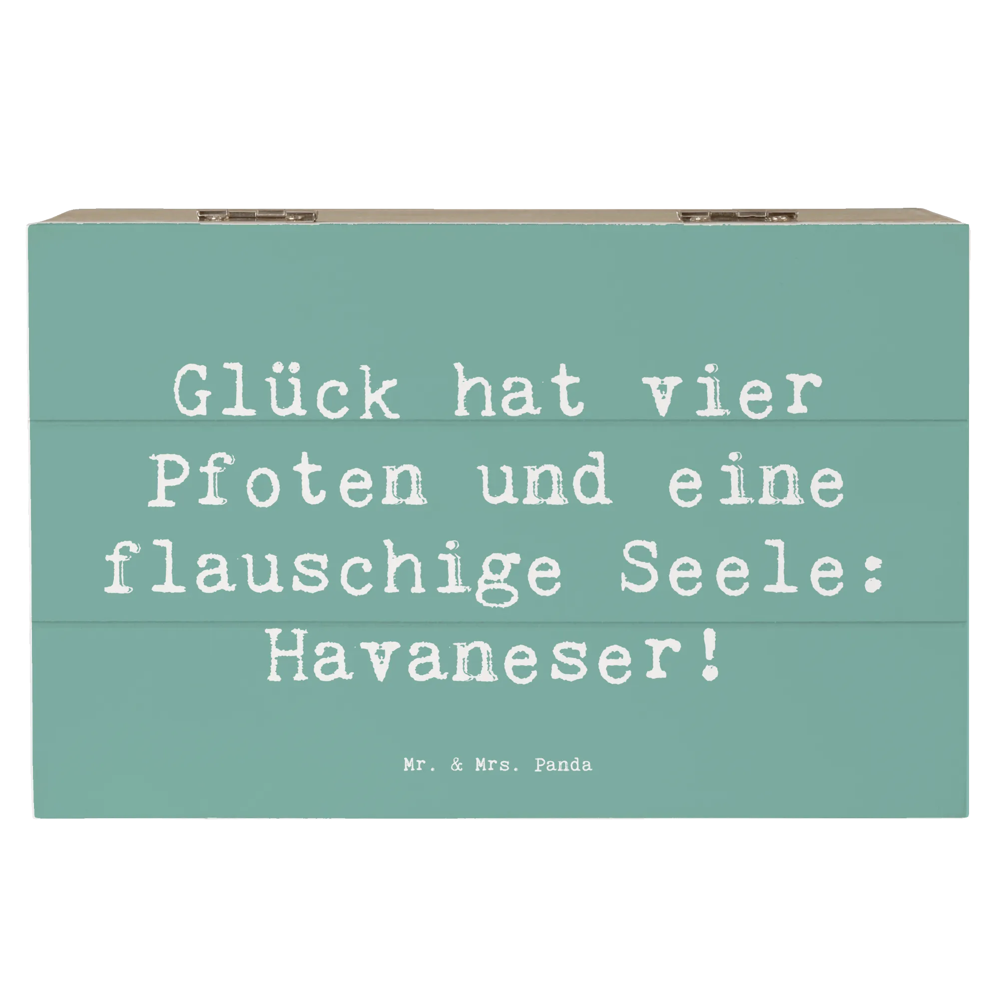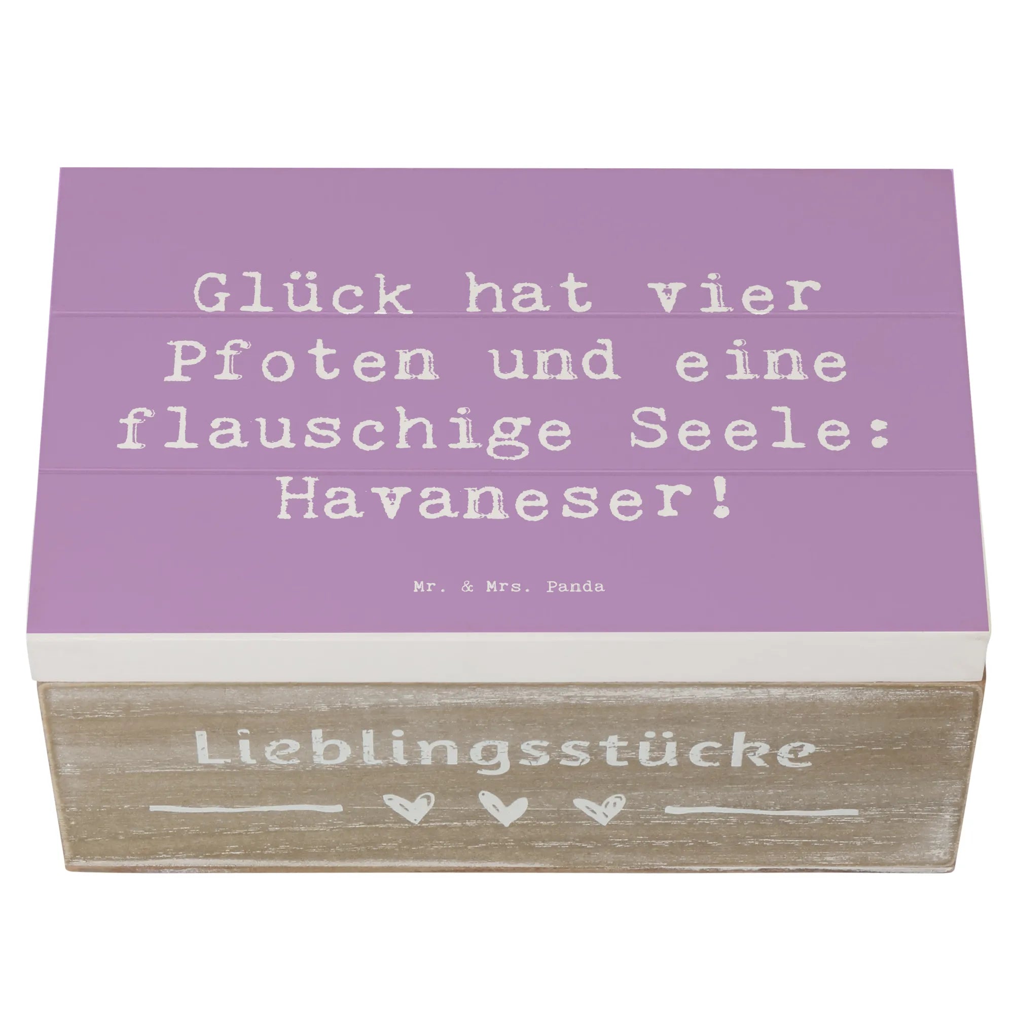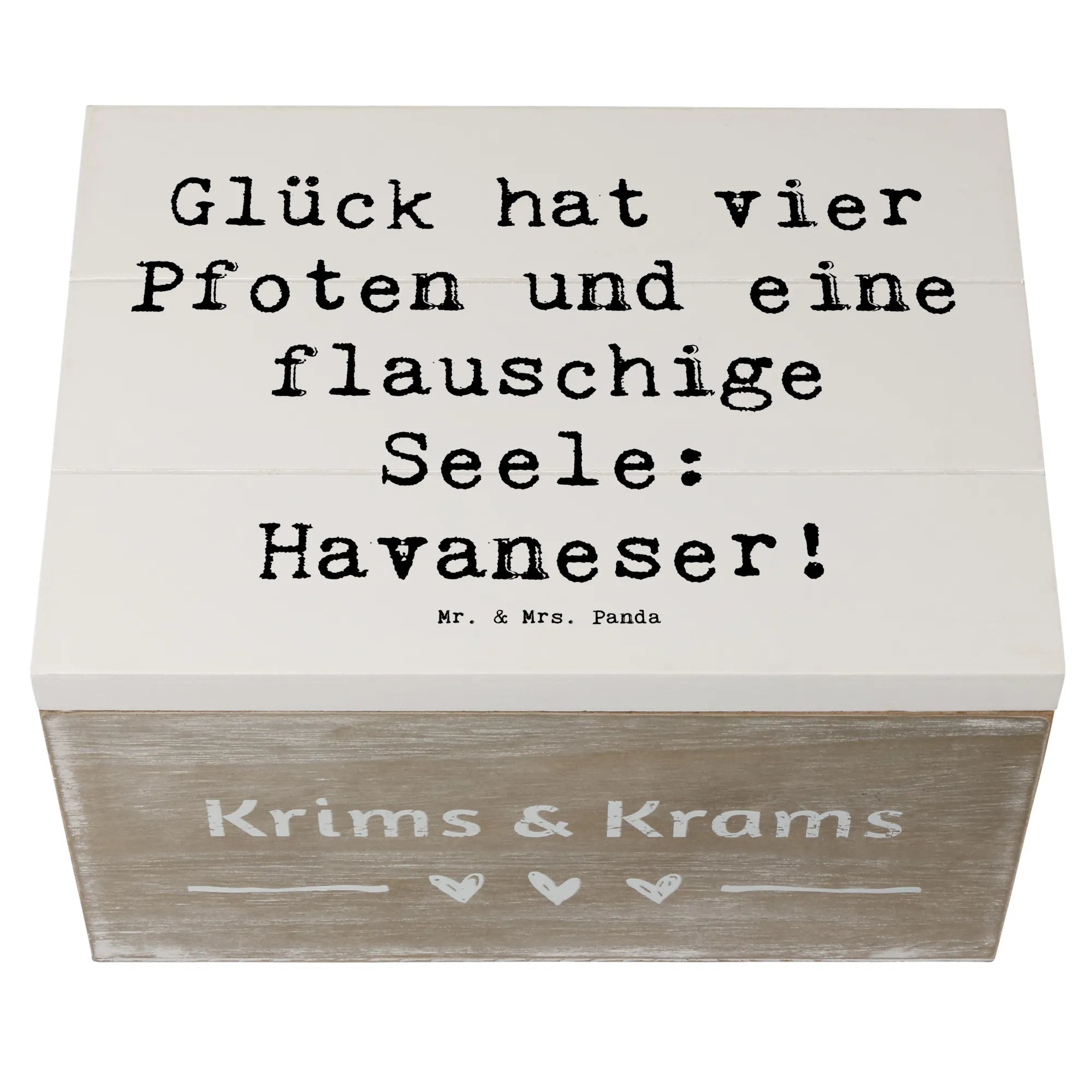 Entdecke die bezaubernde Holzkiste von Mr. & Mrs. Panda, die perfekt für alle Hundefans und besonders für Liebhaber der Hunderasse Havaneser ist! Diese liebevoll gestaltete Kiste mit dem Motto "Glück hat vier Pfoten und eine flauschige Seele: Havaneser!" bietet nicht nur Platz für die schönsten Erinnerungen, sondern ist auch eine herrlich dekorative Aufbewahrungslösung für alle Schätze, die Du sammeln möchtest.