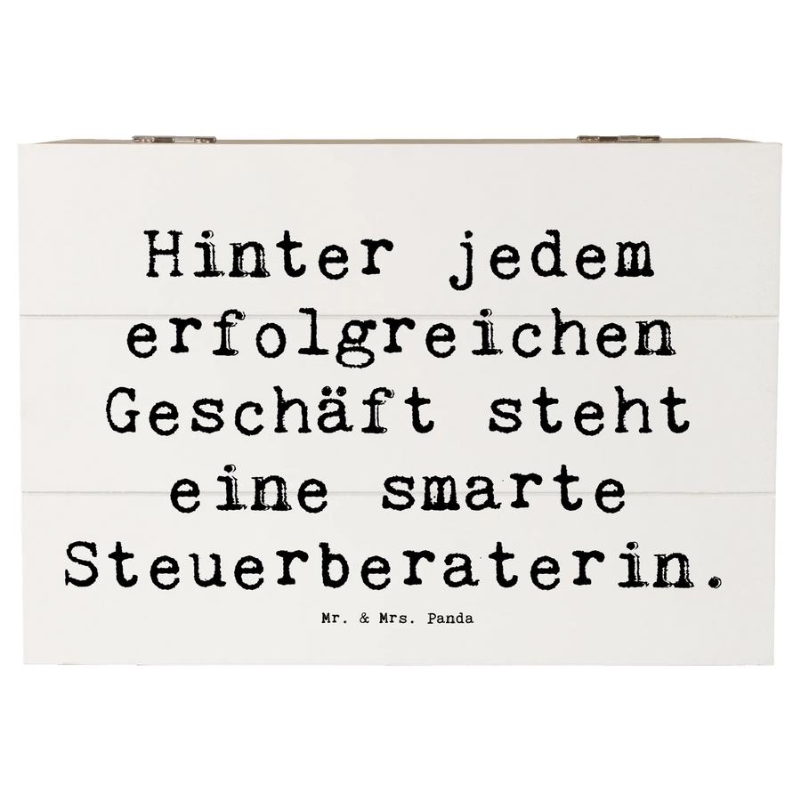 Entdecke die wunderschöne Holzkiste "Steuerberaterin" von Mr. & Mrs. Panda! Diese einzigartige Kiste ist nicht nur ein perfekter Aufbewahrungsort für all Deine kostbaren Erinnerungen, sondern auch ein bezauberndes Geschenk für all jene, die der Welt der Zahlen und Steuern den Rücken kehren. Mit dem liebevollen Slogan "Hinter jedem erfolgreichen Geschäft steht eine smarte Steuerberaterin" eignet sich diese Kiste hervorragend, um besondere Anlässe wie Abschiedsfeiern oder Jubiläen stilvoll zu feiern.
