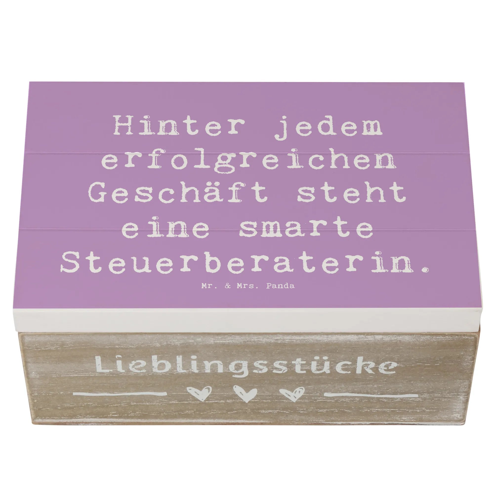 Entdecke die wundervolle Holzkiste 'Steuerberaterin' von Mr. & Mrs. Panda! Diese einzigartige Kiste ist nicht nur ein echter Blickfang, sondern auch der perfekte Aufbewahrungsort für all Deine wertvollen Schätze. Mit einem liebevollen Spruch, der besagt: 'Hinter jedem erfolgreichen Geschäft steht eine smarte Steuerberaterin', bringt sie ein Lächeln in jeden Raum.
