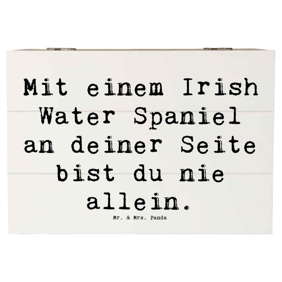 Entdecke die wundervoll gestaltete Holzkiste mit dem Motiv des Irish Water Spaniels! Diese bezaubernde Kiste von Mr. & Mrs. Panda ist nicht nur praktisch, sondern auch ein echter Hingucker. Mit einem Spruch, der Herzen berührt: 'Mit einem Irish Water Spaniel an deiner Seite bist du nie allein.' Perfekt für alle Hundefans, die ihren geliebten Vierbeiner immer um sich haben möchten.