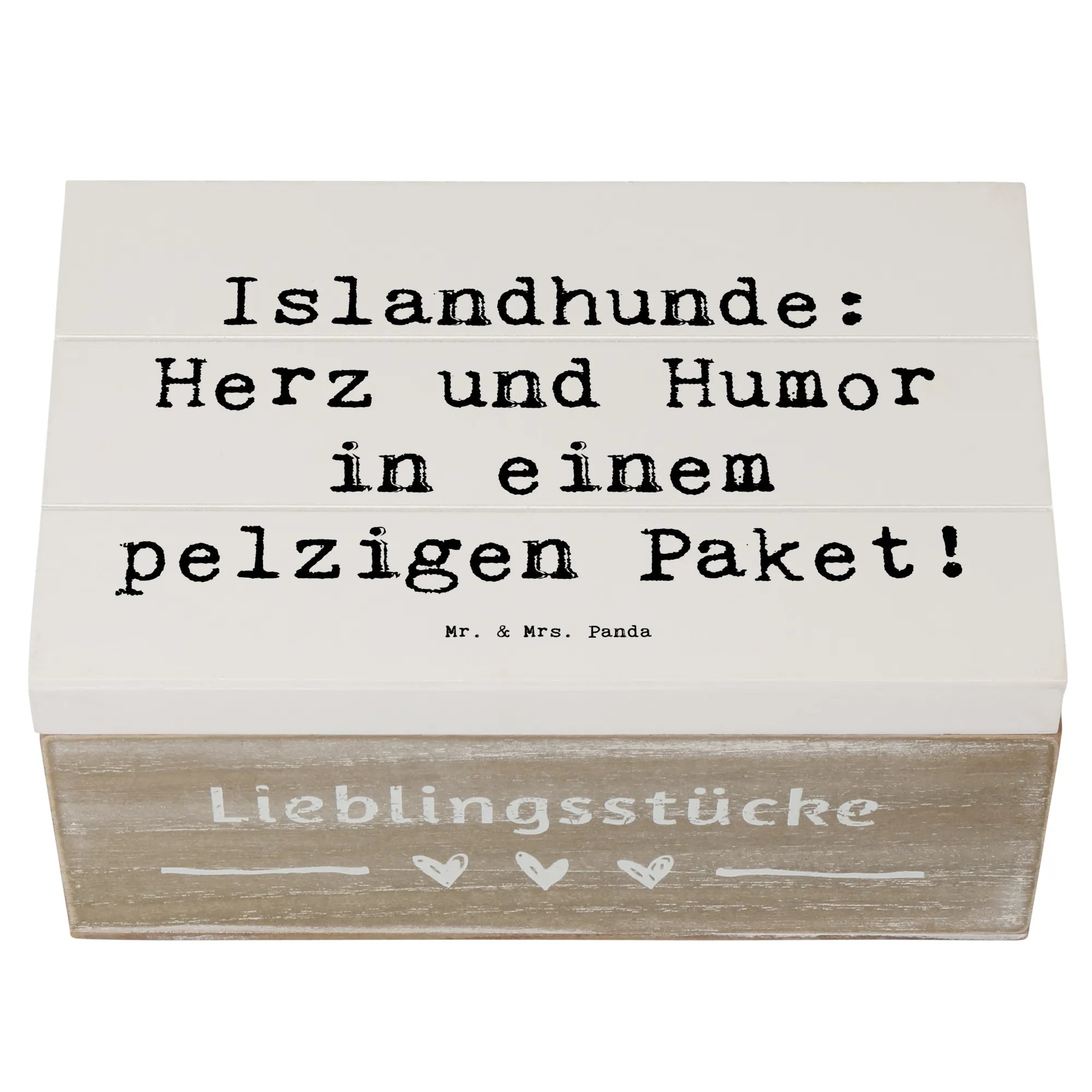 Die wunderschöne Holzkiste von Mr. & Mrs. Panda ist der perfekte Aufbewahrungsort für all deine kostbaren Erinnerungen und Schätze! Diese bezaubernde Schatzkiste im Design der einzigartigen Islandhunde ist mehr als nur eine Kiste, sie ist ein Stück Liebe und Freude, die du mit deinen Liebsten teilen kannst. Mit einem charmanten Spruch "Islandhunde: Herz und Humor in einem pelzigen Paket!" bezaubert sie nicht nur Hundefans, sondern auch jeden, der etwas Besonderes zu verschenken hat.