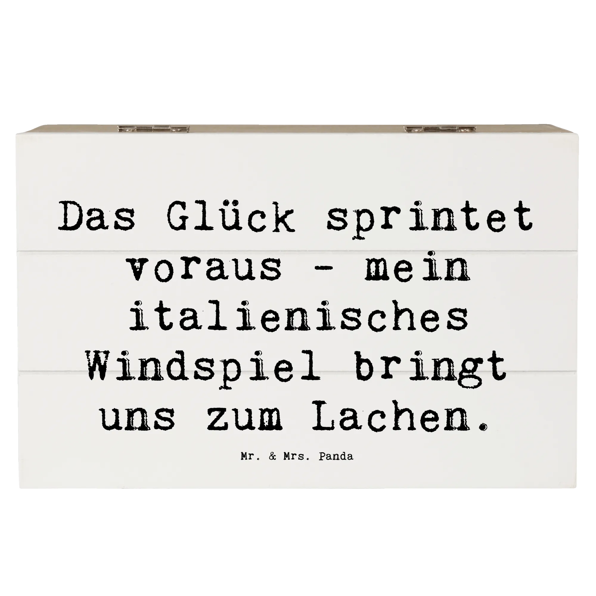 Holzkiste Spruch Italienisches Windspiel Glück - 25 x 18 cm - Weiß