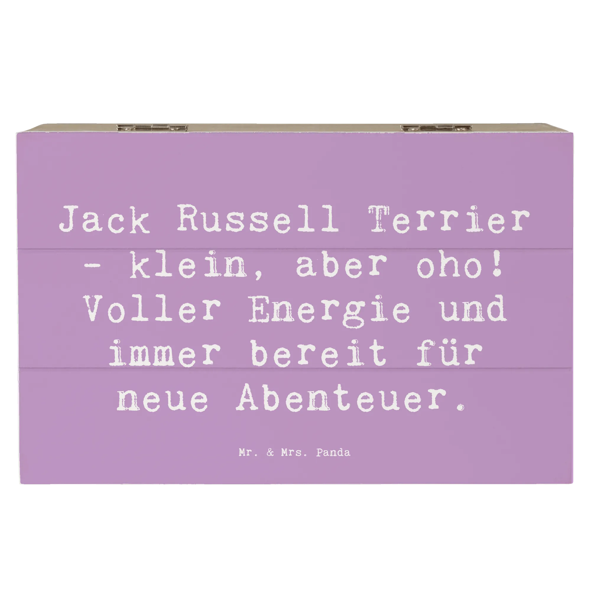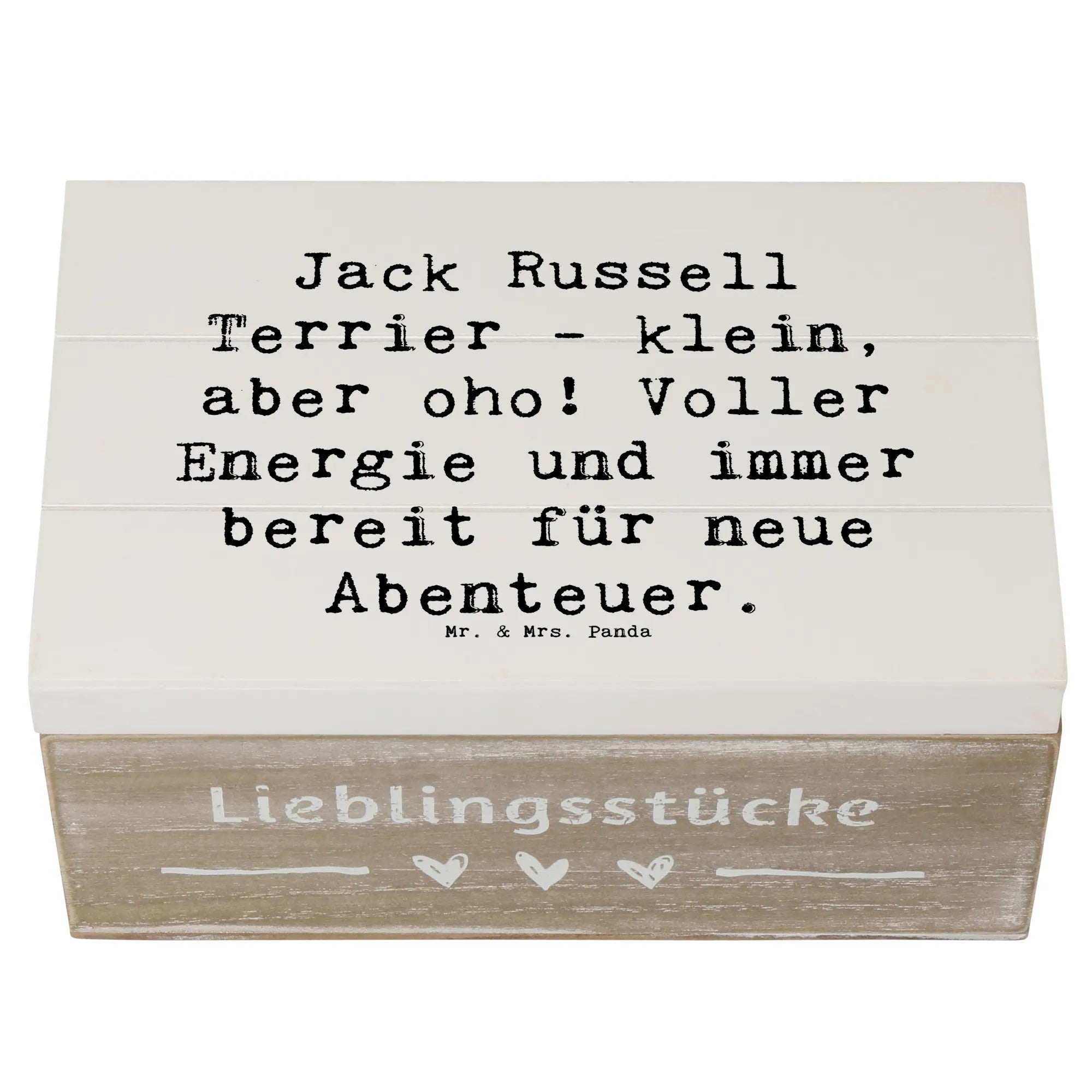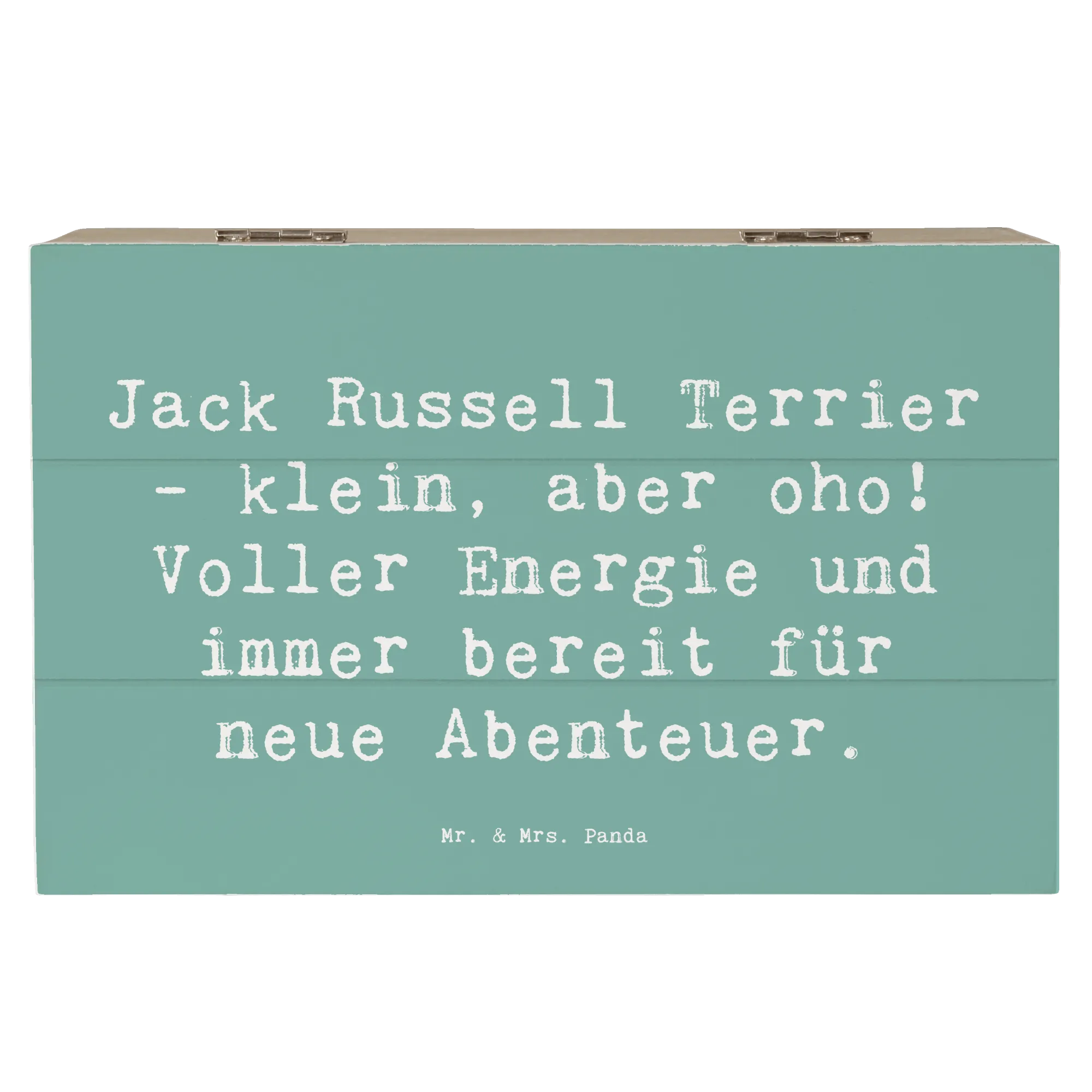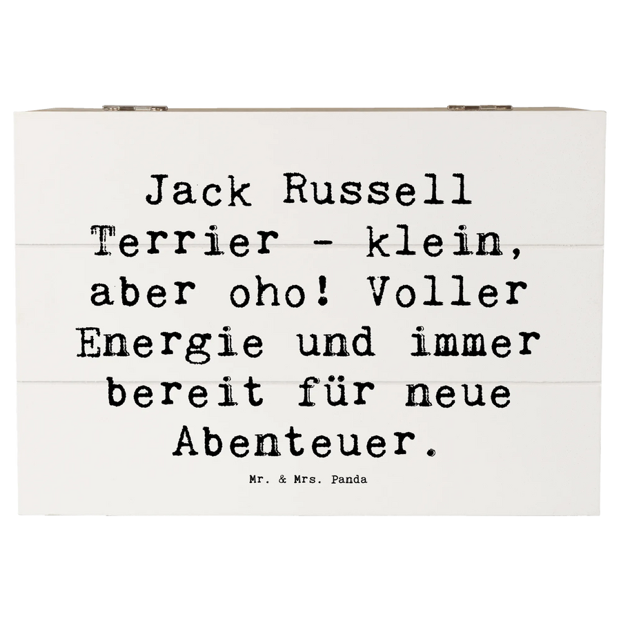 Der Spruch "Jack Russell Terrier - klein, aber oho! Voller Energie und immer bereit für neue Abenteuer." ziert die Kiste und zaubert Dir immer ein Lächeln ins Gesicht.