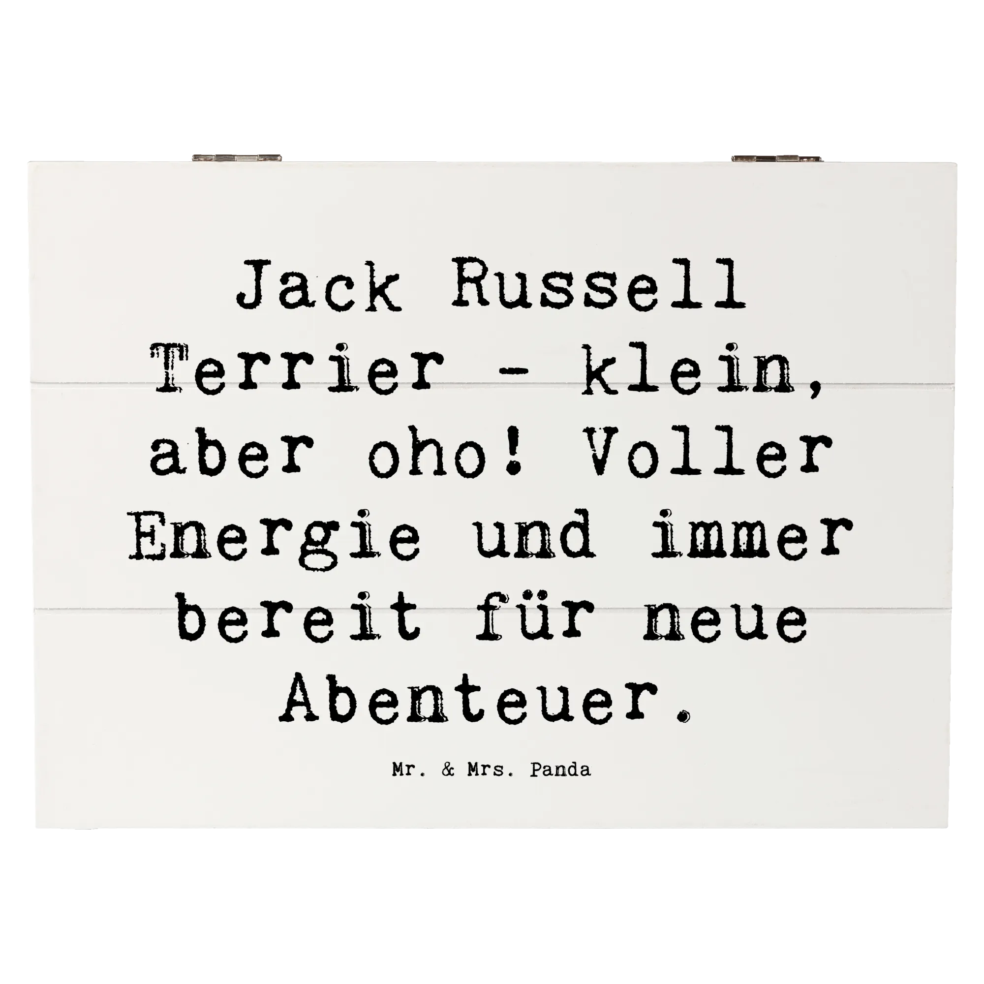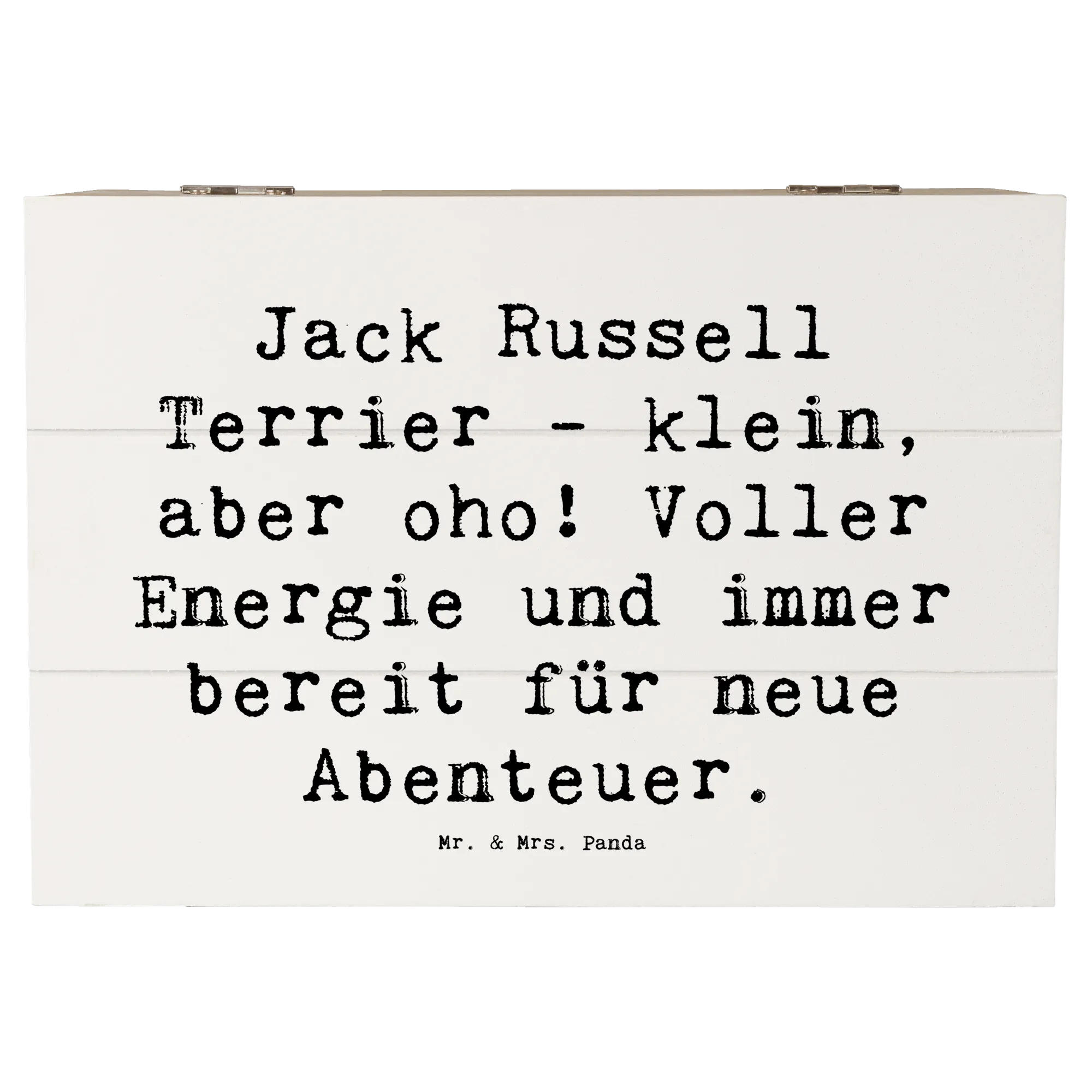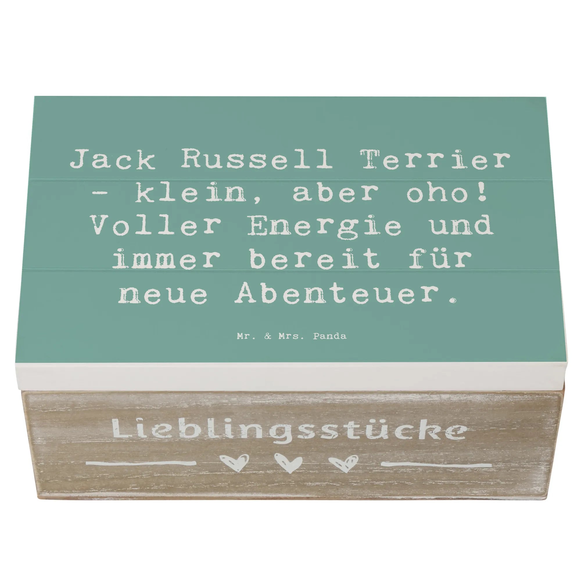 Der Spruch "Jack Russell Terrier - klein, aber oho! Voller Energie und immer bereit für neue Abenteuer." ziert die Kiste und zaubert Dir immer ein Lächeln ins Gesicht.