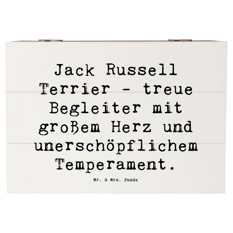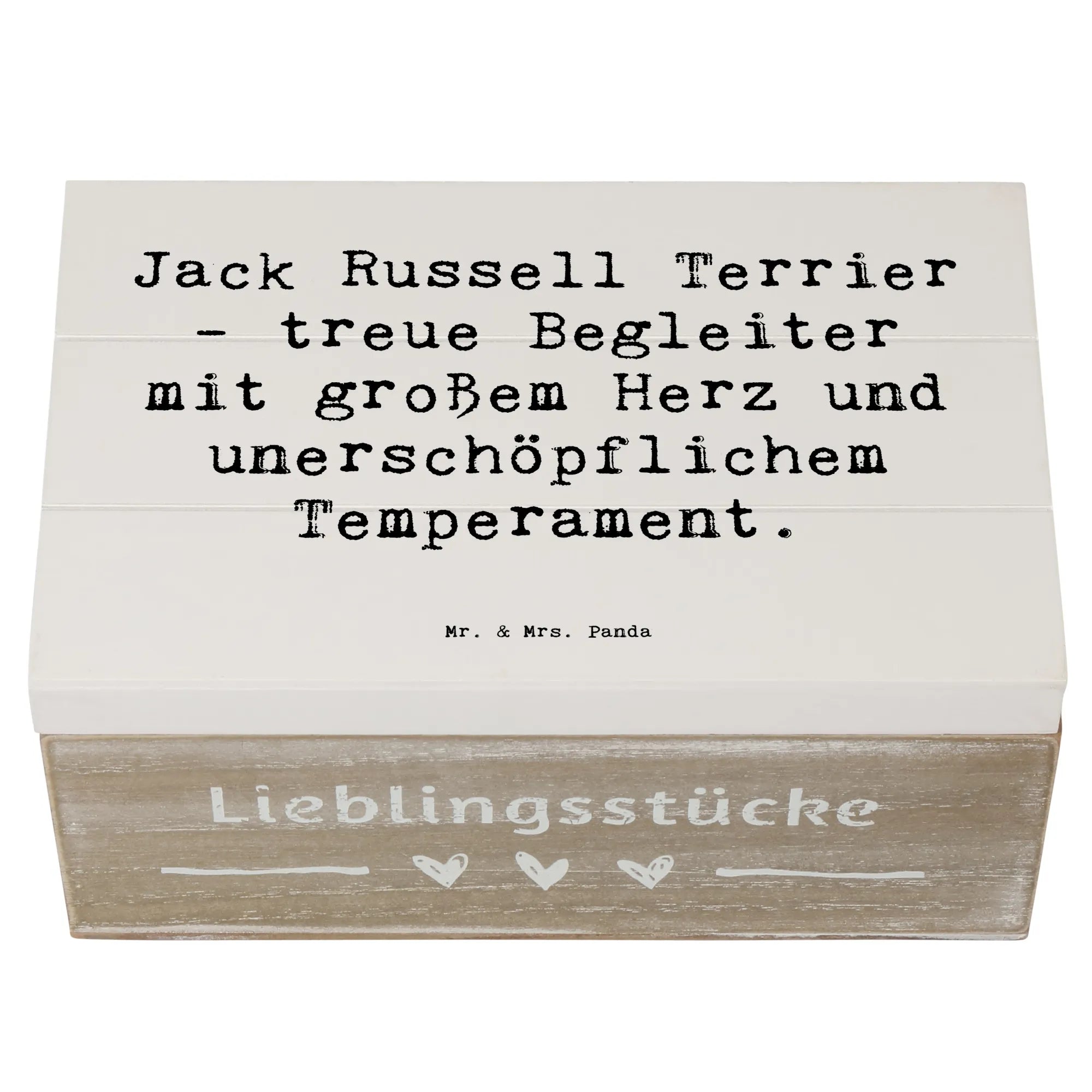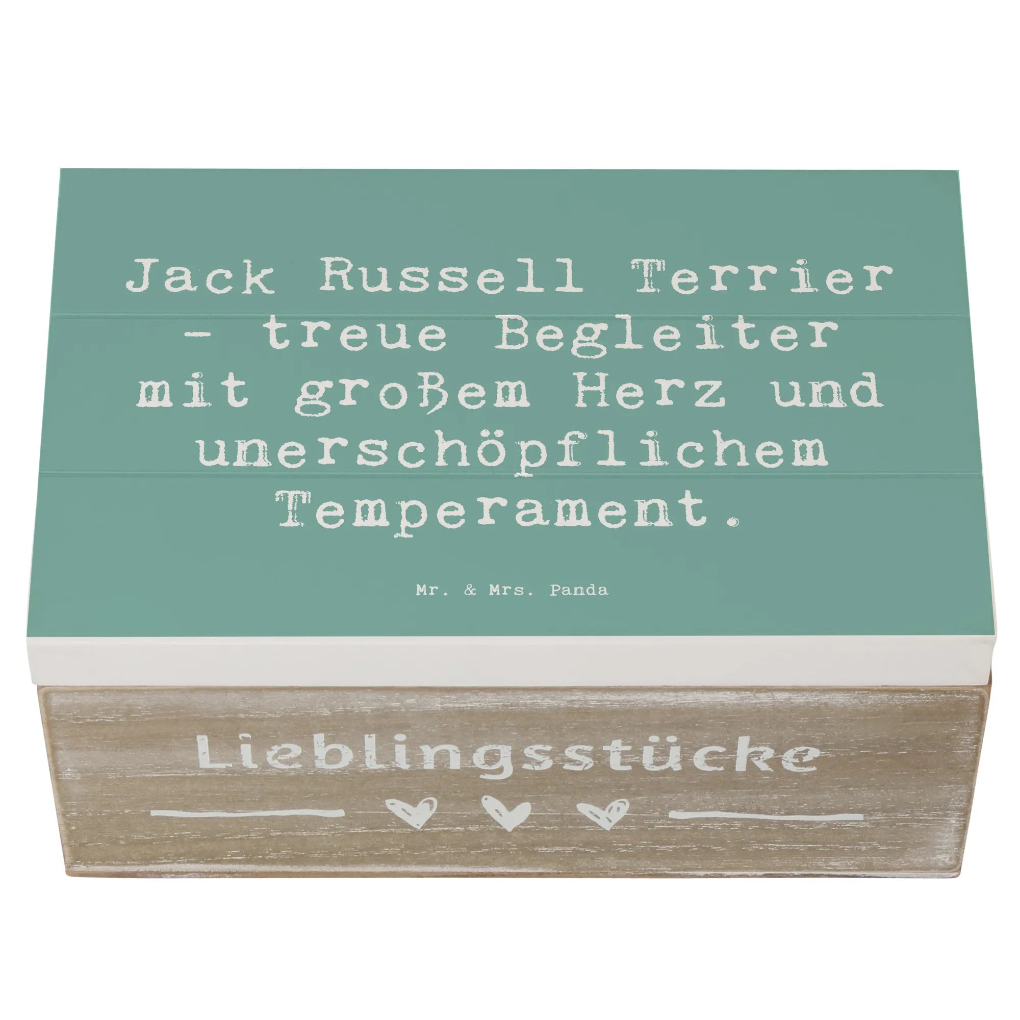 Der Spruch "Jack Russell Terrier - treue Begleiter mit großem Herz und unerschöpflichem Temperament" verleiht der Kiste eine persönliche Note und sorgt dafür, dass jeder Hundefreund mit einem Lächeln an die gemeinsamen Erlebnisse mit seinem treuen Begleiter denkt.
