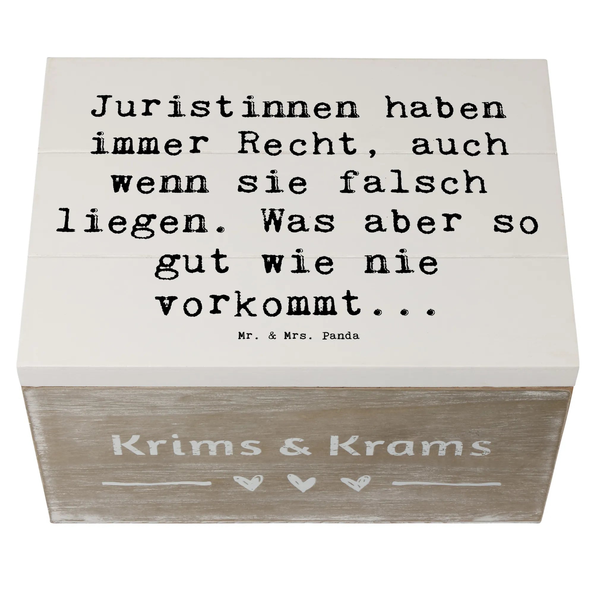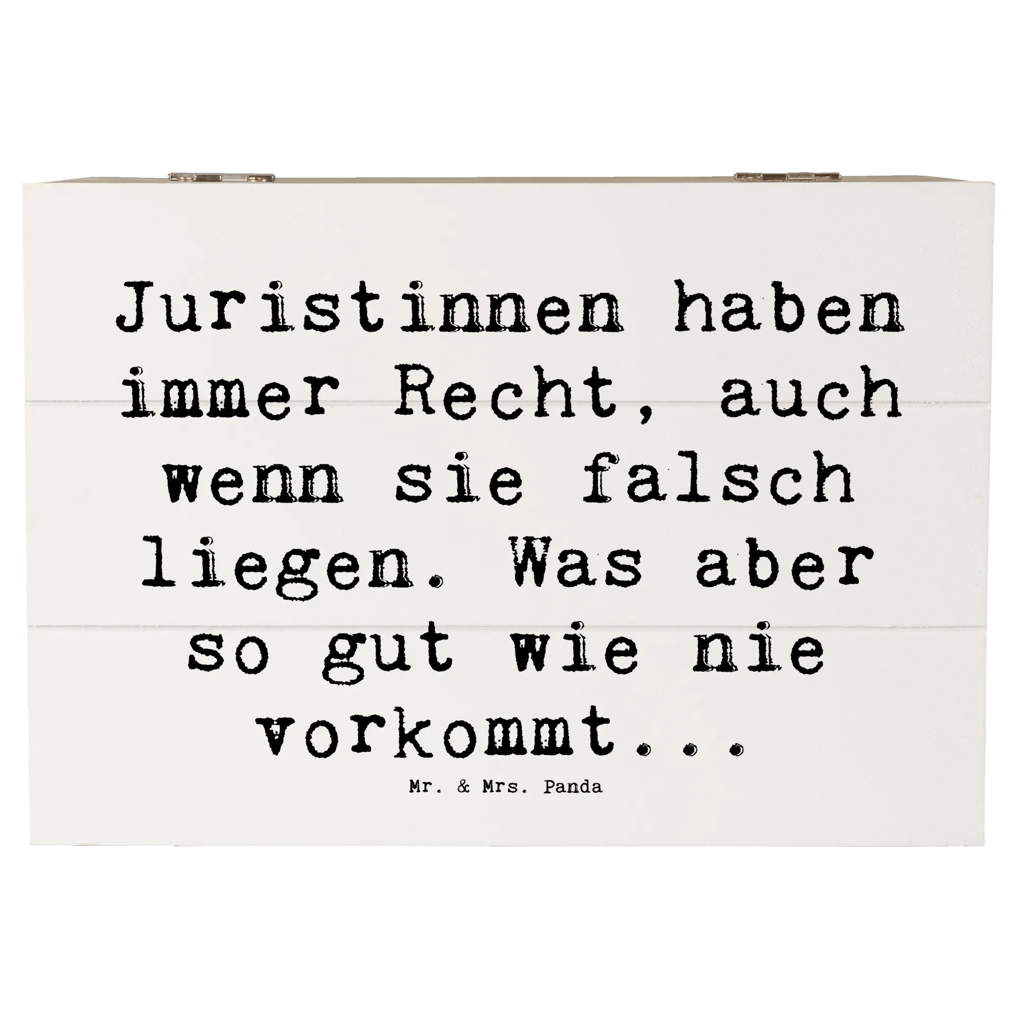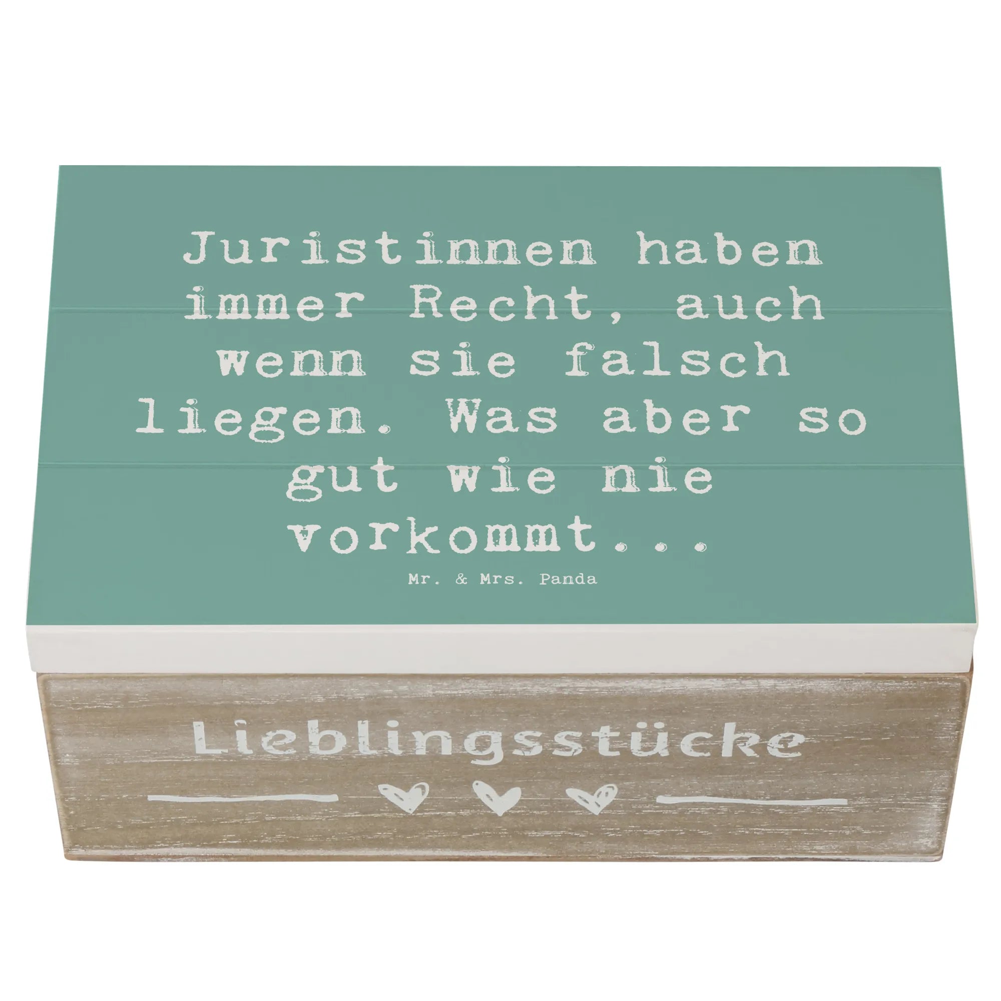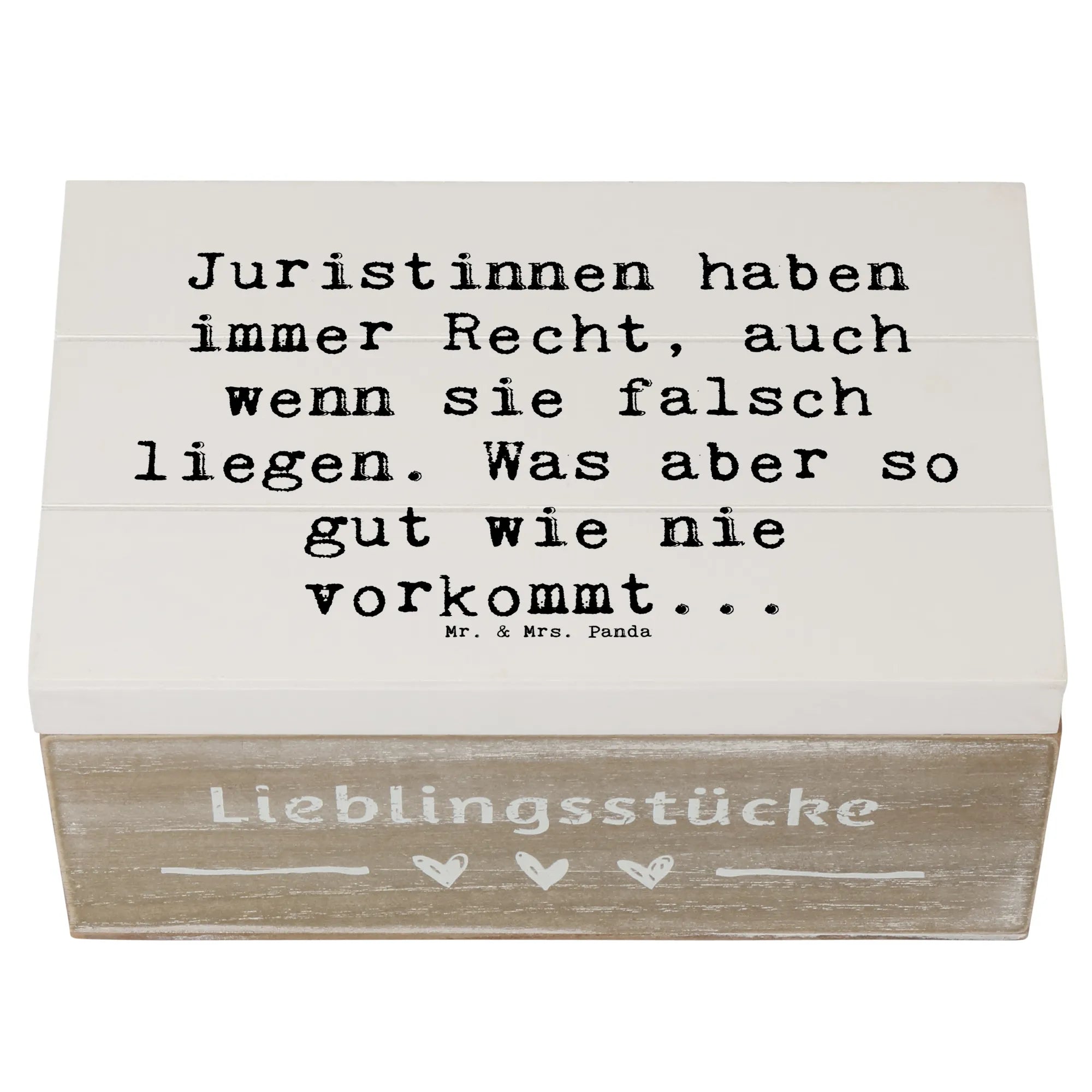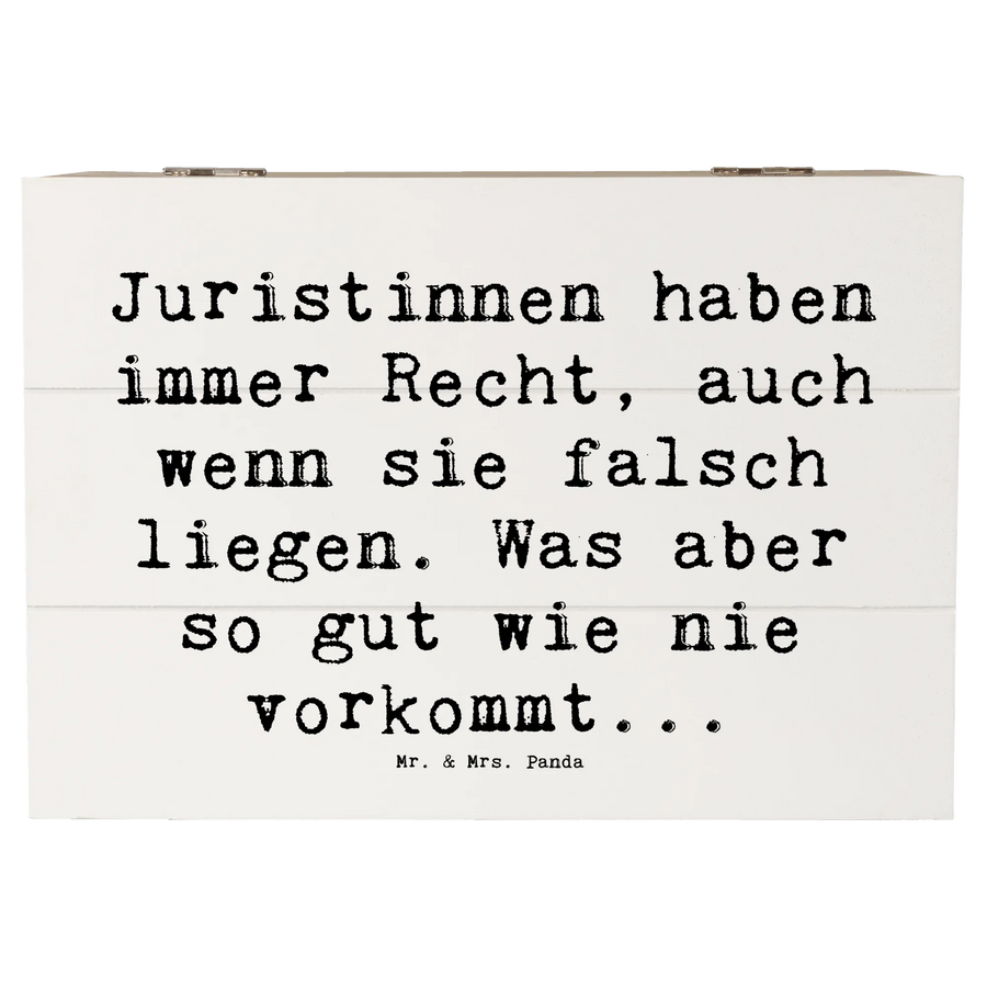 Entdecke die wunderschöne Holzkiste von Mr. & Mrs. Panda, perfekt für alle Juristinnen! Mit dem zauberhaften Spruch „Juristinnen haben immer Recht, auch wenn sie falsch liegen. Was aber so gut wie nie vorkommt...“ wird diese Kiste zum idealen Aufbewahrungsort für all deine wertvollen Erinnerungen.