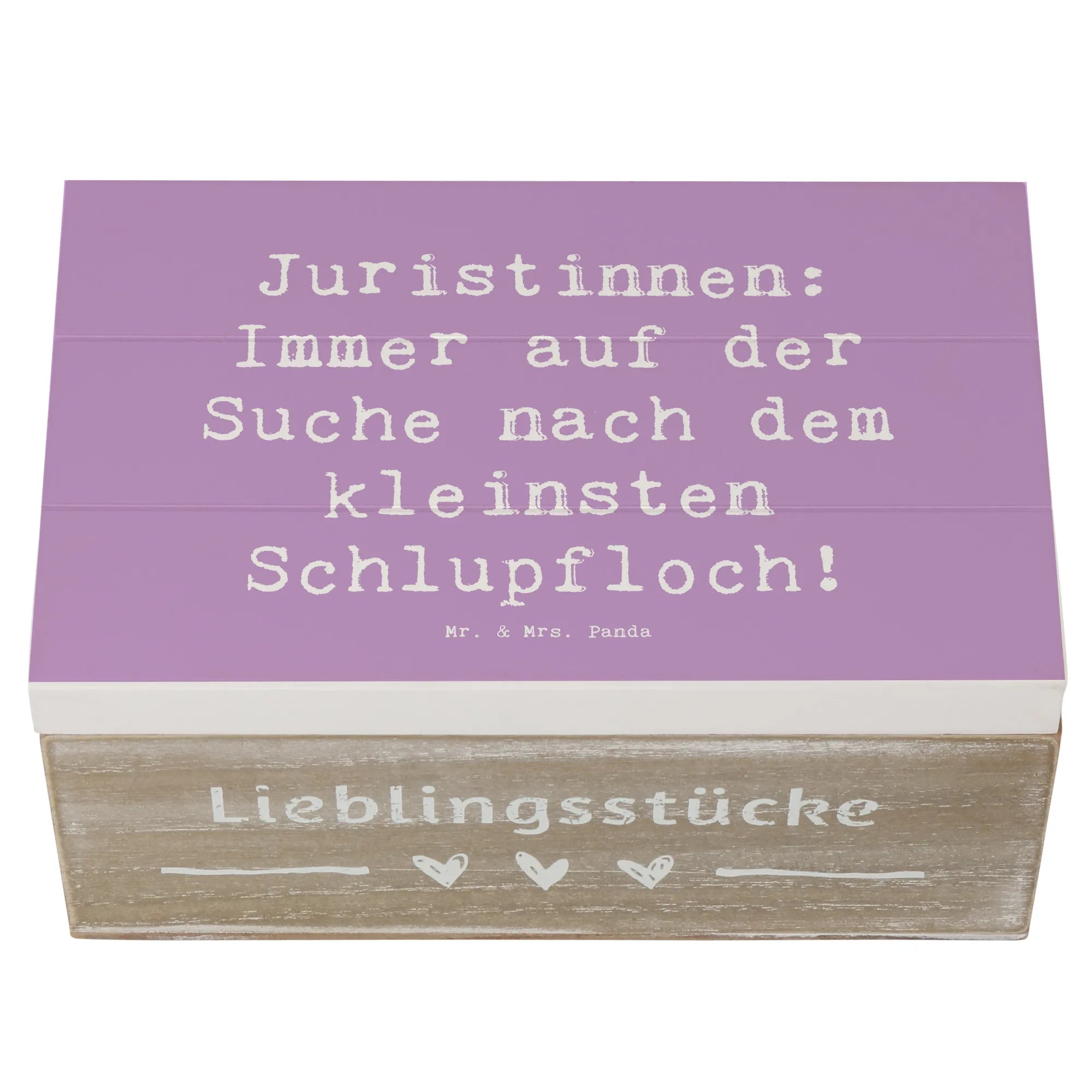 Diese liebevoll illustrierte Holzkiste aus der Berufe-Kollektion von Mr. & Mrs. Panda ist mehr als nur eine Aufbewahrungsbox — sie ist eine kleine Schatzkiste voller Persönlichkeit. Bedruckt mit dem frechen Spruch „Juristinnen: Immer auf der Suche nach dem kleinsten Schlupfloch!“ trifft sie genau den Humor und die Leidenschaft vieler Jurastudentinnen, Referendarinnen, Rechtsanwältinnen oder Richterinnen.