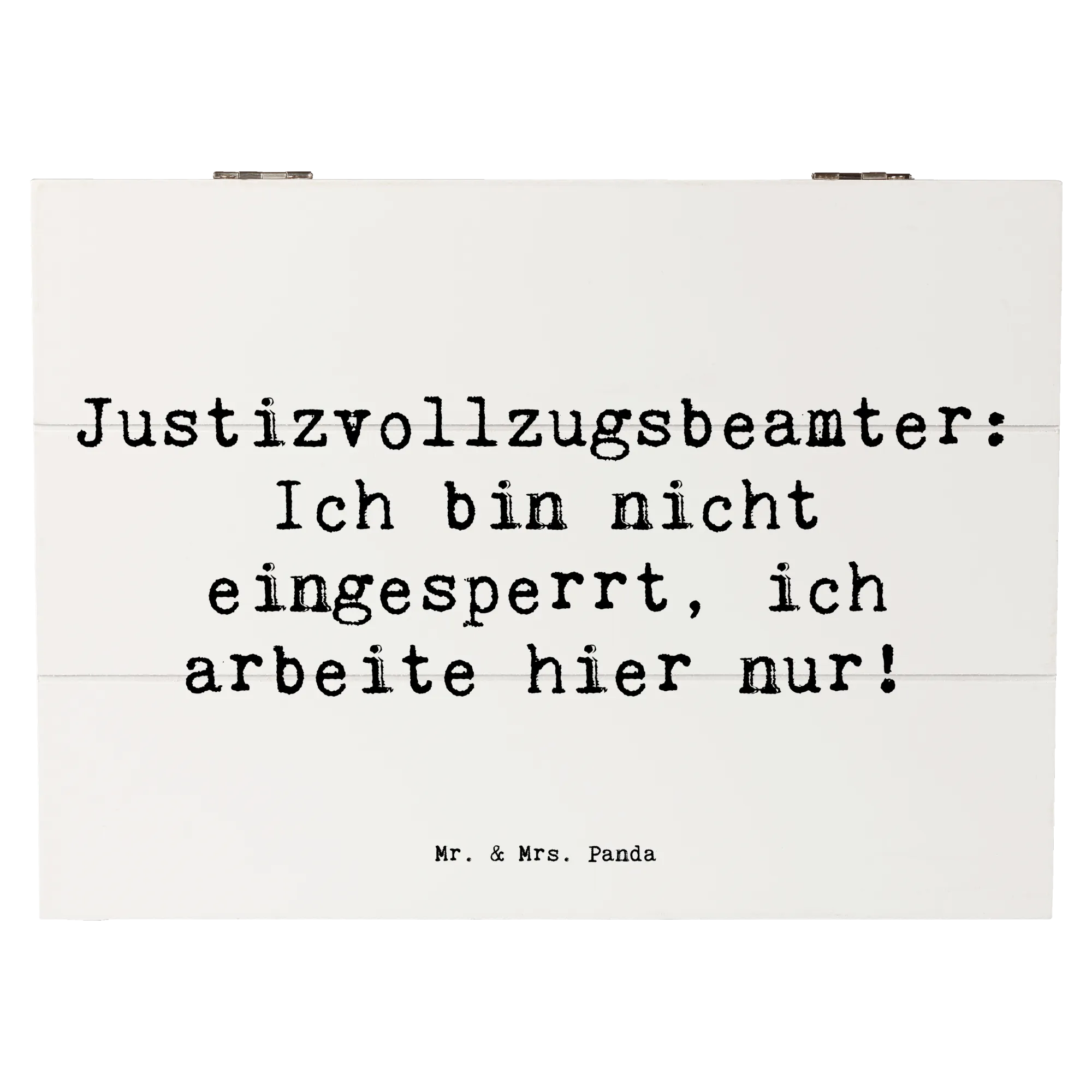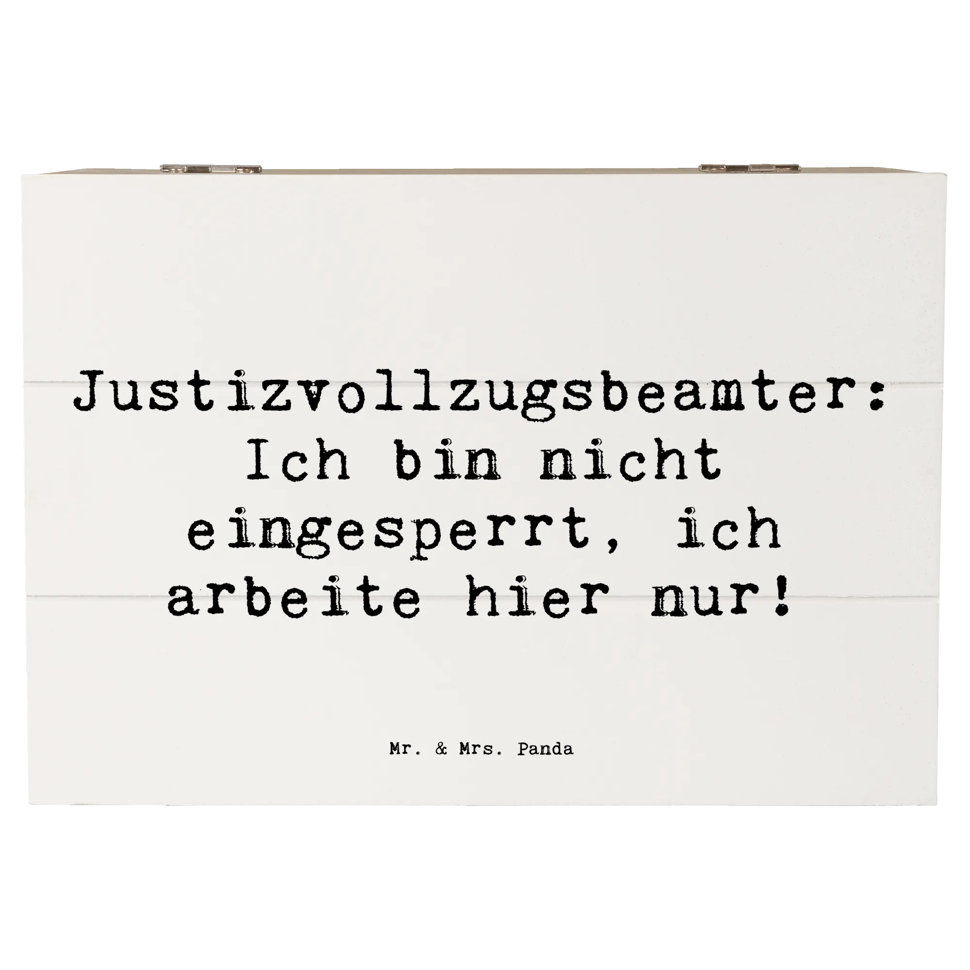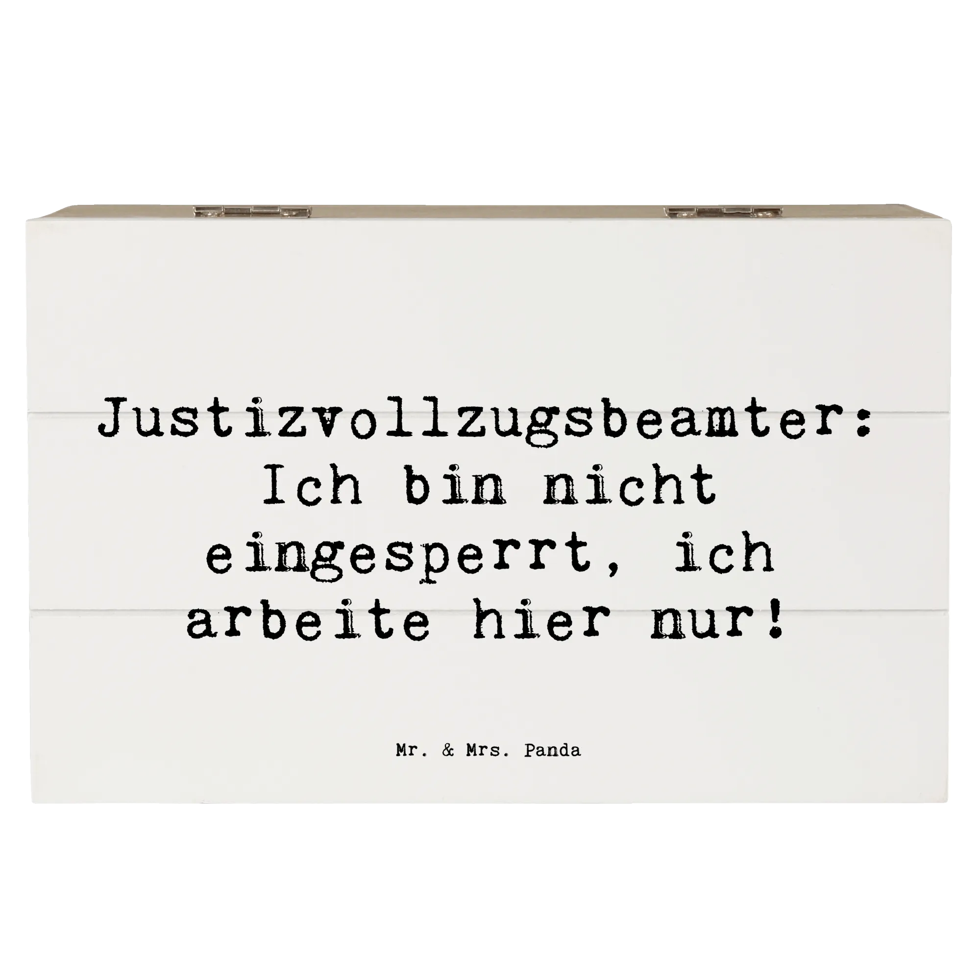 Du suchst nach einem besonderen Geschenk für einen Justizvollzugsbeamten? Dann ist die wunderschöne Holzkiste von Mr. & Mrs. Panda genau das Richtige für dich! Diese stilvolle Erinnerungskiste ist nicht nur ein praktischer Aufbewahrungsort für wertvolle Schätze, sondern auch ein liebevolles Geschenk, das von Herzen kommt. Gedruckt mit dem witzigen Spruch 'Justizvollzugsbeamter: Ich bin nicht eingesperrt, ich arbeite hier nur!', wird diese Kiste zum perfekten Begleiter für jeden Berufsalltag.