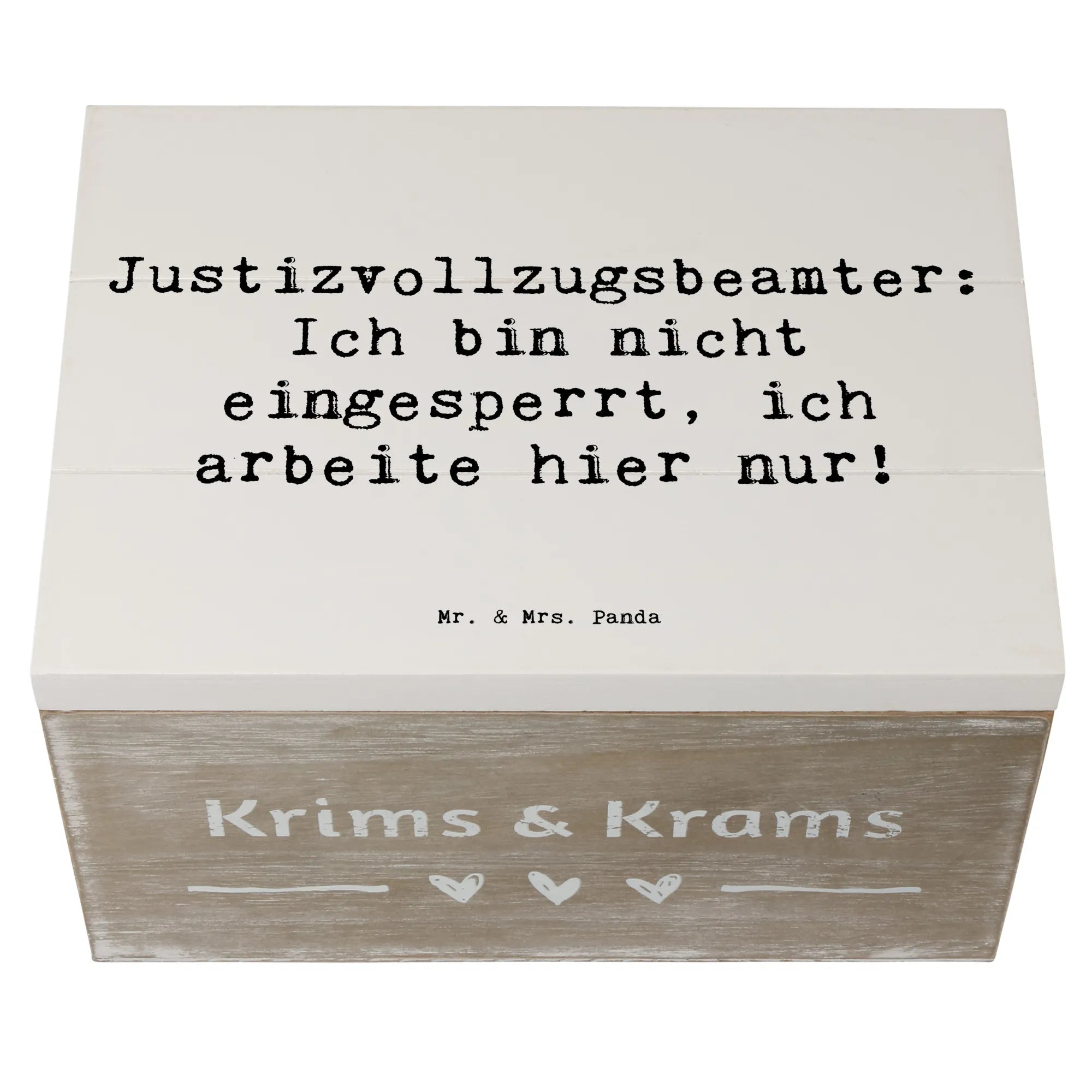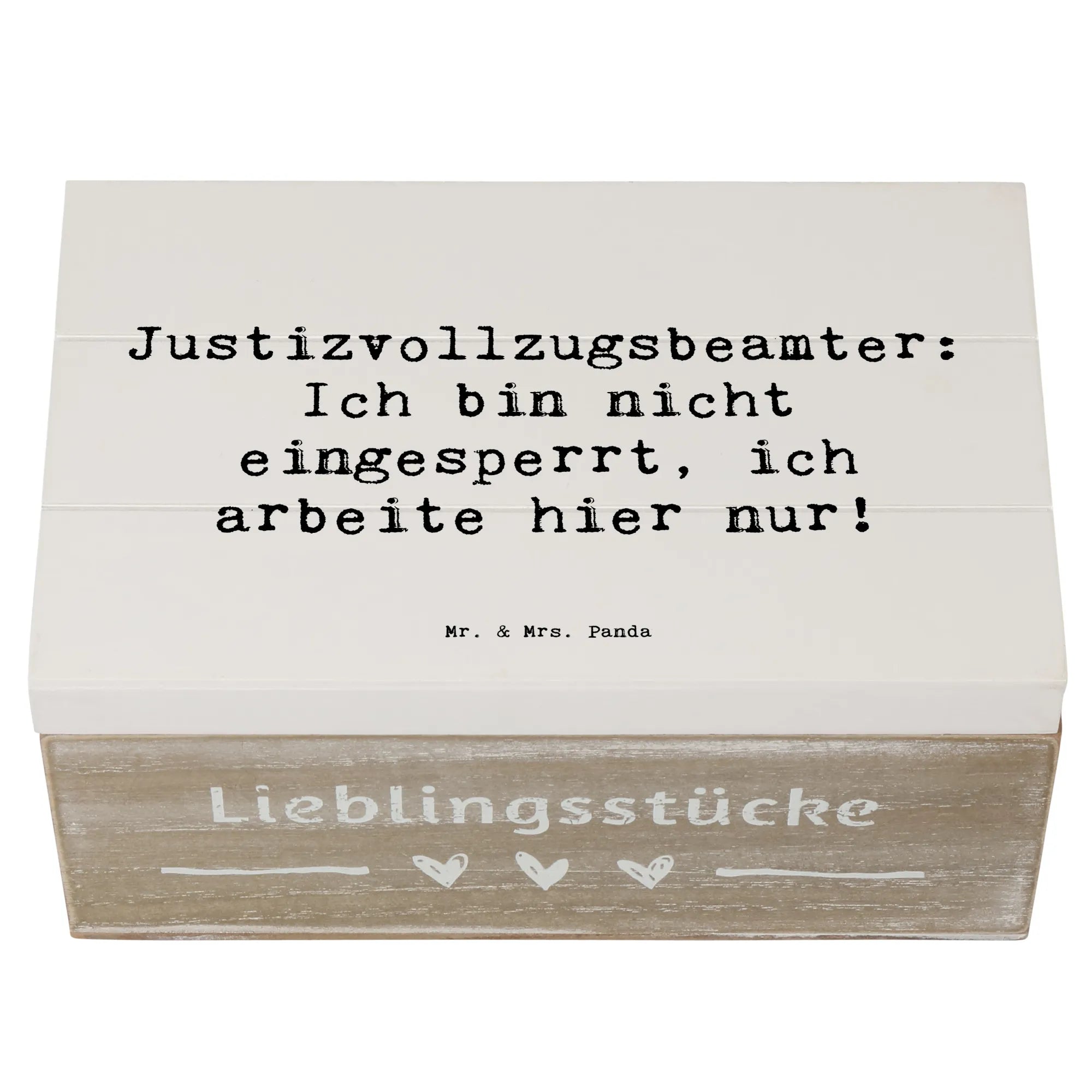 Entdecke die wunderschöne Holzkiste von Mr. & Mrs. Panda, die mit einem einzigartigen Motiv für Justizvollzugsbeamte versehen ist. Diese Kiste ist nicht nur ein praktischer Aufbewahrungsort für all Deine Schätze, sondern auch ein liebesvolles Geschenk für Kollegen oder Freunde in diesem Beruf.