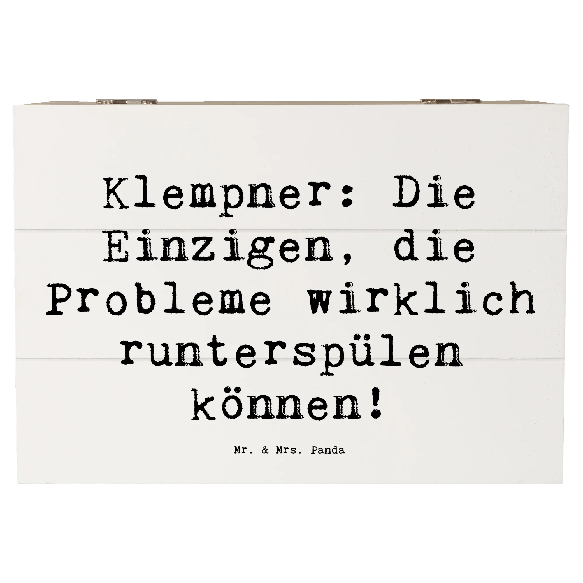 Die Holzkiste mit dem lustigen Spruch "Klempner: Die Einzigen, die Probleme wirklich runterspülen können!" von Mr. & Mrs. Panda ist das perfekte Geschenk für alle, die in der Branche arbeiten oder einfach eine besondere Verbindung zu diesem Beruf haben. Egal ob du ein Geschenk zur Berufsausbildung, zum Berufswechsel oder einfach nur so suchst – diese Box wird bestimmt gut ankommen!