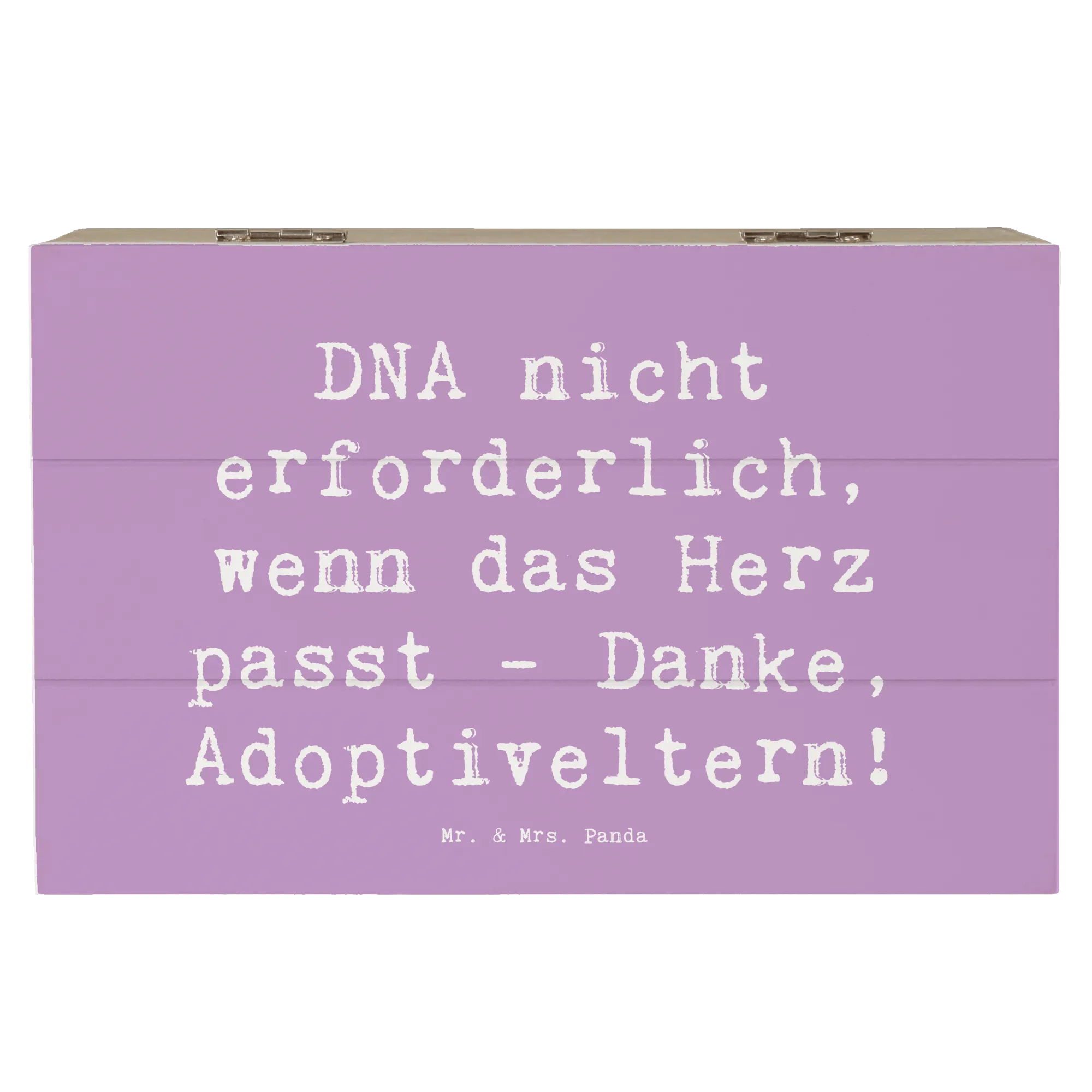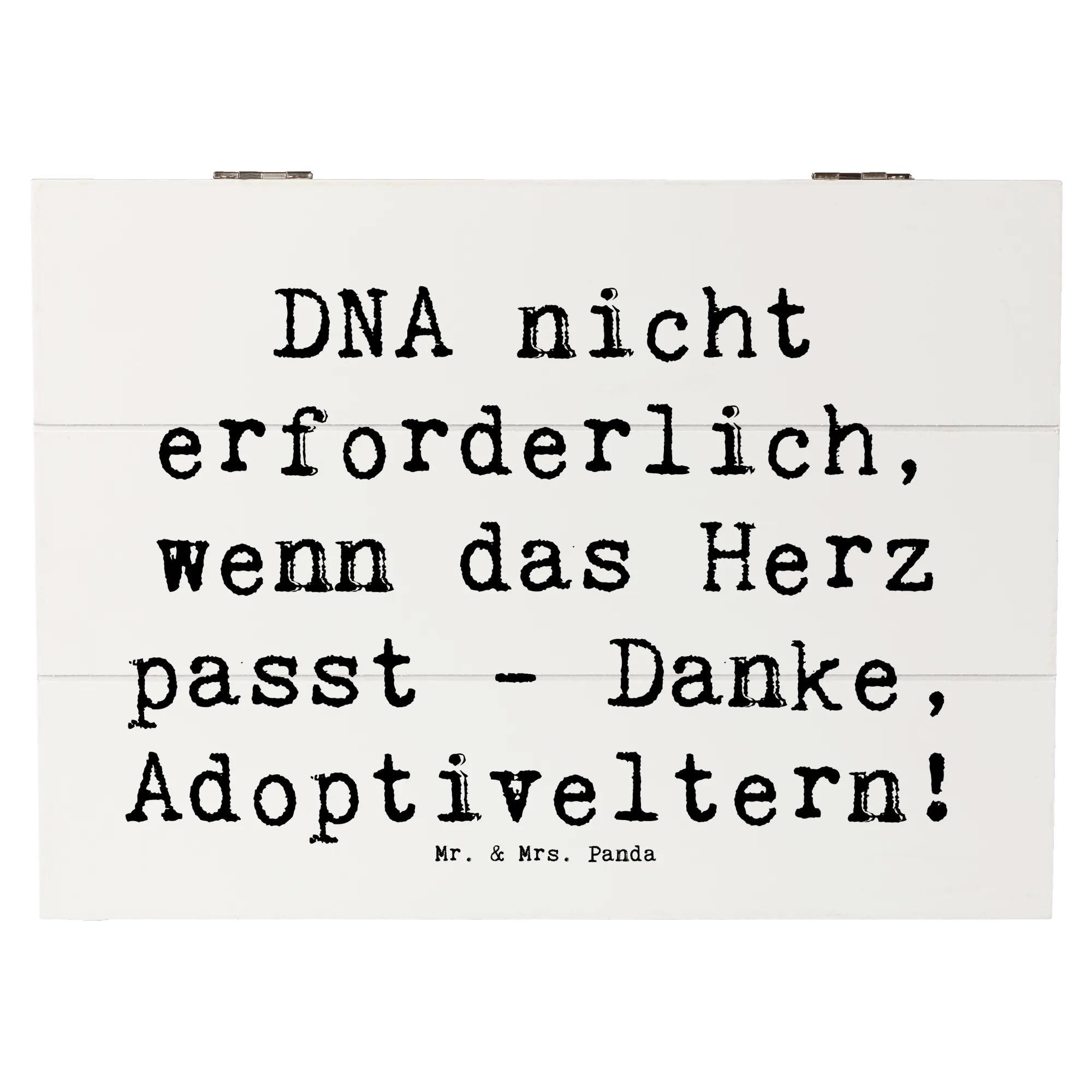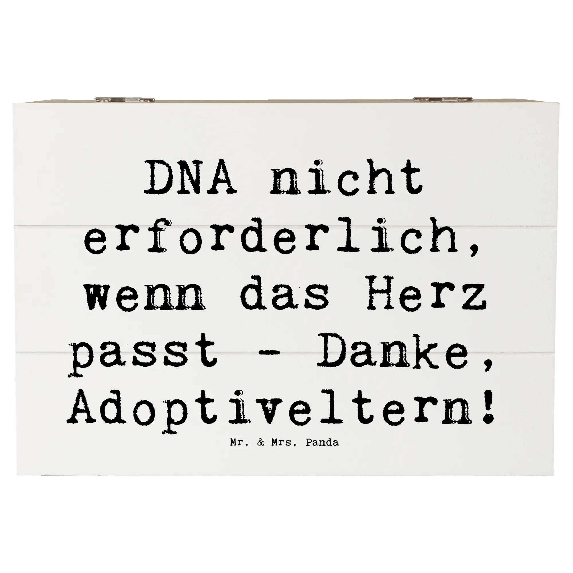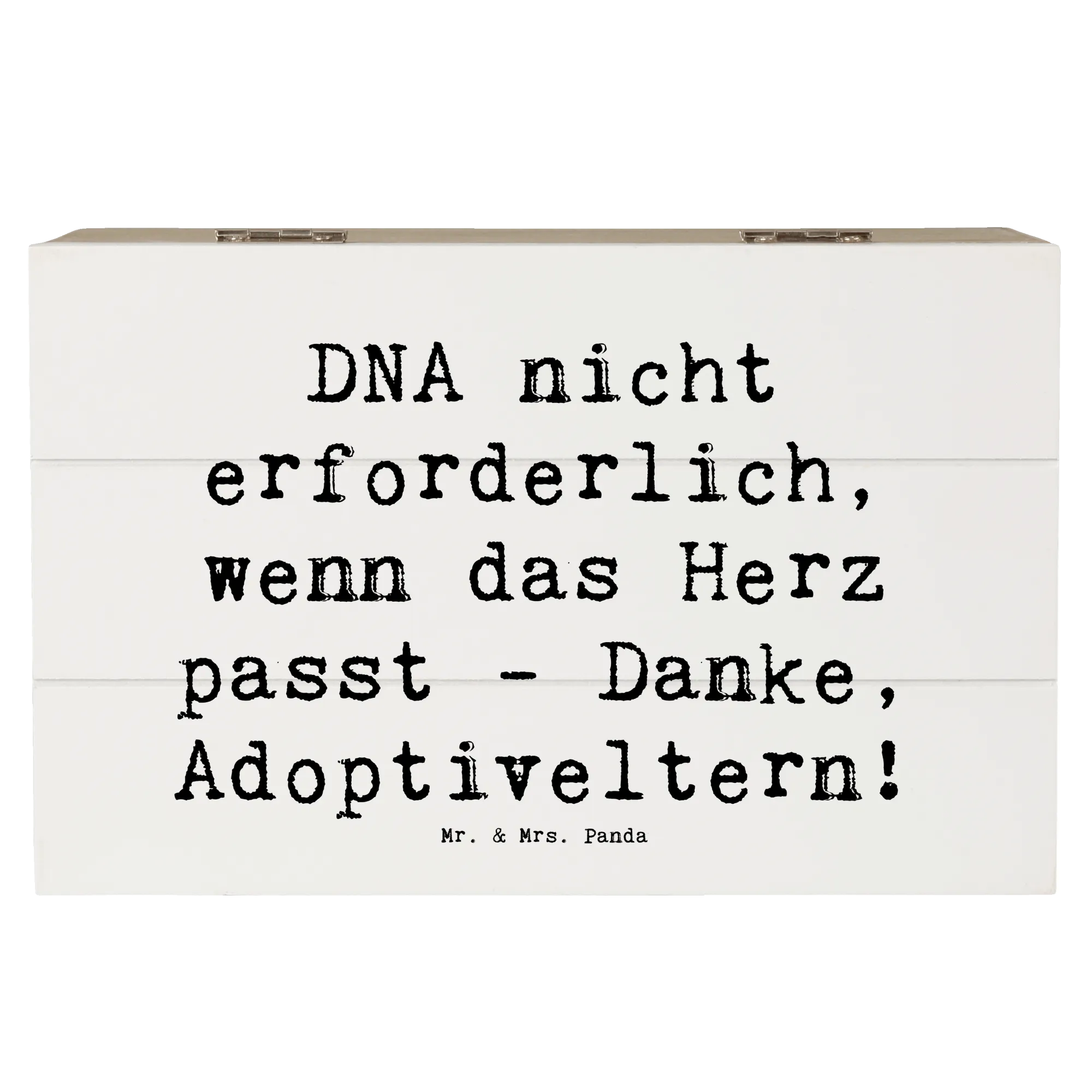 Entdecke die wunderschöne Holzkiste von Mr. & Mrs. Panda, die nicht nur ein praktischer Aufbewahrungsort ist, sondern auch ein liebevolles Geschenk für Adoptiveltern. Mit dem herzerwärmenden Spruch "DNA nicht erforderlich, wenn das Herz passt - Danke, Adoptiveltern!" wird diese Kiste zu einem ganz besonderen Schatz für all die Erinnerungen, die in ihr bewahrt werden.