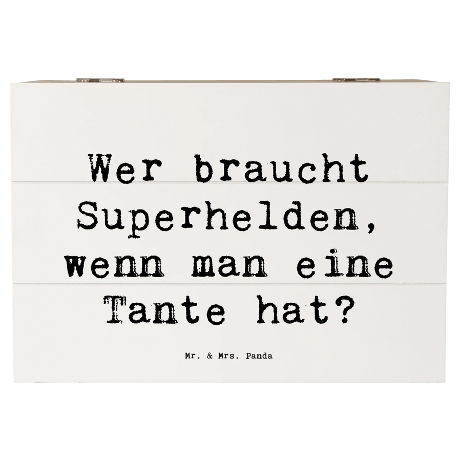 Die wunderschöne Holzkiste von Mr. & Mrs. Panda ist das perfekte Geschenk für all die besonderen Menschen in deinem Leben, besonders für deine Tante! Mit dem liebevollen Motiv "Wer braucht Superhelden, wenn man eine Tante hat?" plastisch auf hochwertigem Material, strahlt diese Kiste eine besondere Wärme und Zuneigung aus.