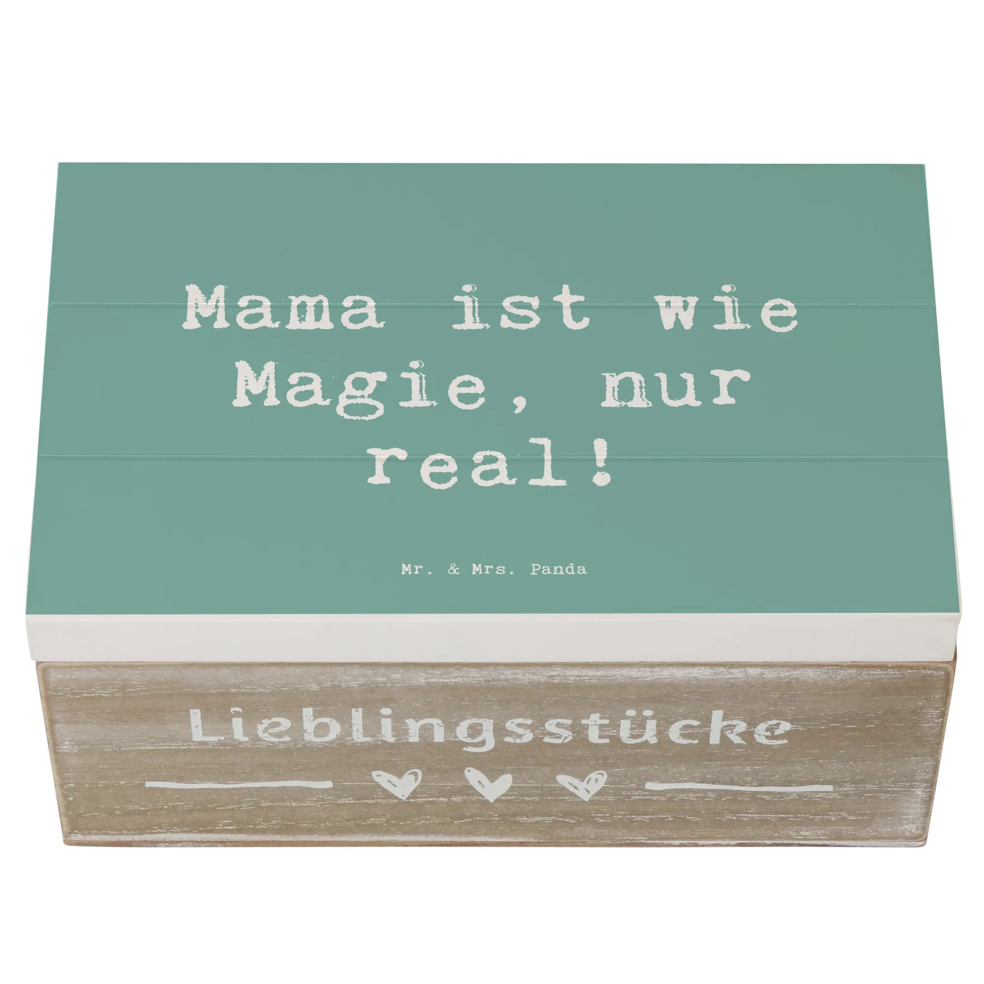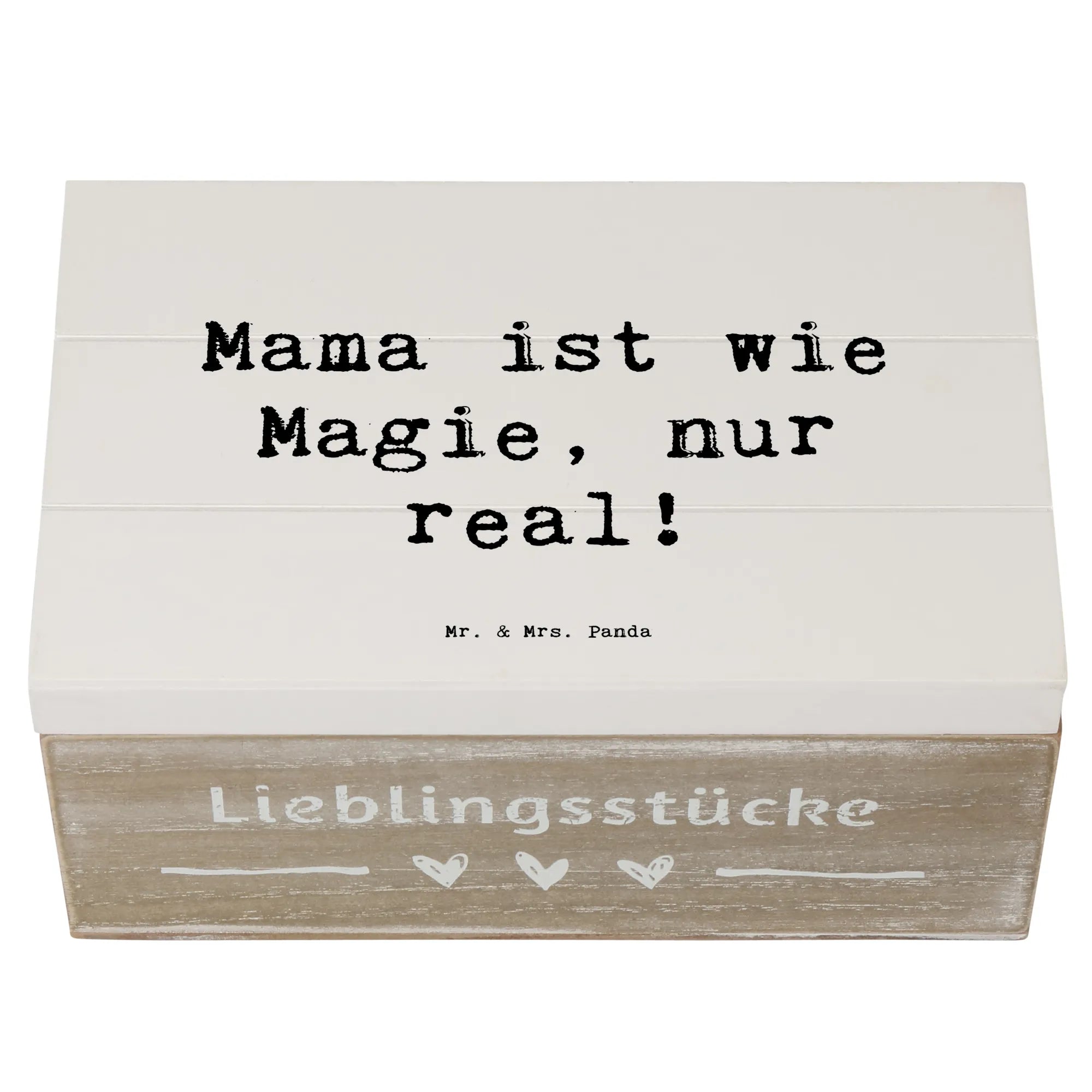 Die Holzkiste "Mama ist wie Magie, nur real!" von Mr. & Mrs. Panda ist das perfekte Geschenk für jede Mama und einmalige Schätze.
