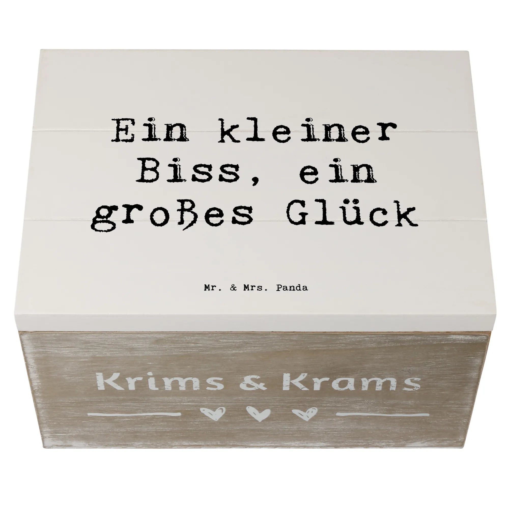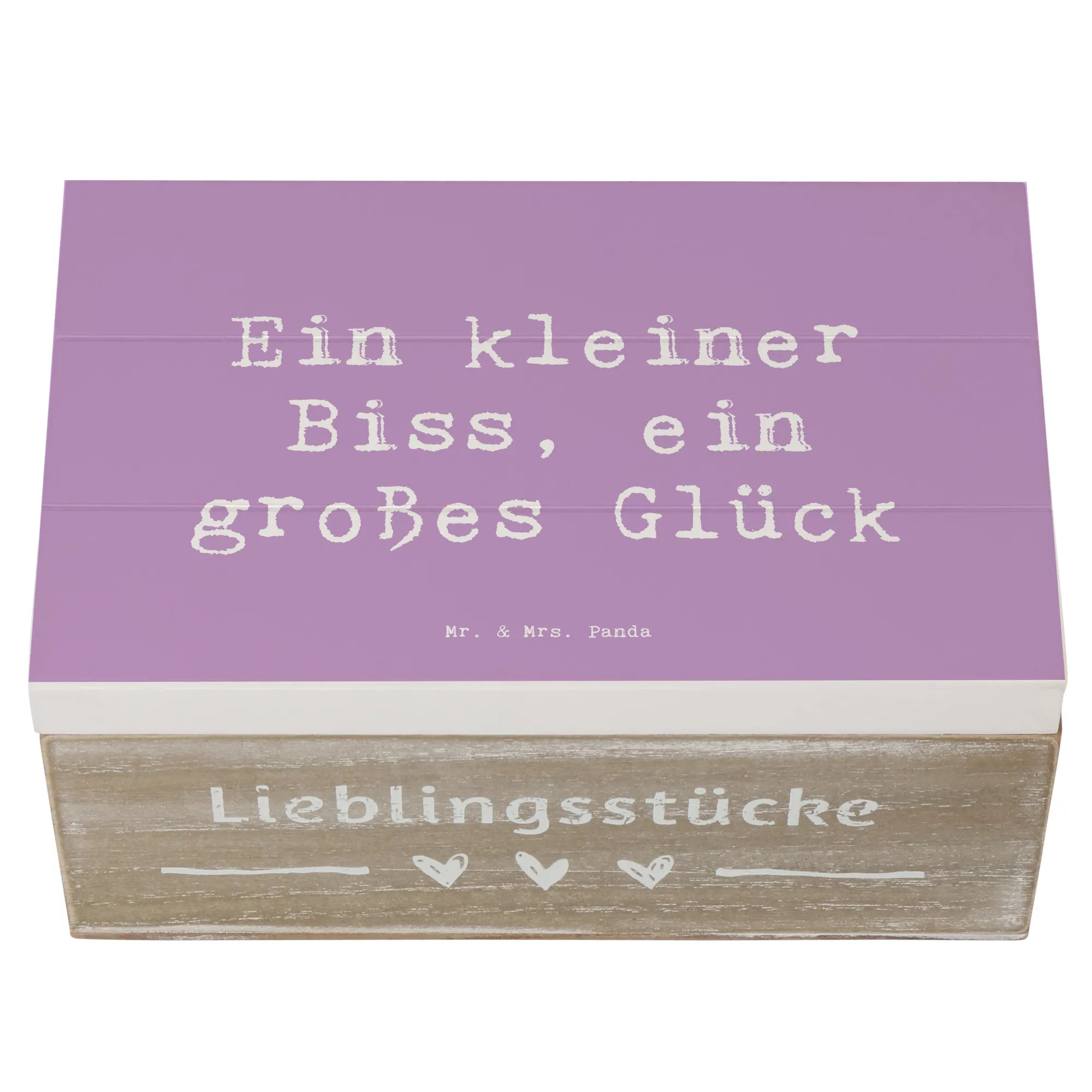 Wenn du auf der Suche nach einer nachhaltigen Geschenklösung bist, ist diese Holzkiste die ideale Wahl. Außerdem hat sie Einschlagscharniere, die ein einfaches Öffnen und Schließen ermöglichen, sodass du deine Schätze jederzeit schnell griffbereit hast. Der Spruch „Ein kleiner Biss, ein großes Glück“ macht diese Box noch persönlicher und sorgt für ein Lächeln beim Beschenkten.