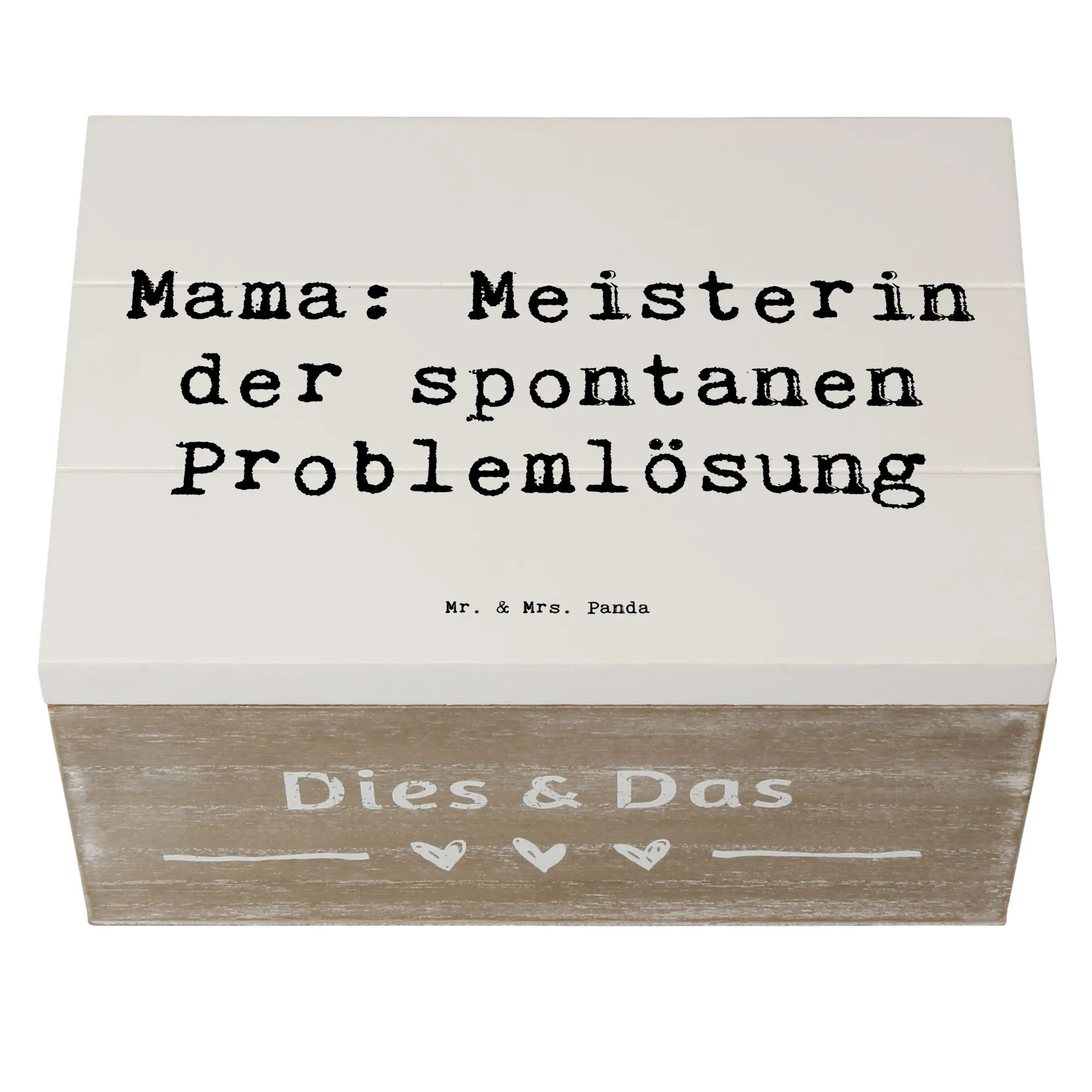 Die wunderschöne Holzkiste von Mr. & Mrs. Panda ist das perfekte Geschenk für alle Mamas! Mit ihrem einzigartigen Design und dem liebevollen Spruch "Mama: Meisterin der spontanen Problemlösung" ist diese Kiste mehr als nur ein Aufbewahrungsort. Sie eignet sich ideal als Erinnerungskiste für besondere Anlässe wie Kommunion oder Konfirmation, zur Aufbewahrung von Kindheitserinnerungen oder einfach als hübsche Dekoration. Diese Schatzkiste ist nicht nur praktisch, sondern auch ein liebevolles Geschenk, das von Herzen kommt.