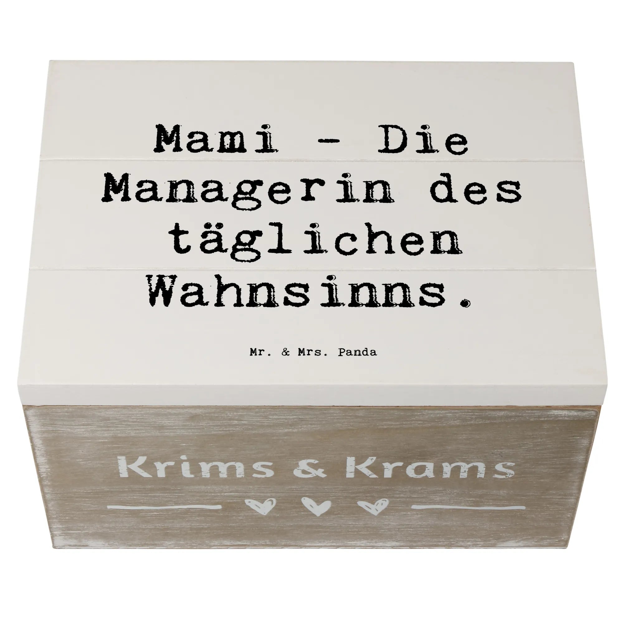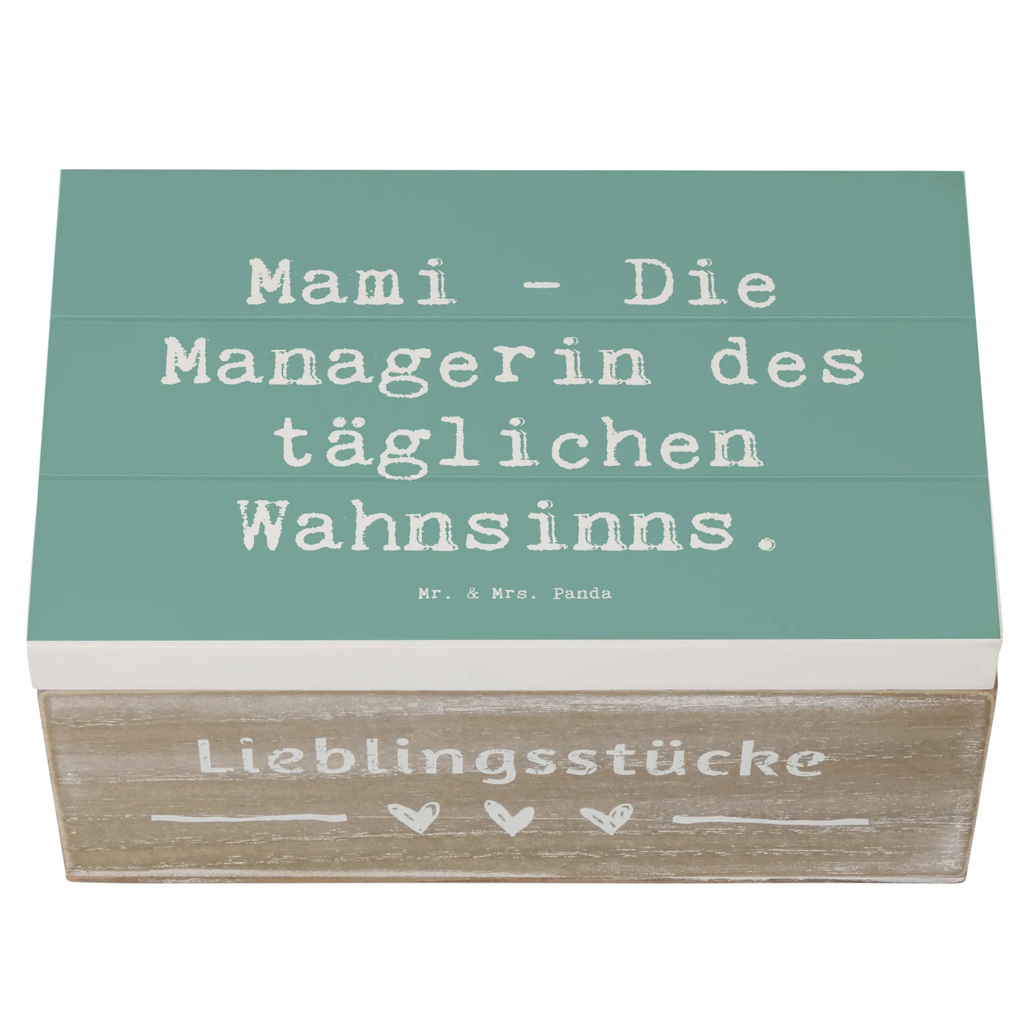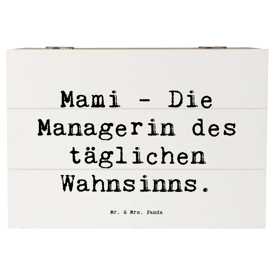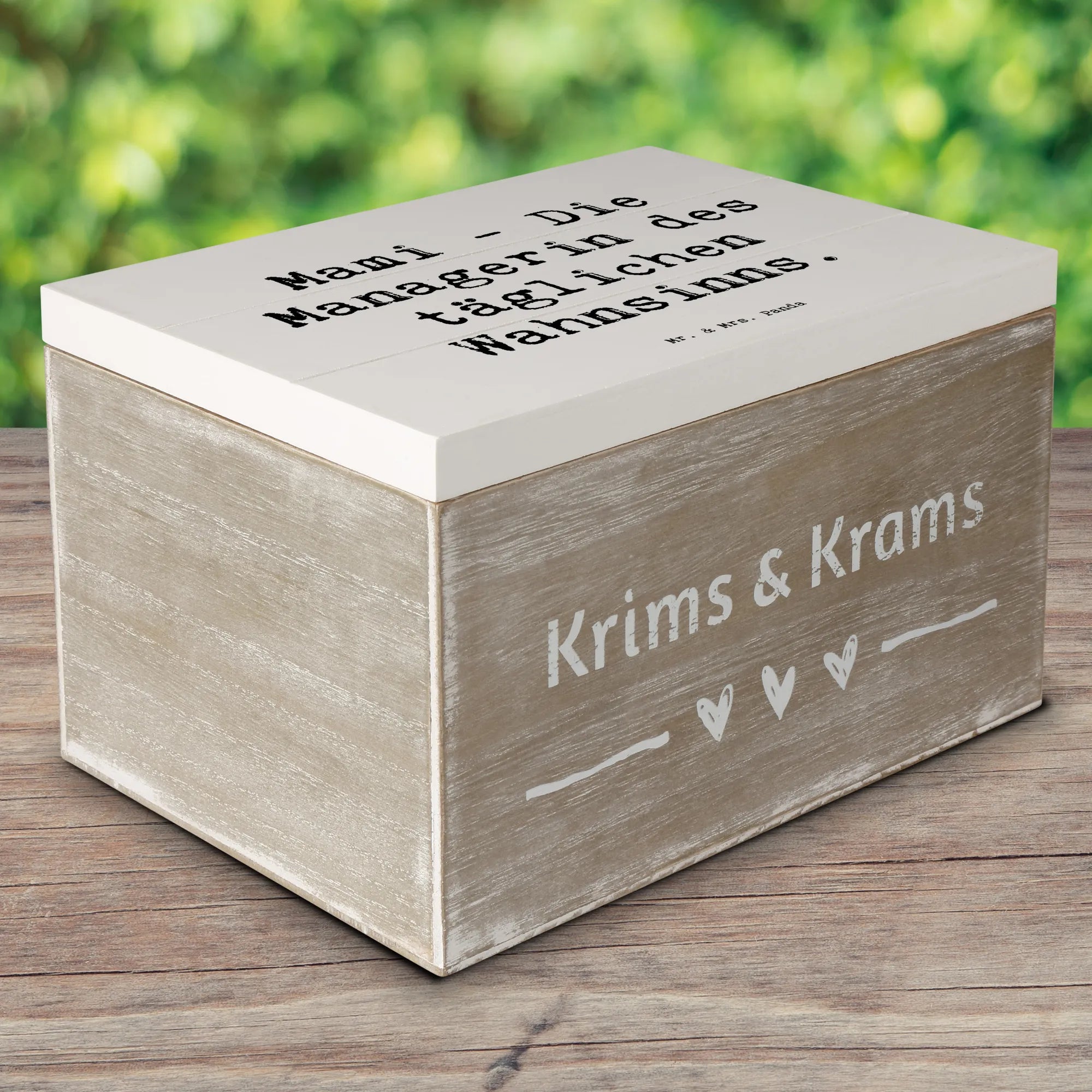 Entdecke unsere wunderschöne Holzkiste mit dem liebevollen Motiv 'Mami - Die Managerin des täglichen Wahnsinns'. Diese zauberhafte Kiste ist nicht nur ein praktischer Aufbewahrungsort für all Deine wichtigsten Schätze, sondern auch ein wunderbares Geschenk für Deine Mama oder einen besonderen Menschen in Deinem Leben.