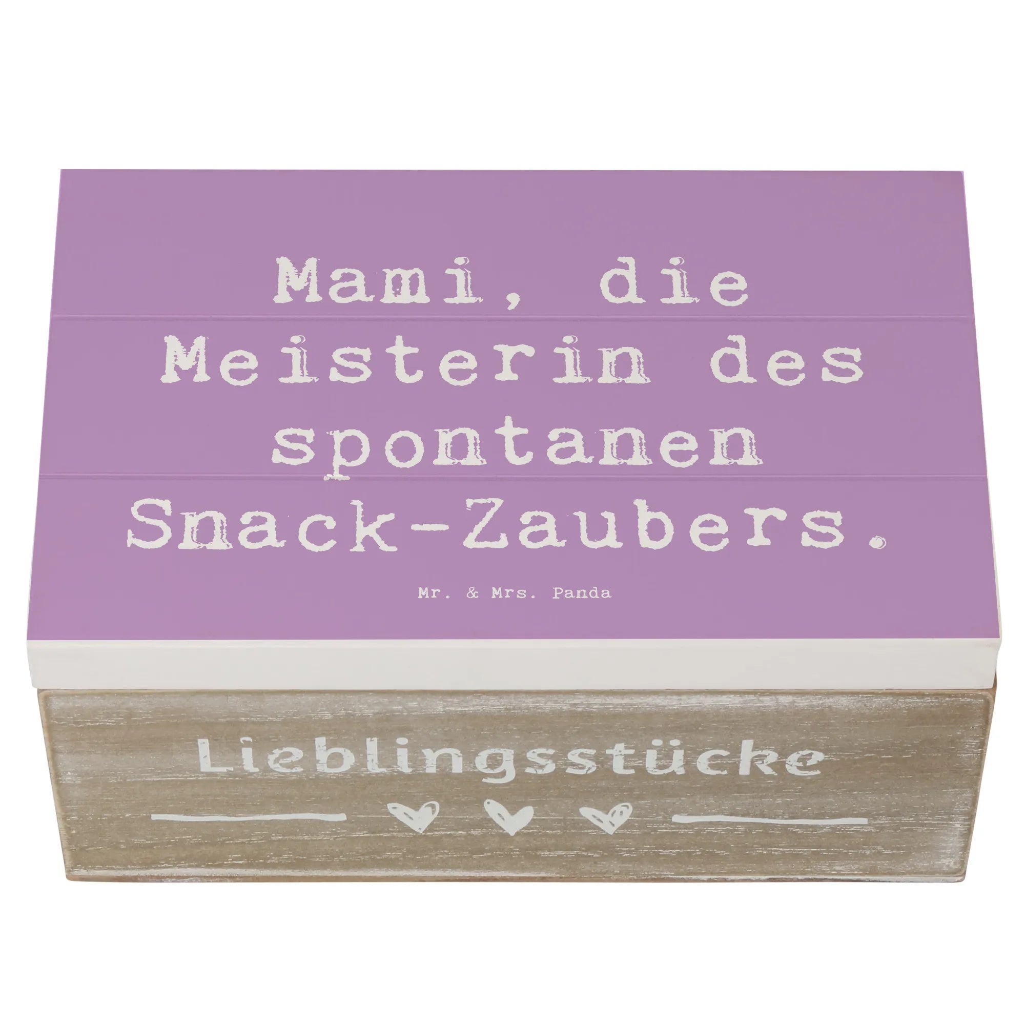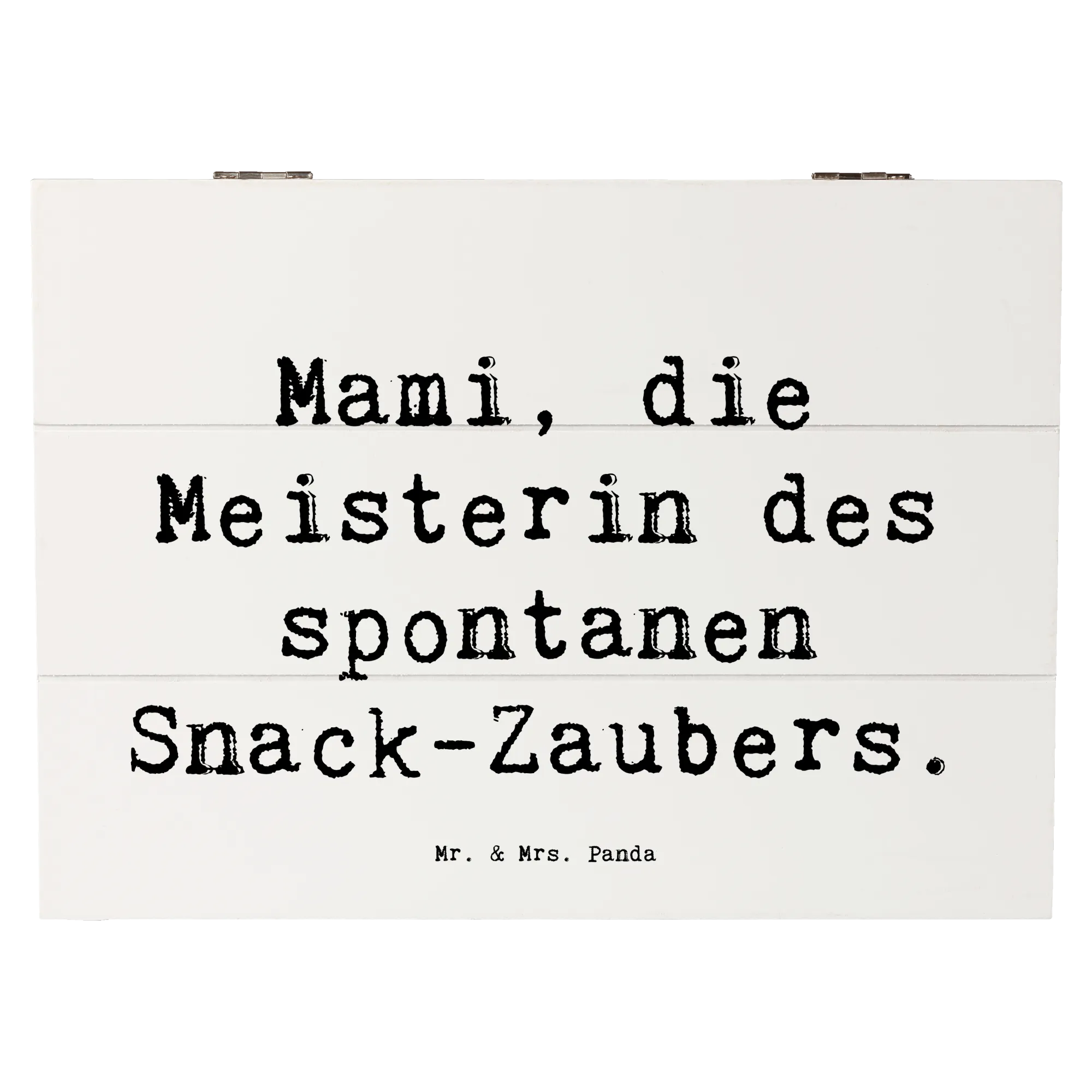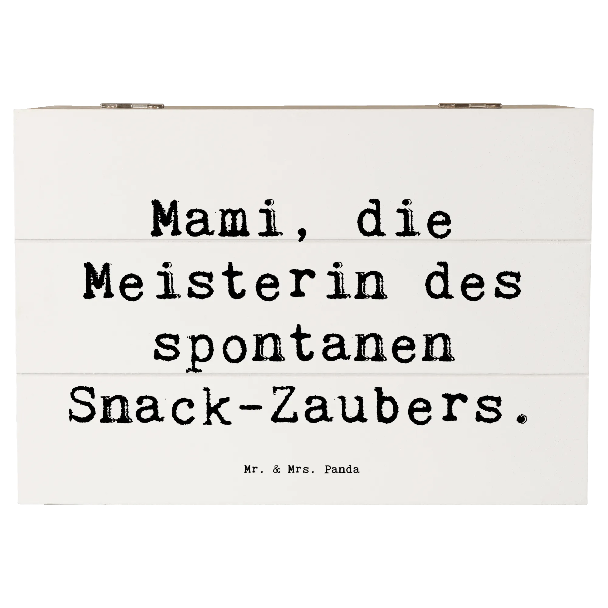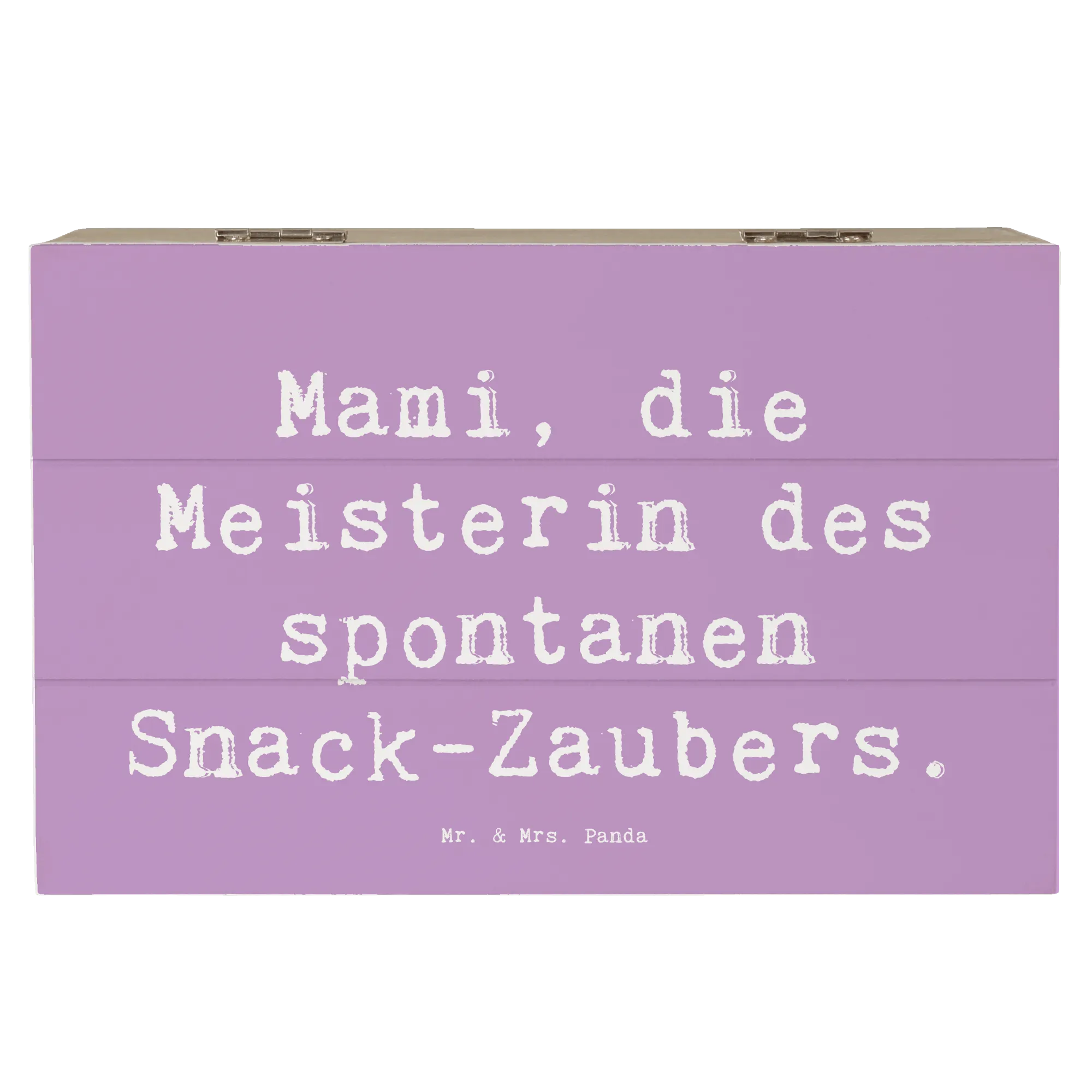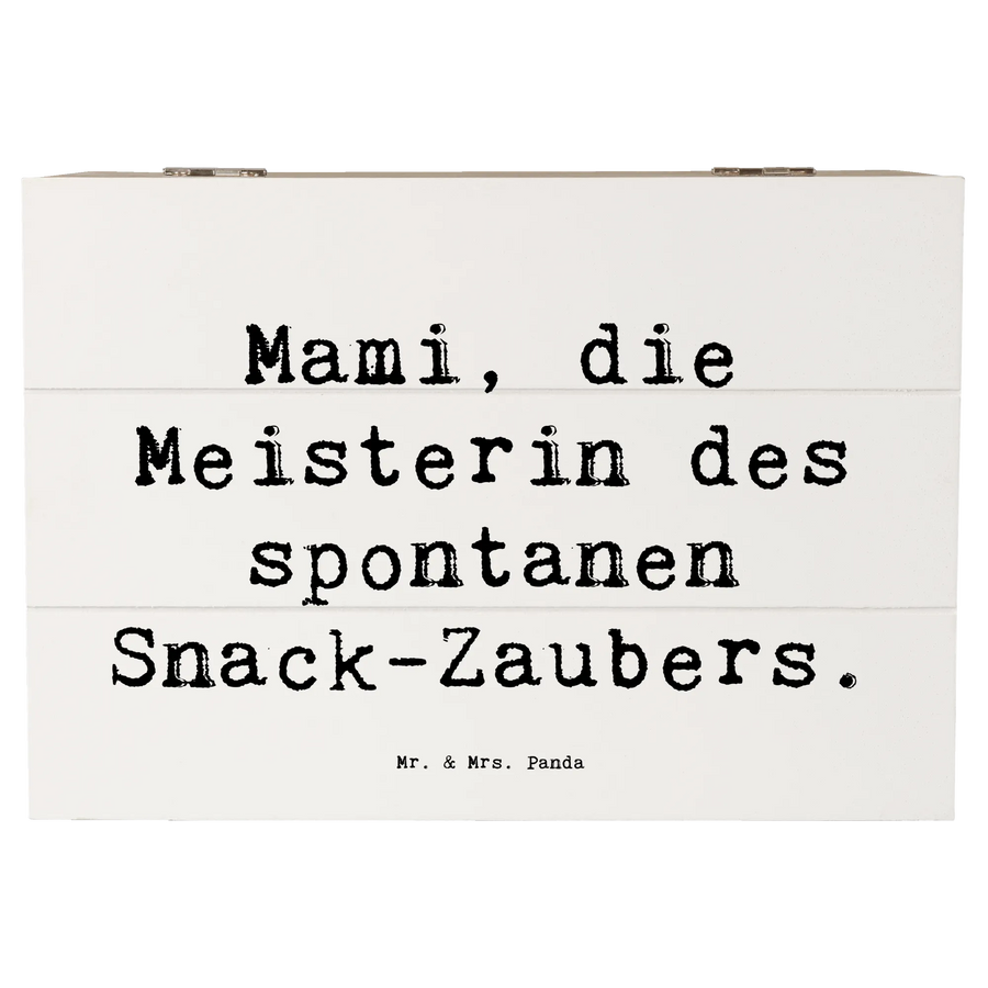 Mit ihrem eleganten Design und dem liebvollen Motiv "Mami, die Meisterin des spontanen Snack-Zaubers" wird diese Kiste schnell zum Blickfang in jedem Zuhause. Sie eignet sich auch hervorragend als nachhaltige Geschenkdose und macht jeden Anlass, sei es zum Muttertag, Geburtstag oder einem einfach so Dankeschön, zu etwas ganz Besonderem.