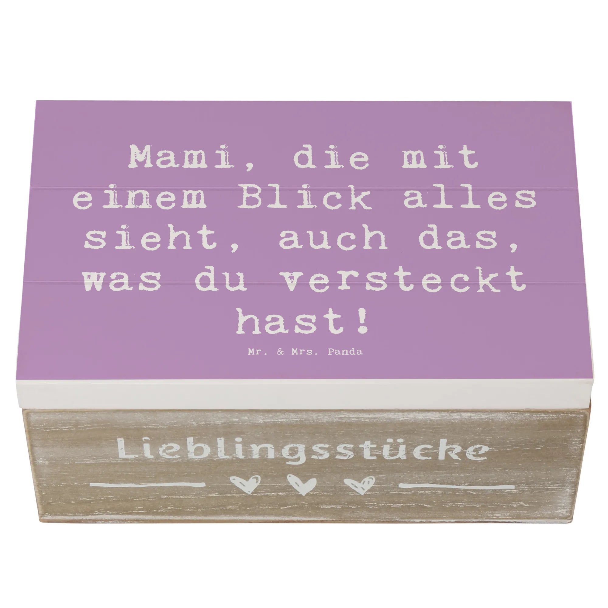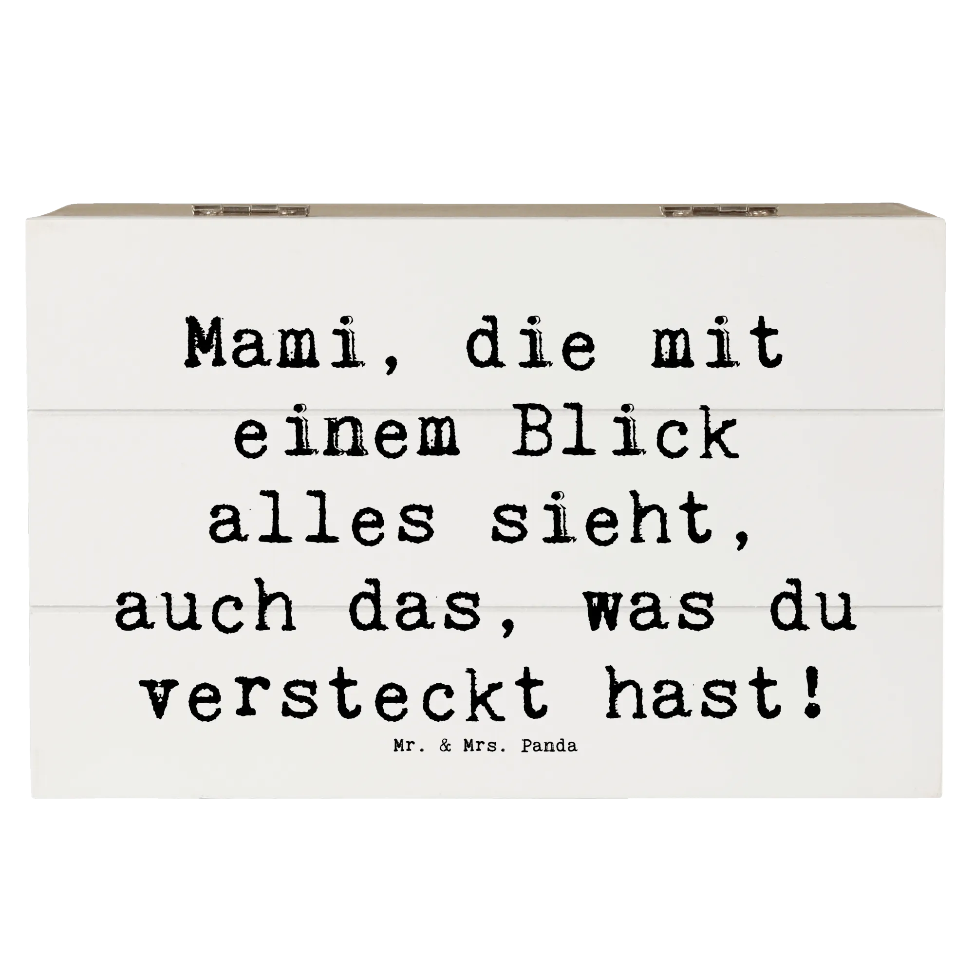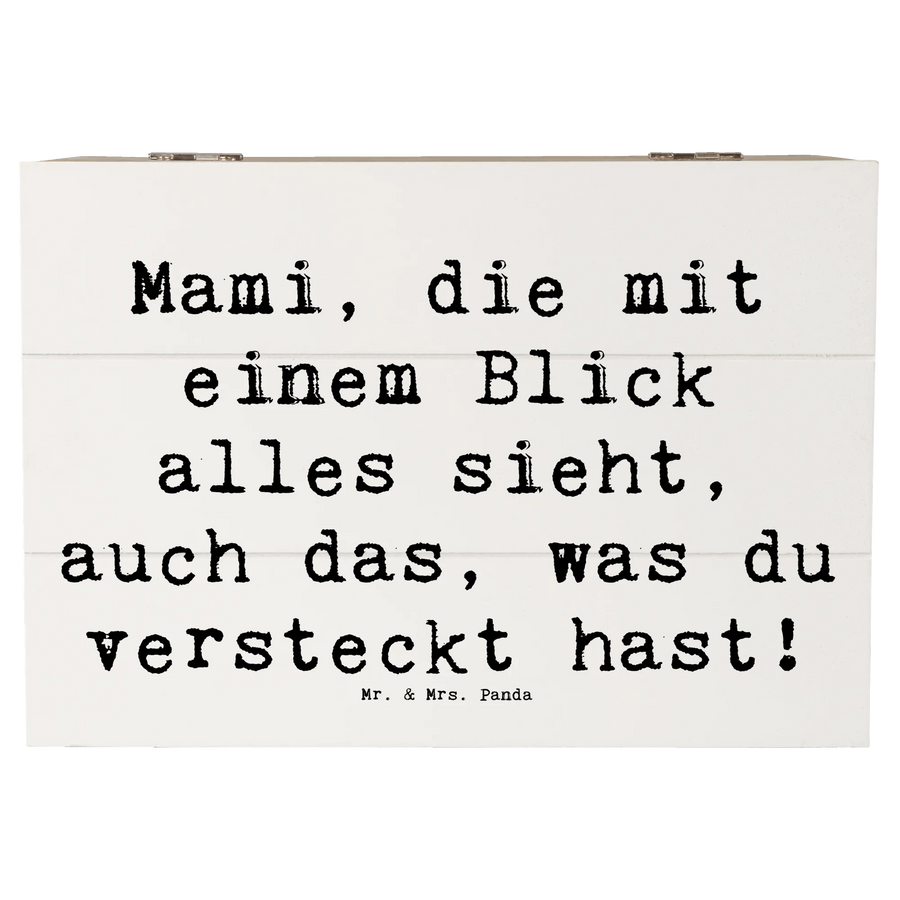 Die wunderschöne Holzkiste von Mr. & Mrs. Panda mit dem liebevollen Motto "Mami, die mit einem Blick alles sieht, auch das, was du versteckt hast!" ist das perfekte Geschenk für jede Mama, die eine besondere Wertschätzung verdient. Diese Erinnerungskiste ist nicht nur ein praktischer Aufbewahrungsort für Schätze, sondern auch ein liebevoll gestaltetes Geschenk, das Emotionen weckt.