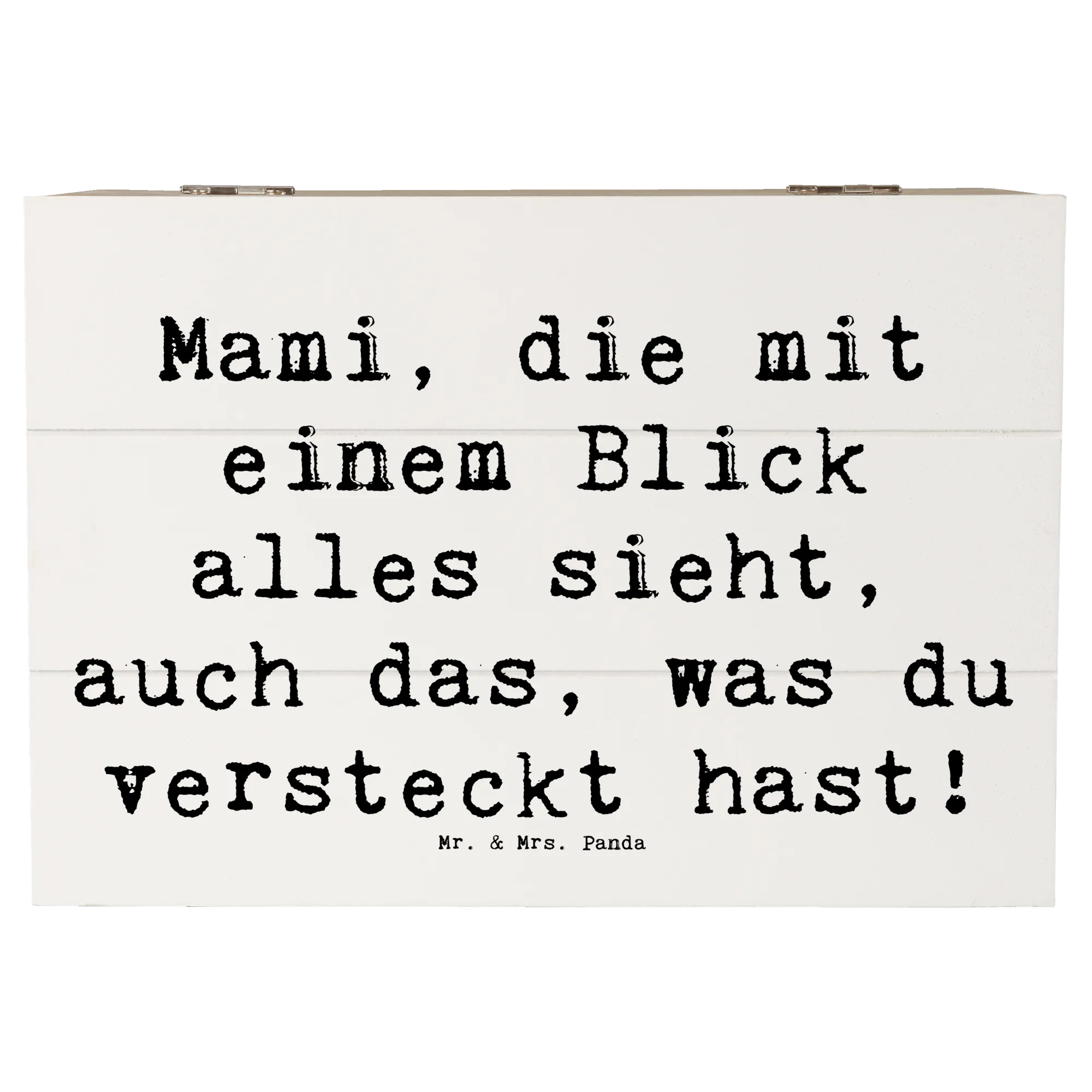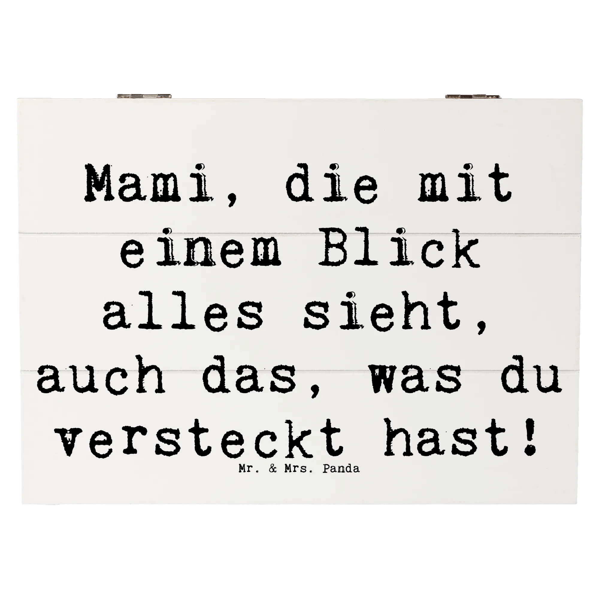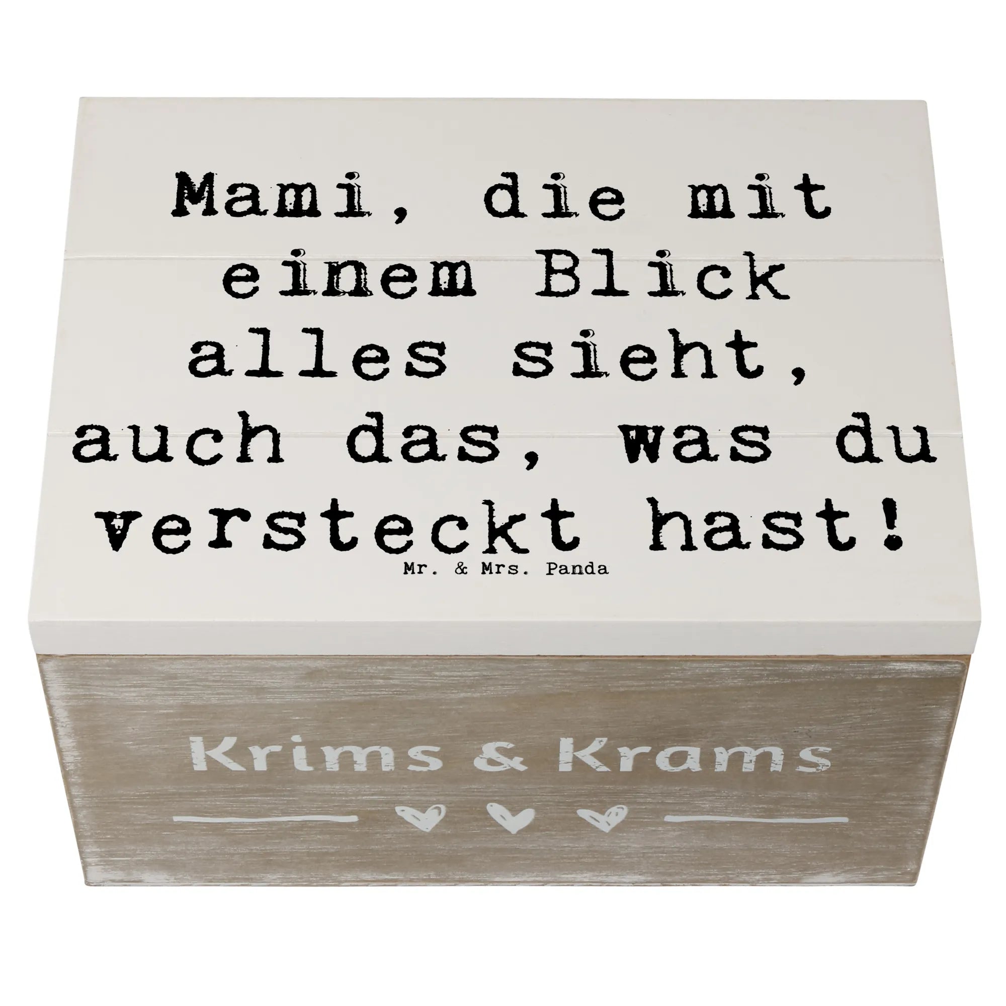 Die wunderschöne Holzkiste von Mr. & Mrs. Panda mit dem liebevollen Motto "Mami, die mit einem Blick alles sieht, auch das, was du versteckt hast!" ist das perfekte Geschenk für jede Mama, die eine besondere Wertschätzung verdient. Diese Erinnerungskiste ist nicht nur ein praktischer Aufbewahrungsort für Schätze, sondern auch ein liebevoll gestaltetes Geschenk, das Emotionen weckt.