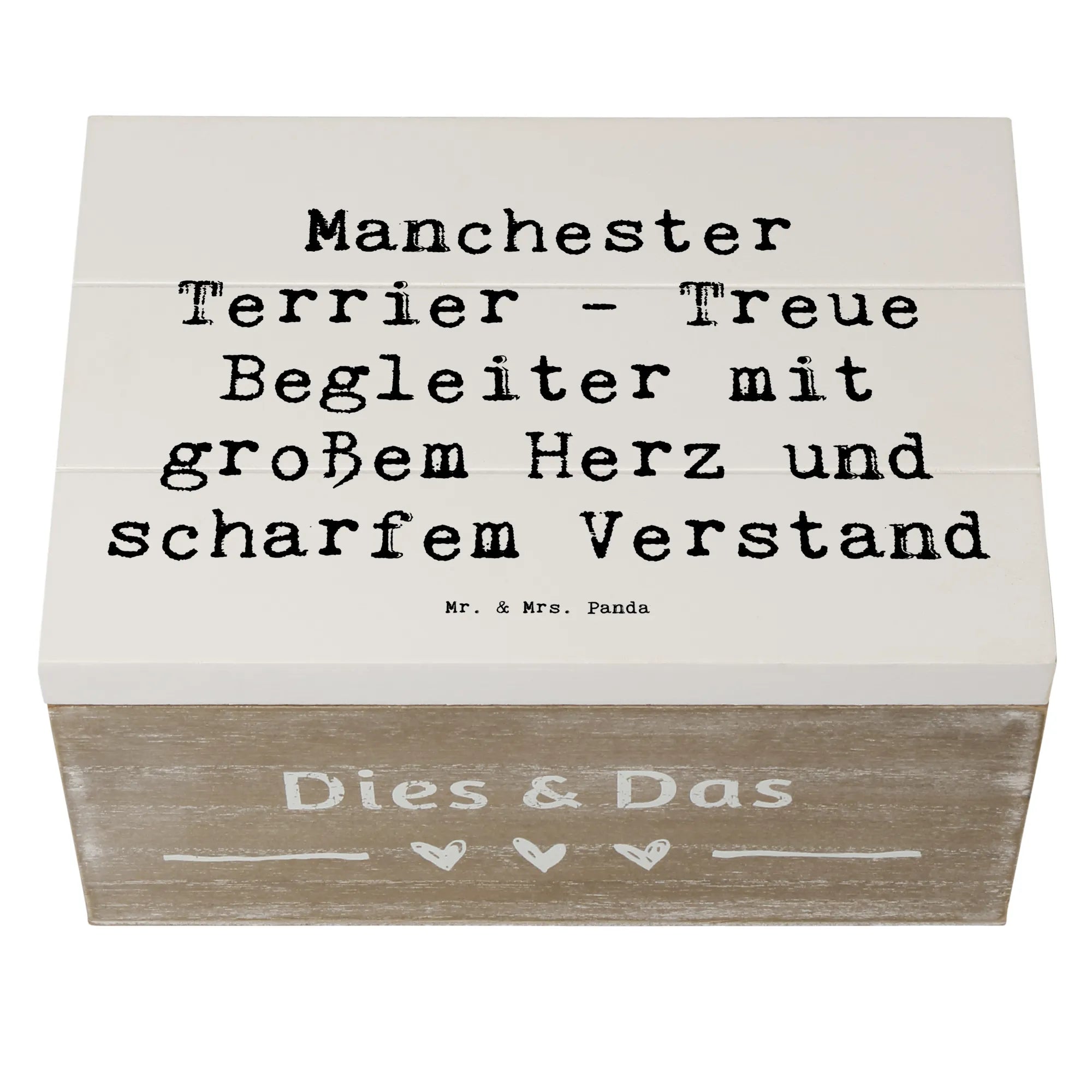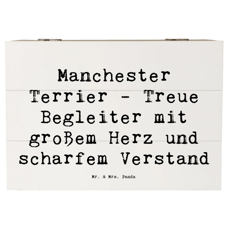 Entdecke die zauberhafte Holzkiste "Manchester Terrier" von Mr. & Mrs. Panda, die perfekte Aufbewahrungsbox für all deine kleinen Schätze! Mit einem liebevoll gestalteten Motiv des treuen Manchester Terriers und dem Spruch "Manchester Terrier - Treue Begleiter mit großem Herz und scharfem Verstand" sorgt diese Kiste nicht nur für Ordnung, sondern verleiht jedem Raum eine besondere Note.