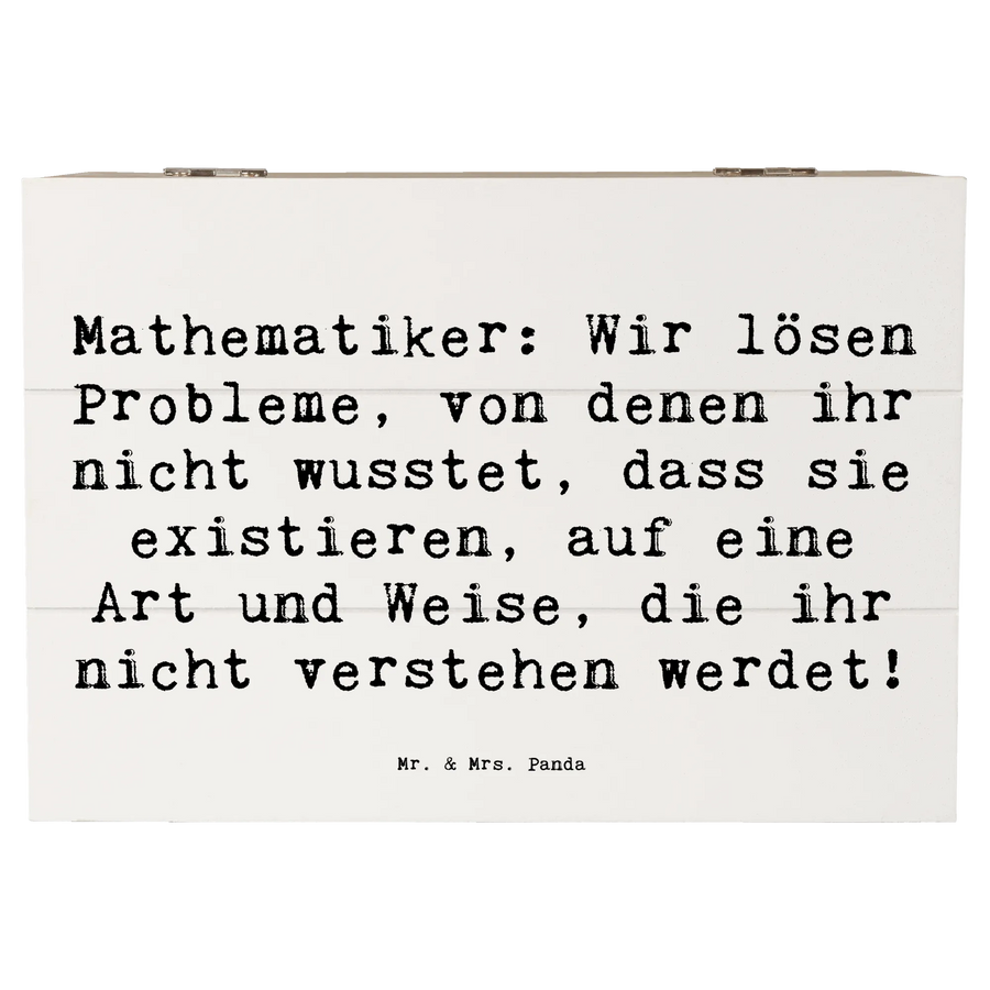 Holzkiste "Mathematiker" – die charmante Aufbewahrungsbox aus der Berufe-Kollektion von Mr. & Mrs. Panda. Mit dem witzigen Spruch „Mathematiker: Wir lösen Probleme, von denen ihr nicht wusstet, dass sie existieren, auf eine Art und Weise, die ihr nicht verstehen werdet!“ ist diese Holzbox mit Deckel das perfekte Geschenk für Mathe-Fans, Lehrer, Studenten und alle Nerds mit Humor.